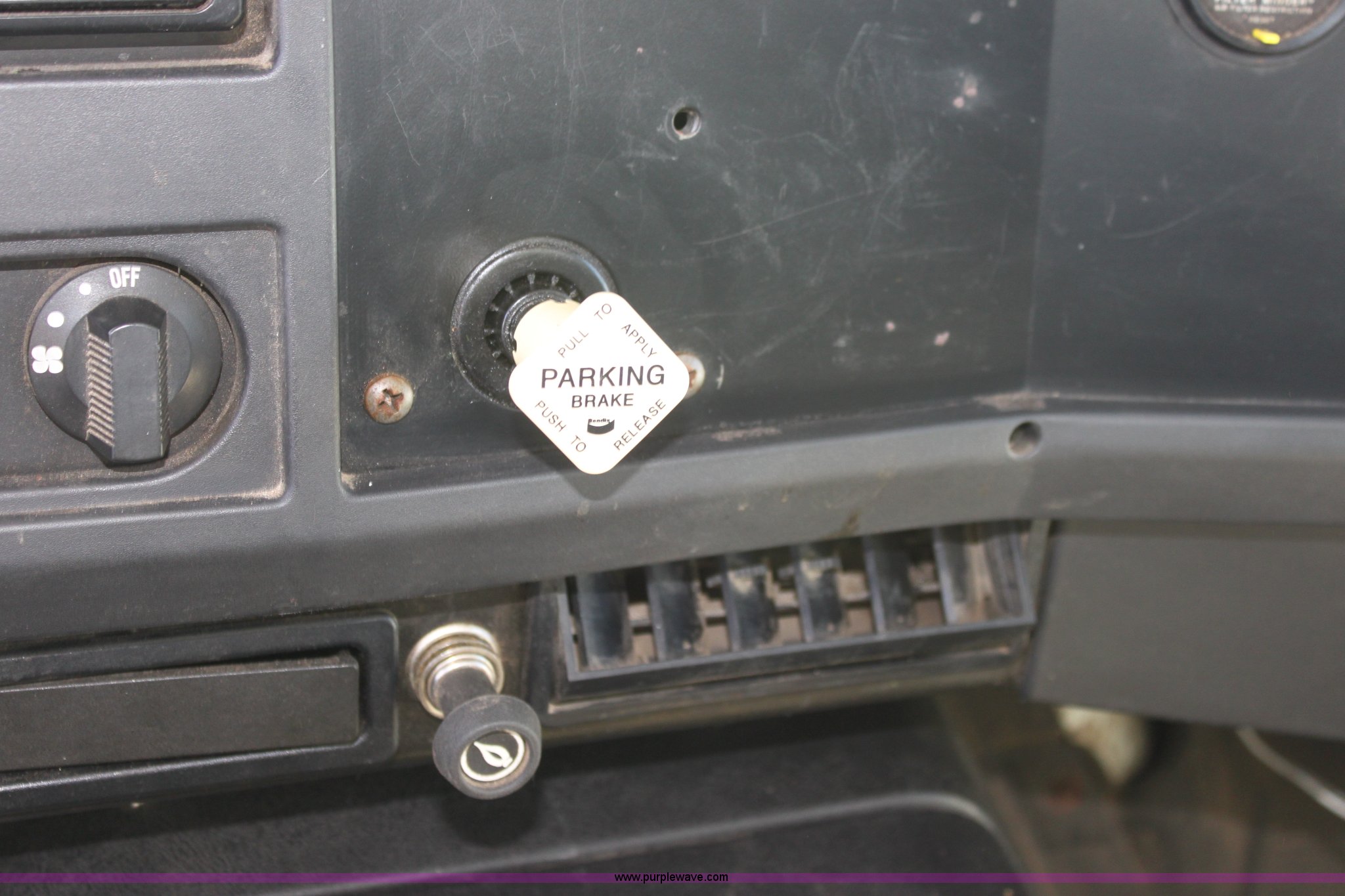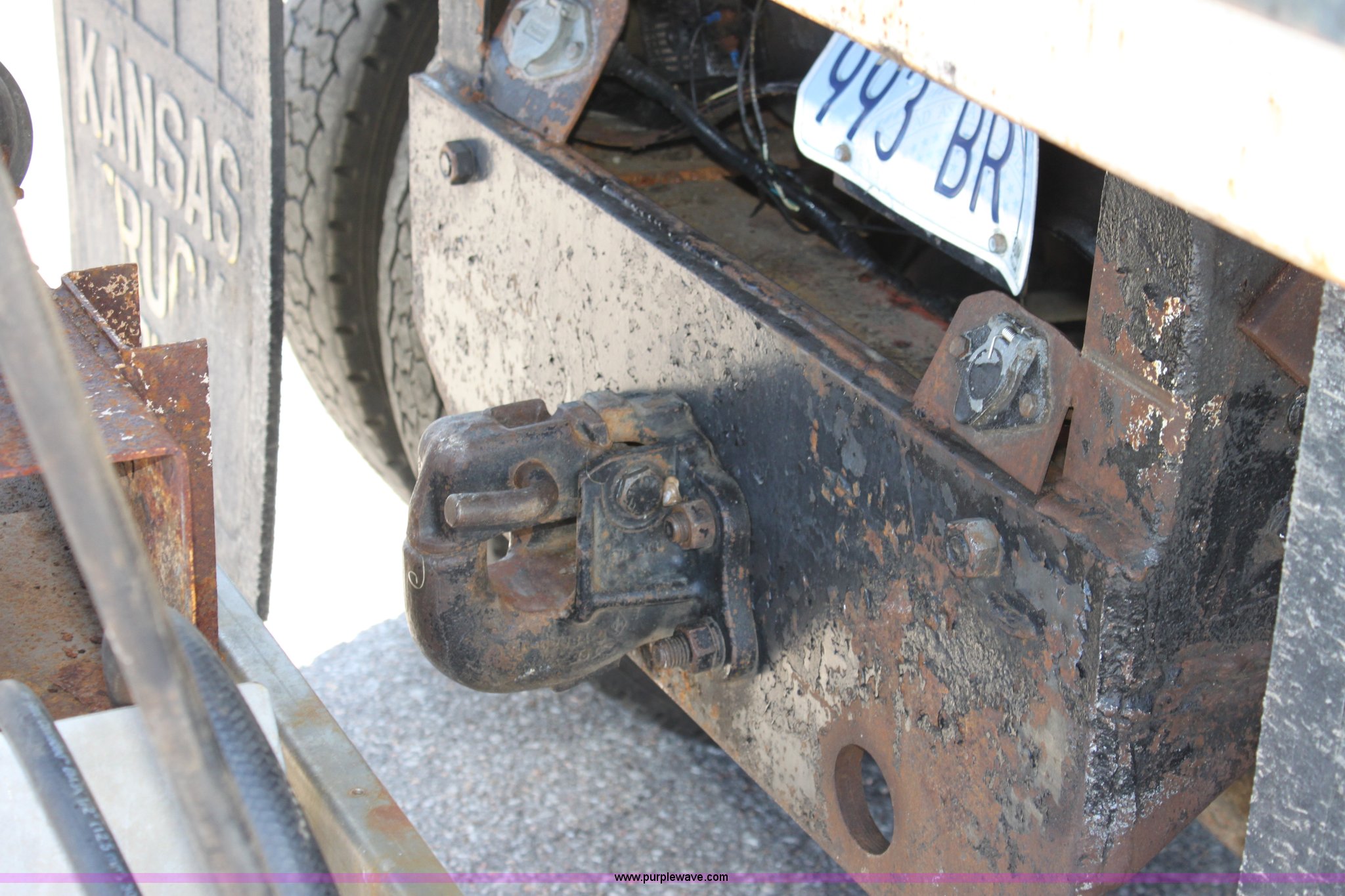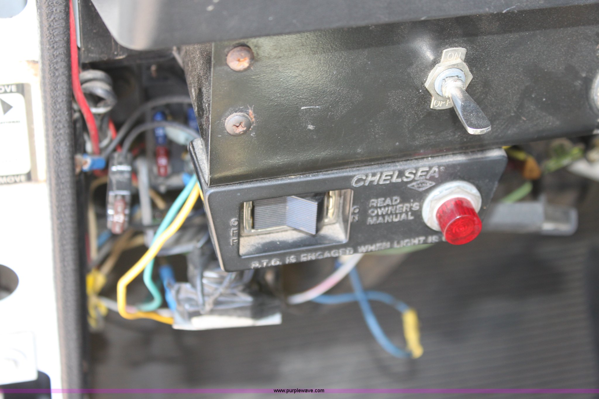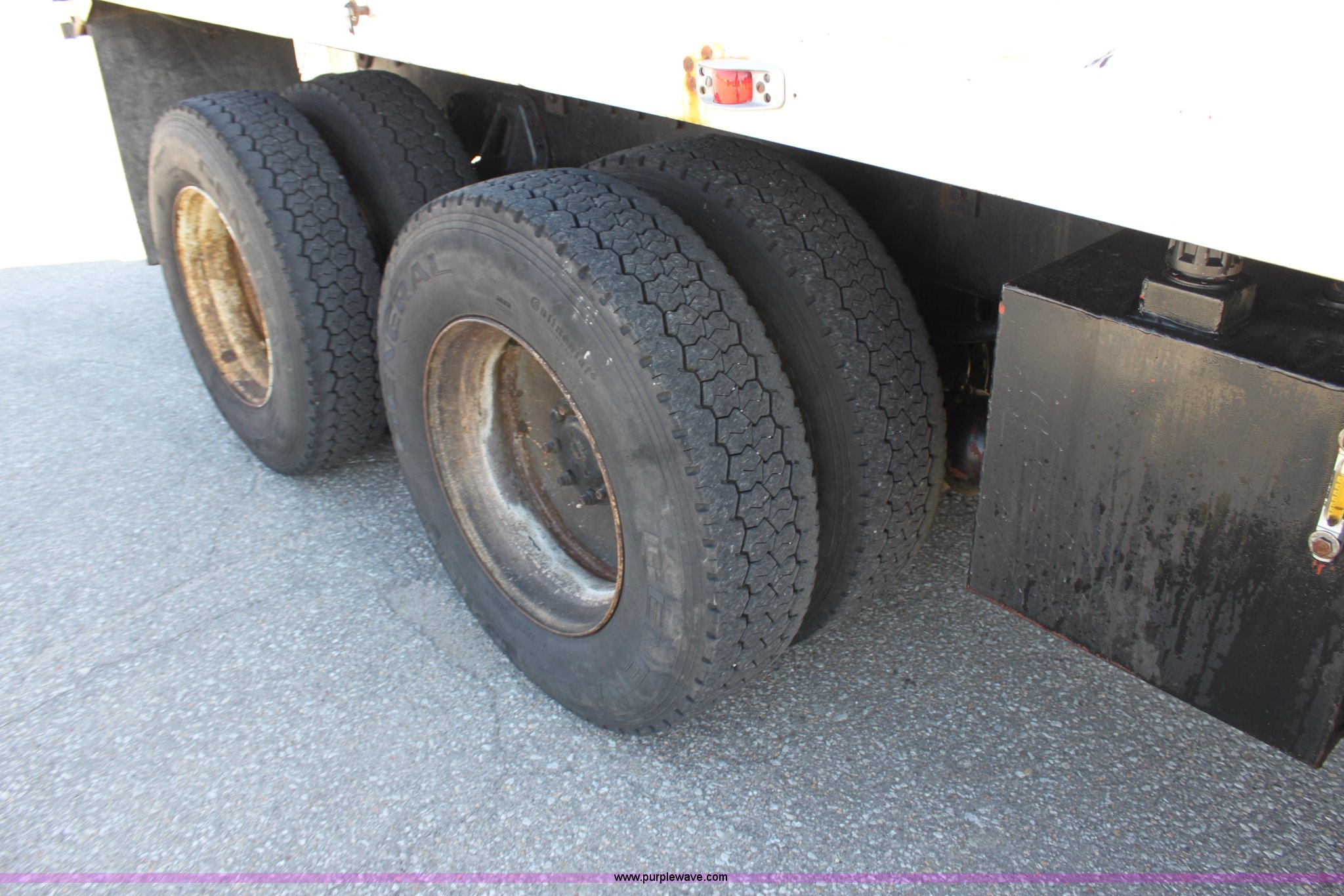 Purple Wave is selling a used Construction Dump Truck in Kansas. This item is a 2000 International F4900 tandem axle dump truck with the following: 81,490 miles on odometer, 4,772 hours on meter, Navistar DT530 8.7L diesel engine, Allison automatic transmission, AC and heat, AM/FM/Cassette, Heated mirrors, Cruise, Power windows, Suspension seat, Chelsea PTO, Locking power divider, Prodigy brake controller, Force spreader controls, In-cab plow controls, Air operated end gate, Flink stainless steel spreader, Air brakes, Rear hydraulic remotes, Pintle hitch, Trailer wiring, 295/75R22.5 tires, Motorola radio not included, Equip# 2046