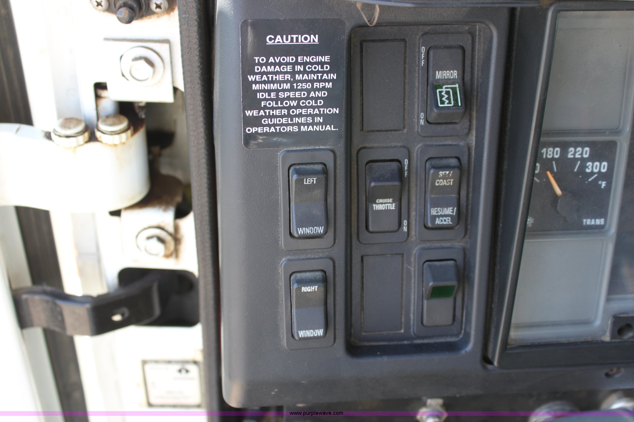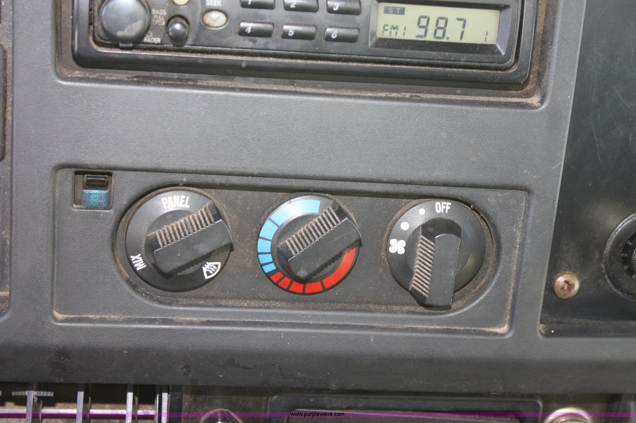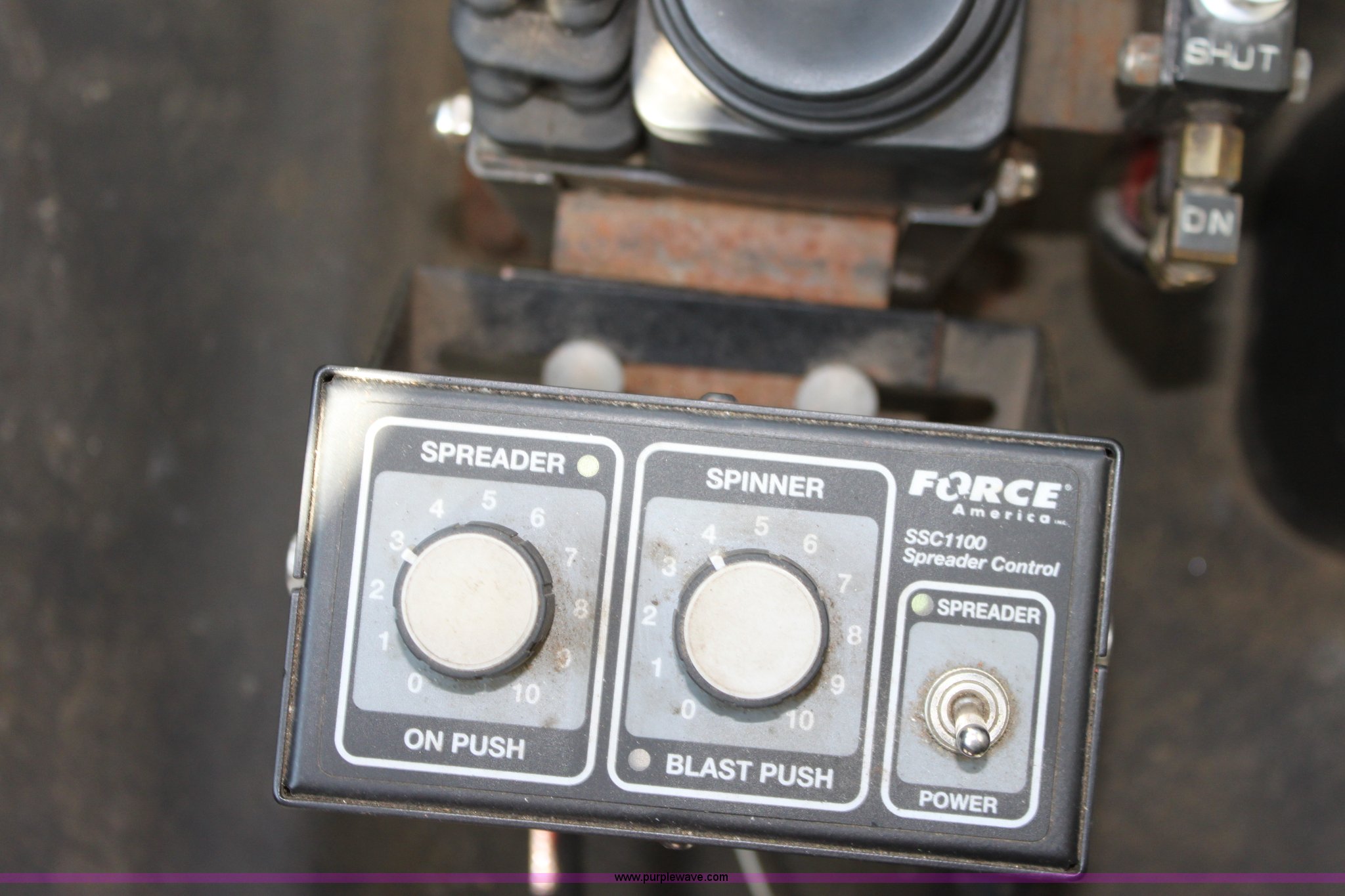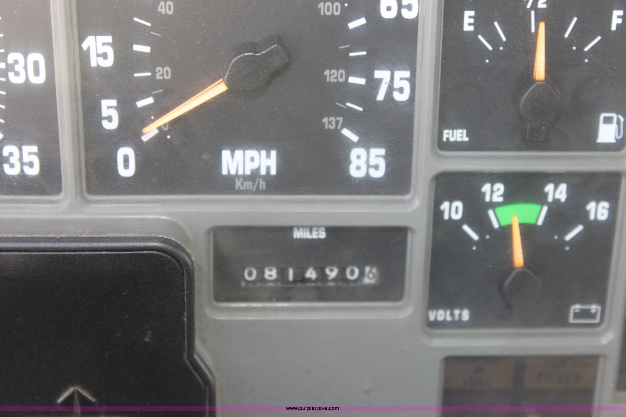 Purple Wave is selling a used Construction Dump Truck in Kansas. This item is a 2000 International F4900 tandem axle dump truck with the following: 81,490 miles on odometer, 4,772 hours on meter, Navistar DT530 8.7L diesel engine, Allison automatic transmission, AC and heat, AM/FM/Cassette, Heated mirrors, Cruise, Power windows, Suspension seat, Chelsea PTO, Locking power divider, Prodigy brake controller, Force spreader controls, In-cab plow controls, Air operated end gate, Flink stainless steel spreader, Air brakes, Rear hydraulic remotes, Pintle hitch, Trailer wiring, 295/75R22.5 tires, Motorola radio not included, Equip# 2046