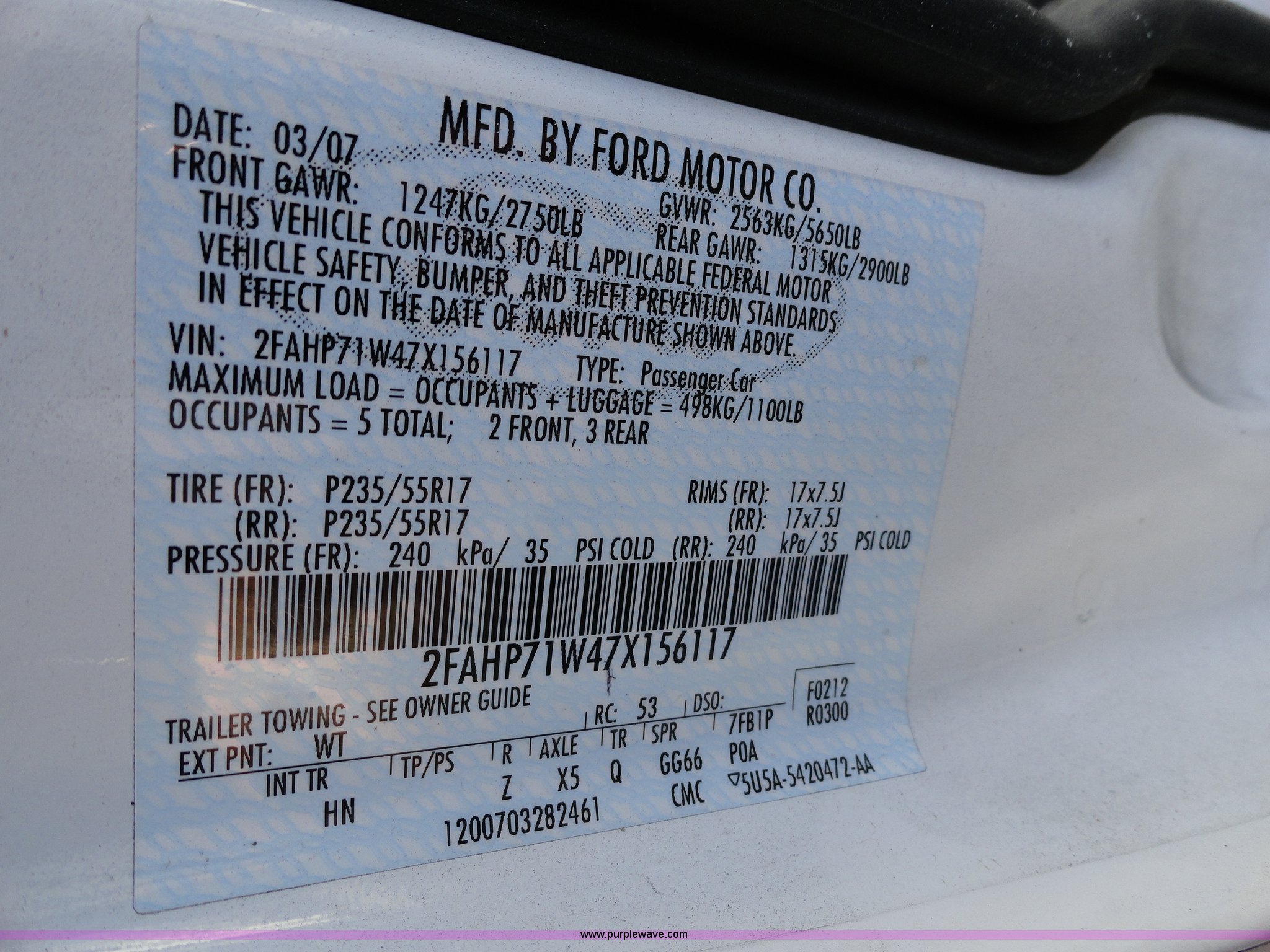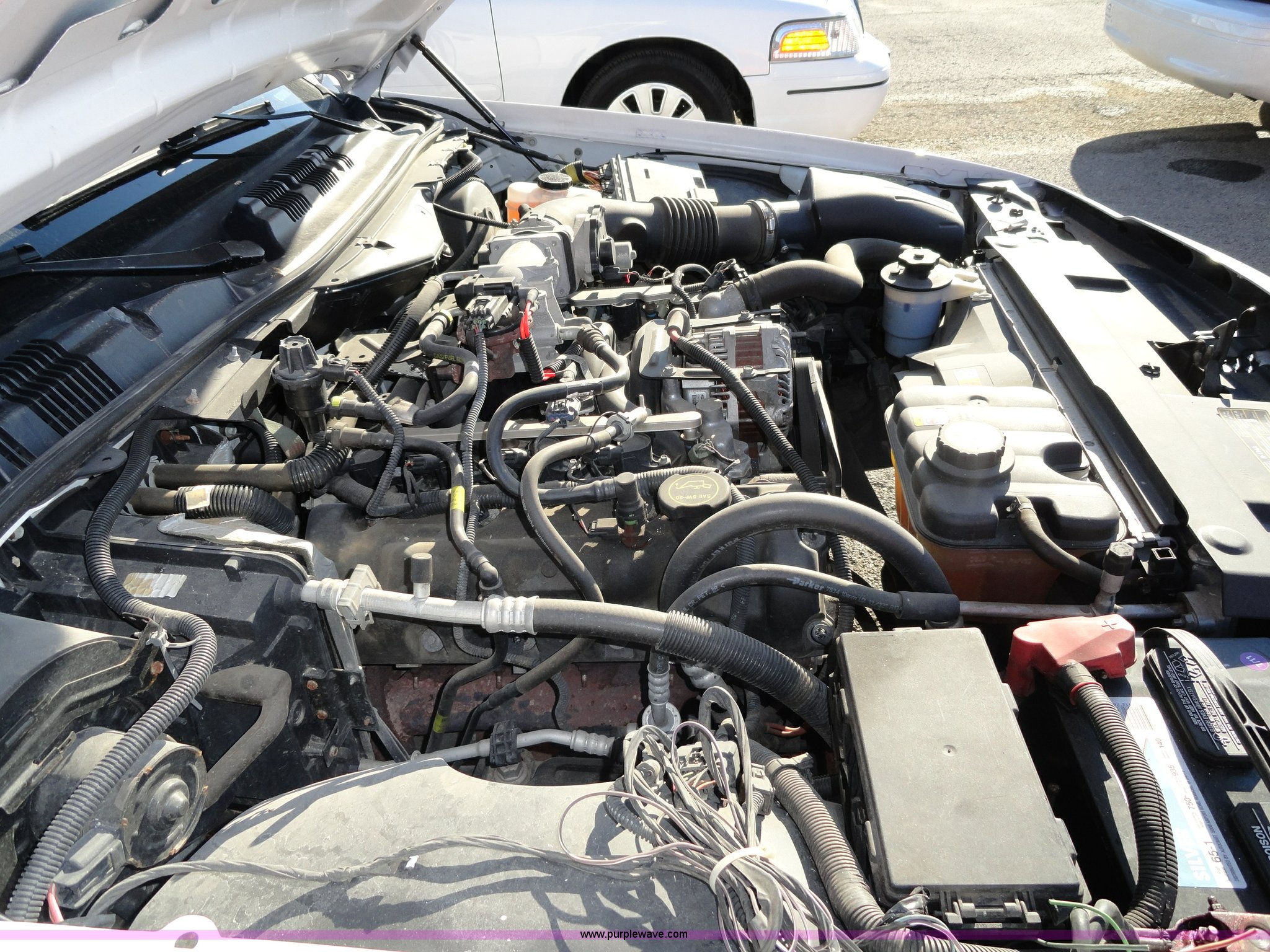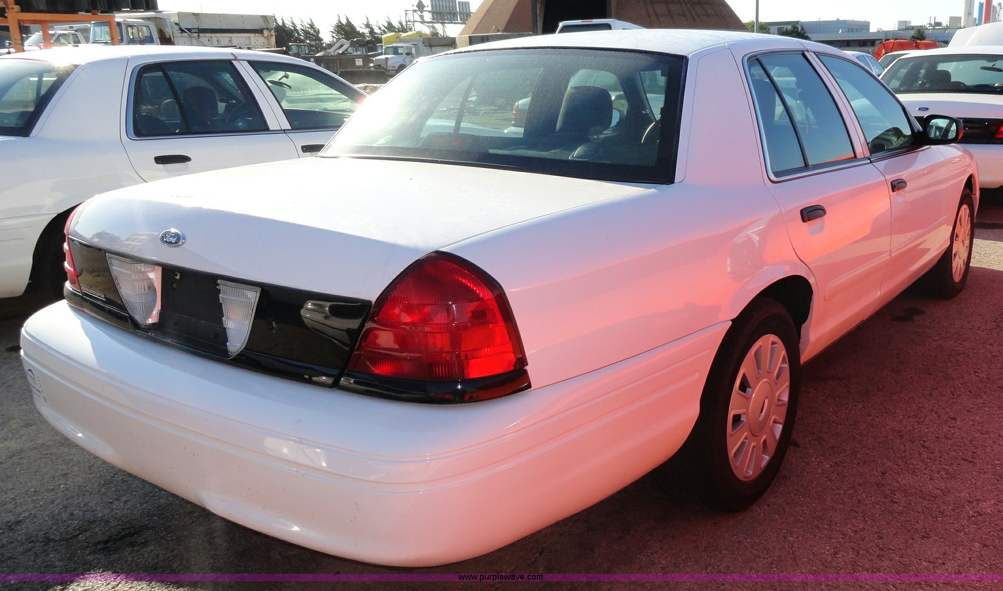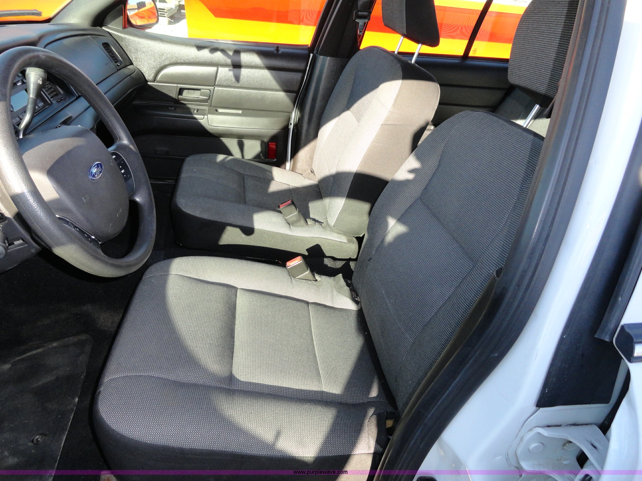 Purple Wave is selling a used Passenger Vehicle in Kansas. This item is a 2007 Ford Crown Victoria Police Interceptor with the following: 99,053 miles on odometer, 4.6L V8 EFI engine, Automatic transmission, AC and heat, Tilt, Cruise, AM/FM, Power windows, locks, mirrors, and seats, Cloth seats, 235/55R17 tires, Weak battery, Equip# 5994