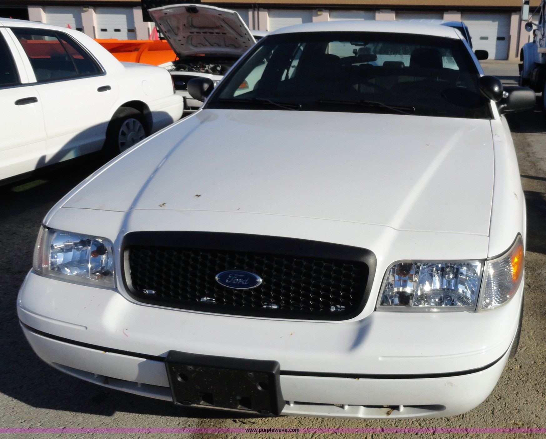 Purple Wave is selling a used Passenger Vehicle in Kansas. This item is a 2007 Ford Crown Victoria Police Interceptor with the following: 98,996 miles on odometer, 4.6L V8 EFI engine, Automatic transmission, AC and heat, Tilt, Cruise, AM/FM, Power windows, locks, mirrors, and seats, Cloth seats, Driver seat cosmetic damage, 235/55R17 tires, Weak battery, Equip# 5961