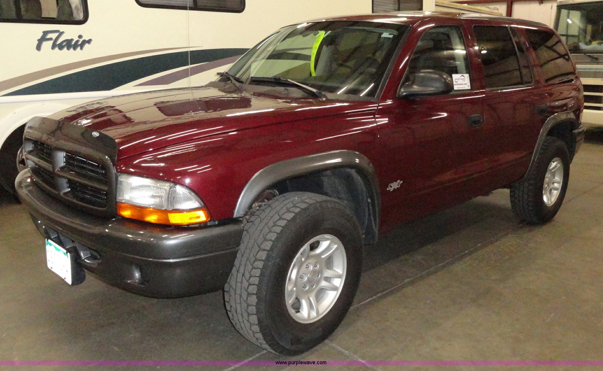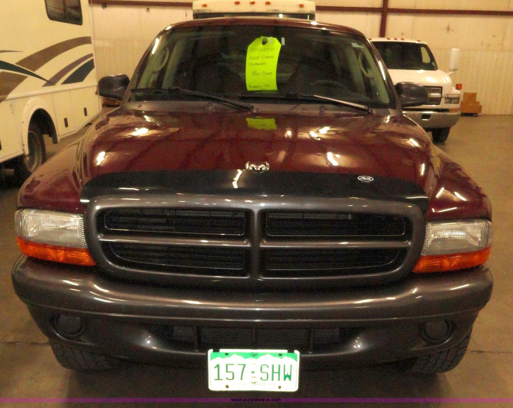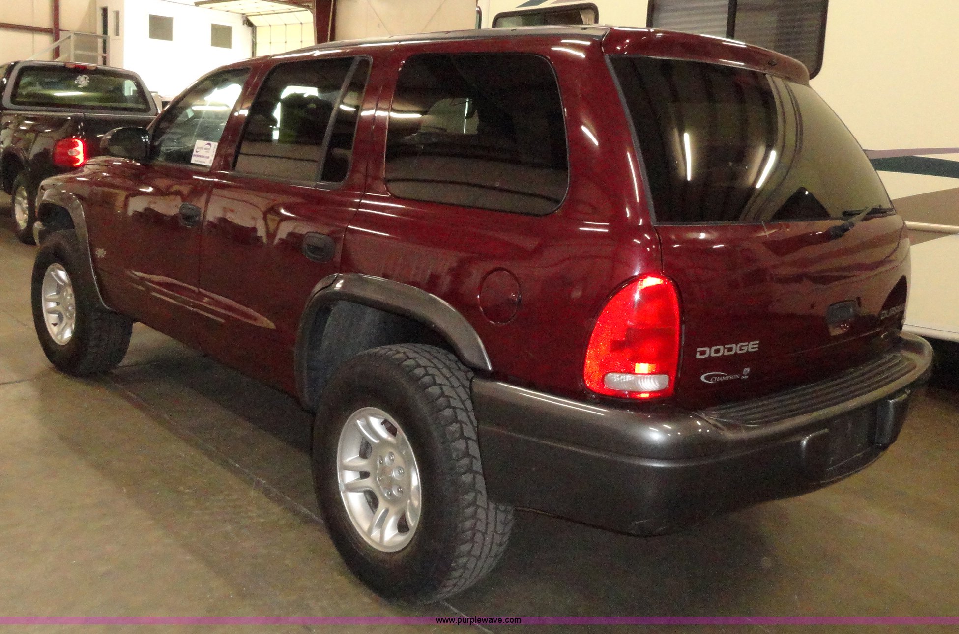 Purple Wave is selling a used Passenger Vehicle in Kansas. This item is a 2002 Dodge Durango SXT SUV with the following: 96,576 miles on odometer, 4.7L V8 MPI engine, Automatic transmission, Four wheel drive, AC and heat, Tilt, Cruise, AM/FM/CD, Power windows, locks, mirrors, and seats, Vinyl seats, damaged, Bug shield, 265/75R16 tires, Interior/exterior cosmetic damage, Hail damage, Weak battery