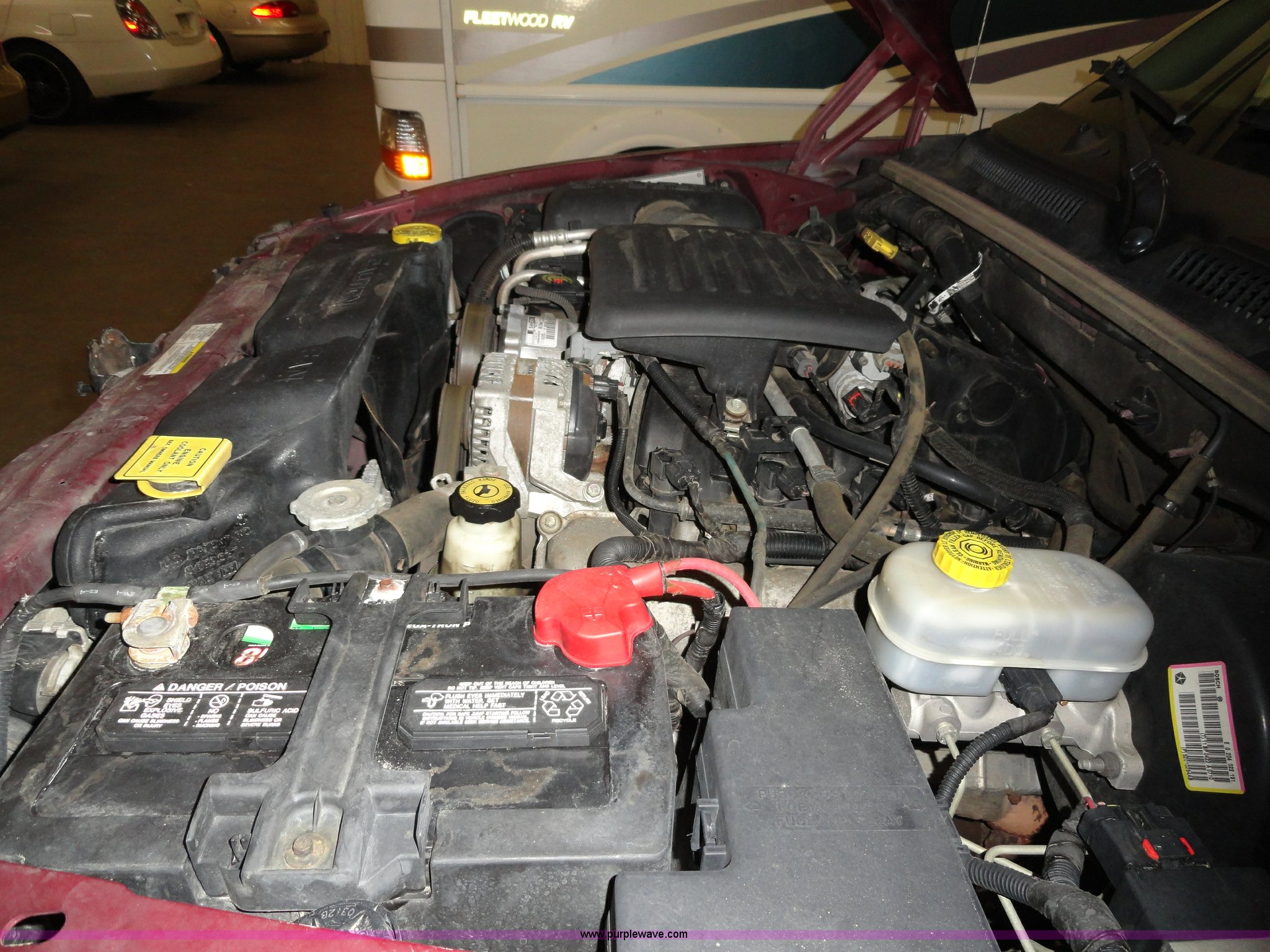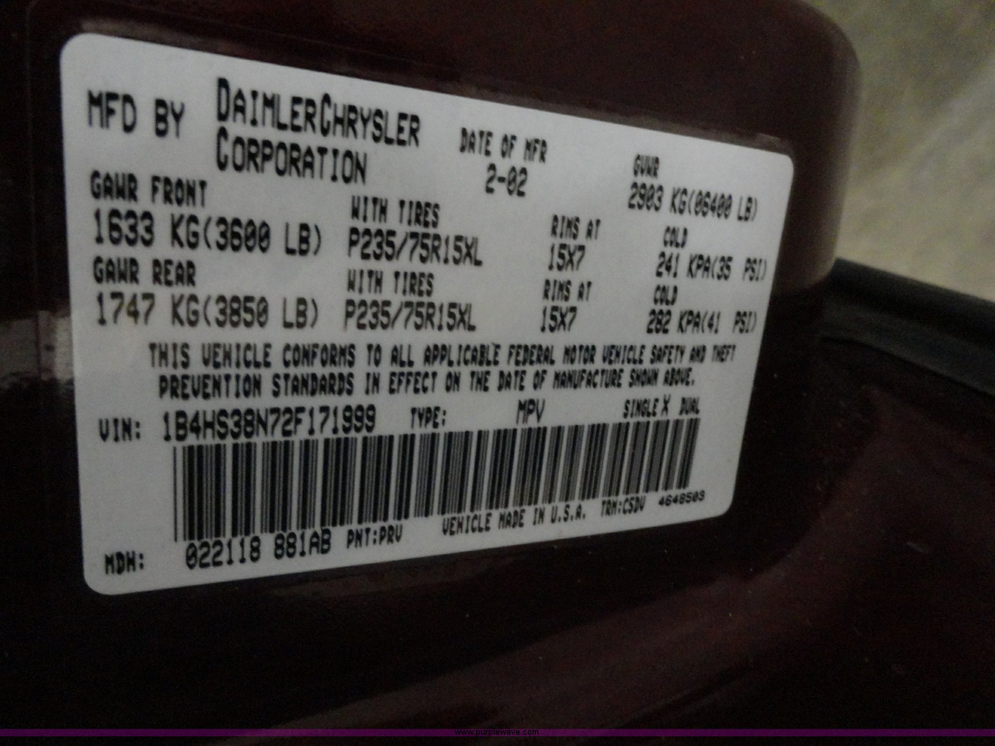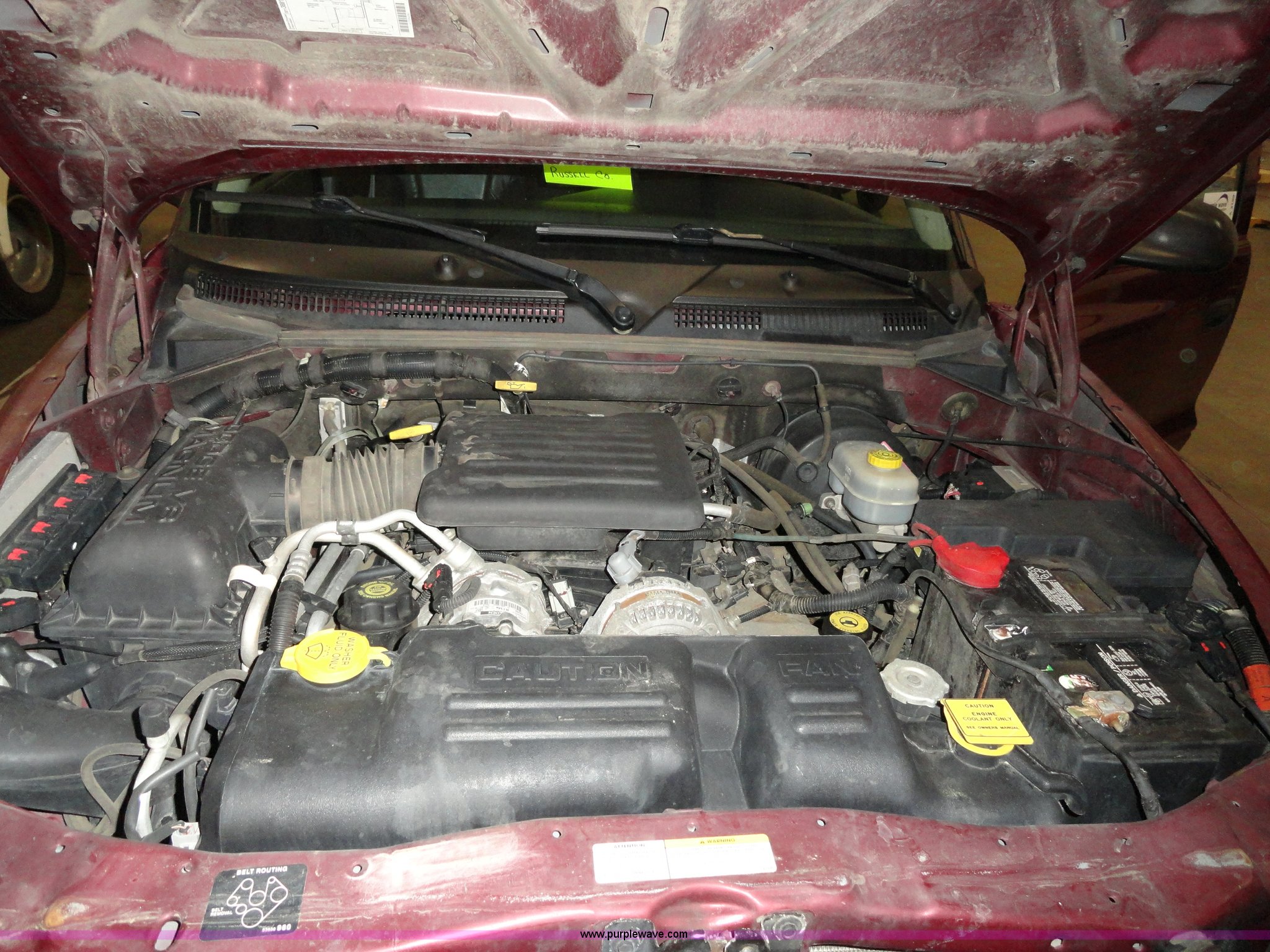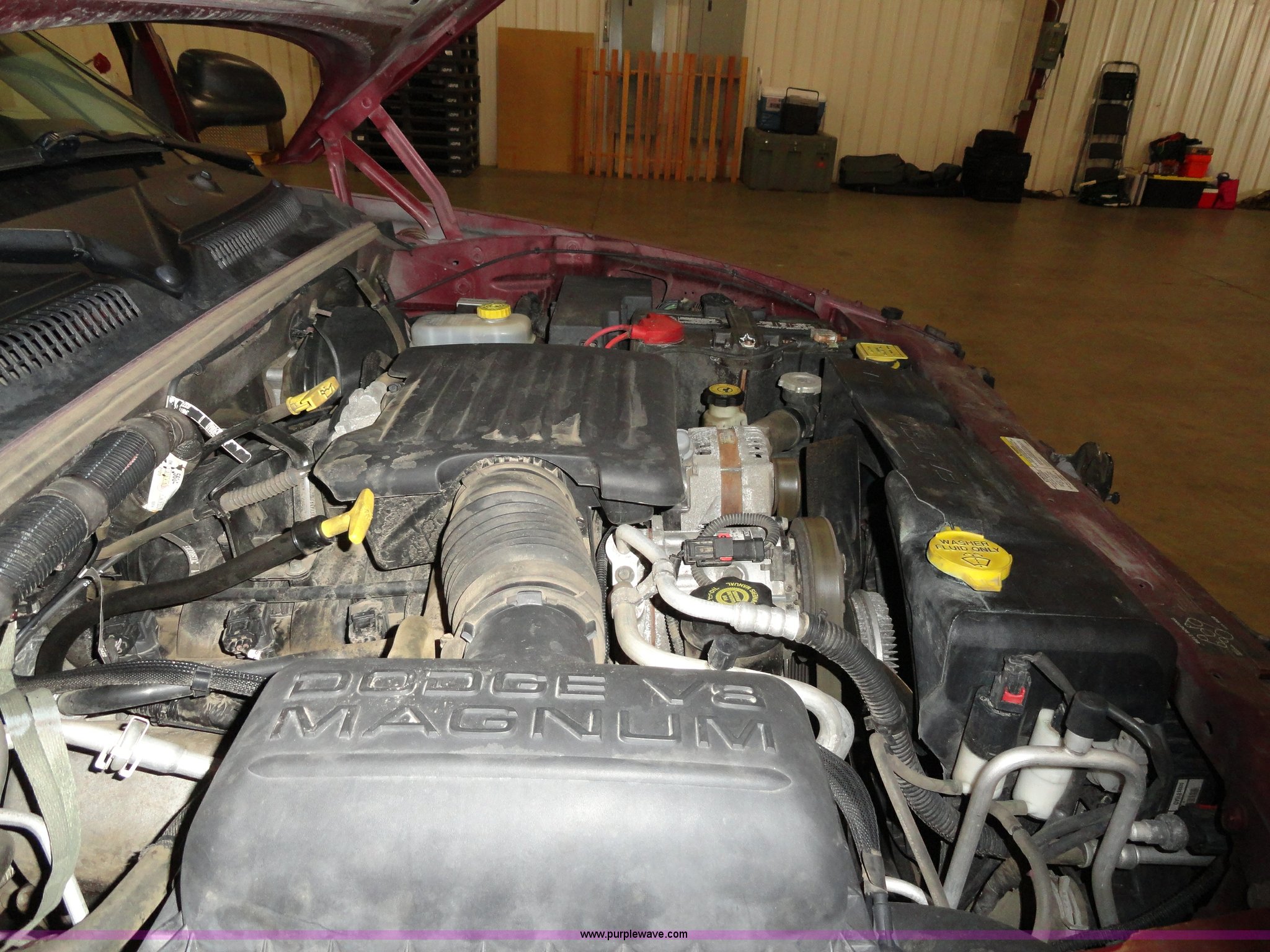 Purple Wave is selling a used Passenger Vehicle in Kansas. This item is a 2002 Dodge Durango SXT SUV with the following: 96,576 miles on odometer, 4.7L V8 MPI engine, Automatic transmission, Four wheel drive, AC and heat, Tilt, Cruise, AM/FM/CD, Power windows, locks, mirrors, and seats, Vinyl seats, damaged, Bug shield, 265/75R16 tires, Interior/exterior cosmetic damage, Hail damage, Weak battery