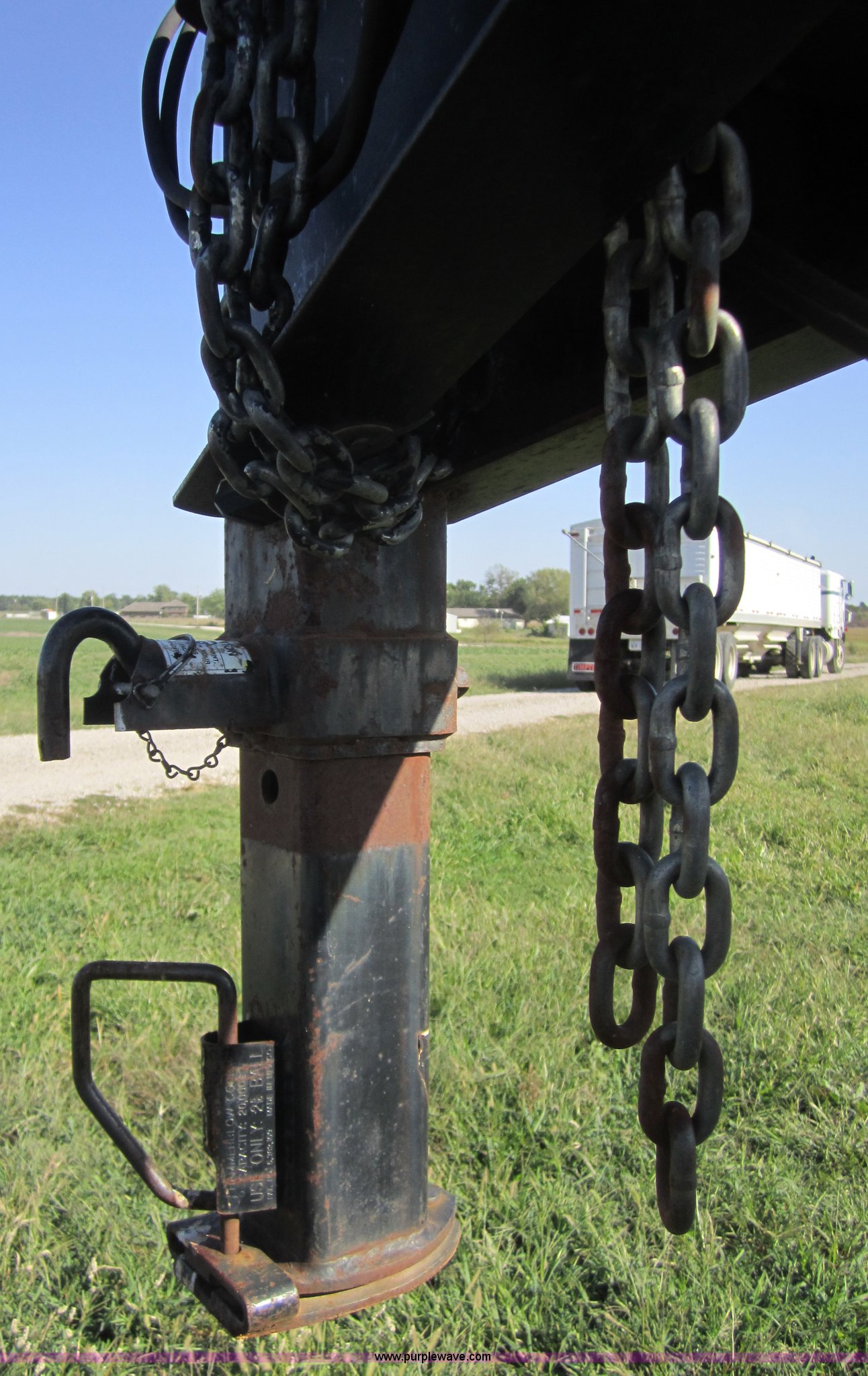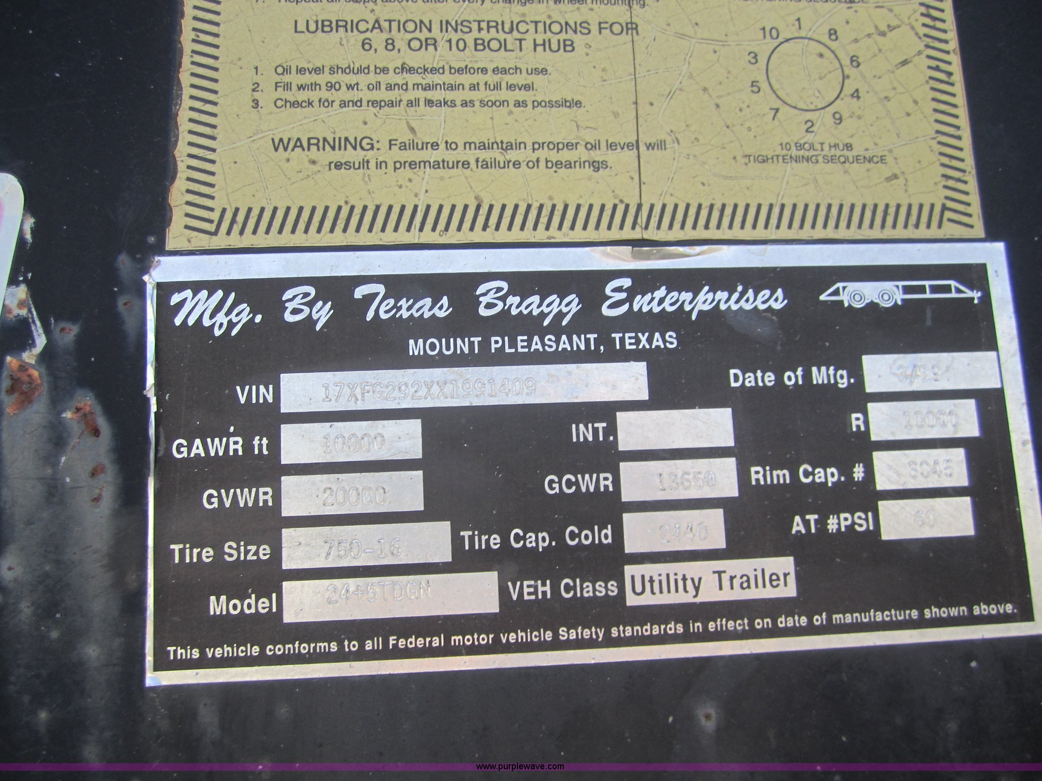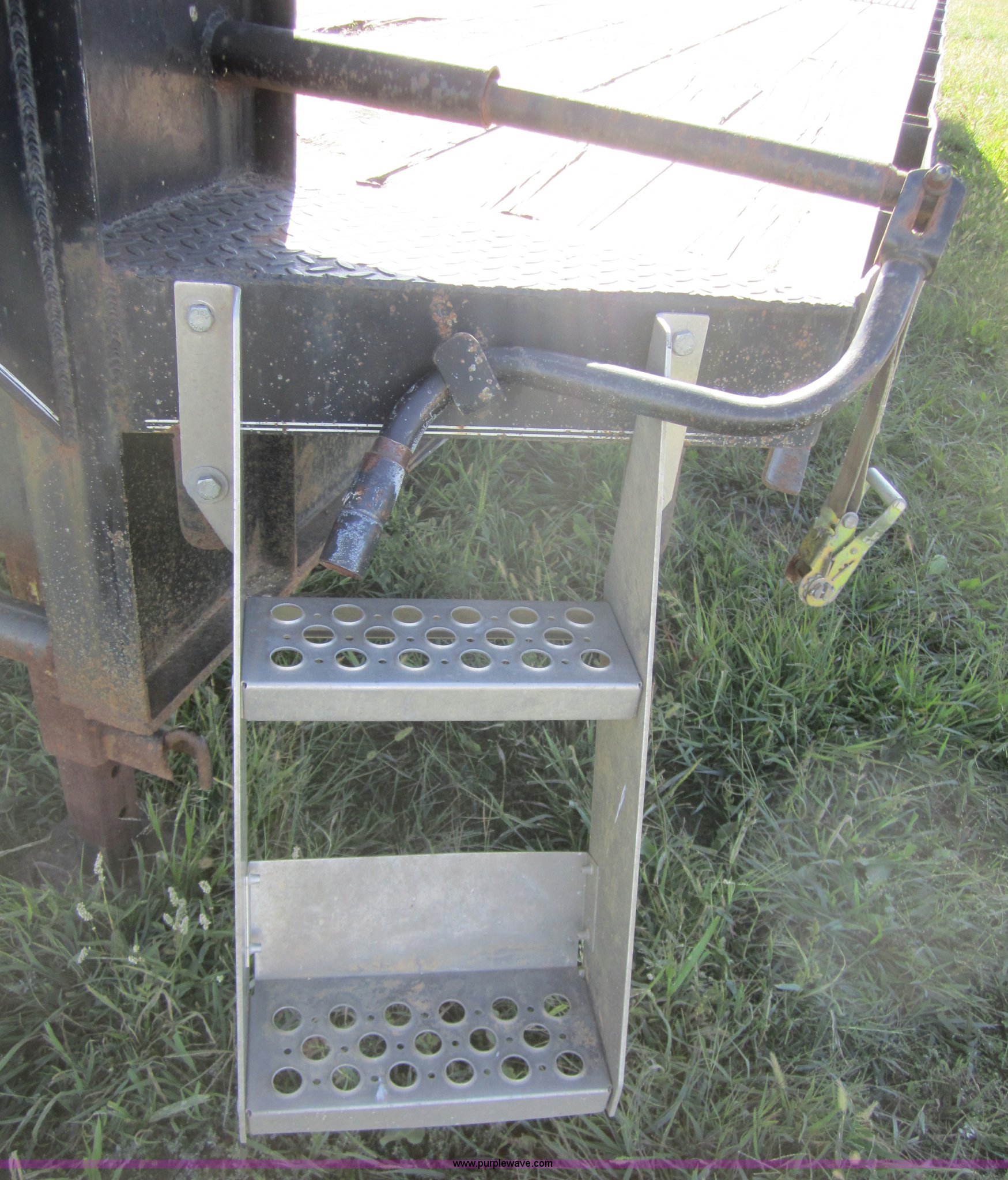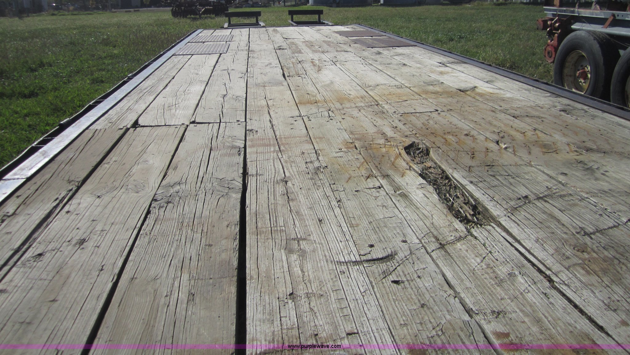 Purple Wave is selling a used Equip. Trailer in Kansas. This item is a 1999 Texas Bragg 30' flatbed trailer with the following: 25' deck, 5' dove tail, 96" width, Dual folding ramps, Wood deck, Dual 10,000 lb axles, GVWR 20,000 lbs, 7.50R16 tires