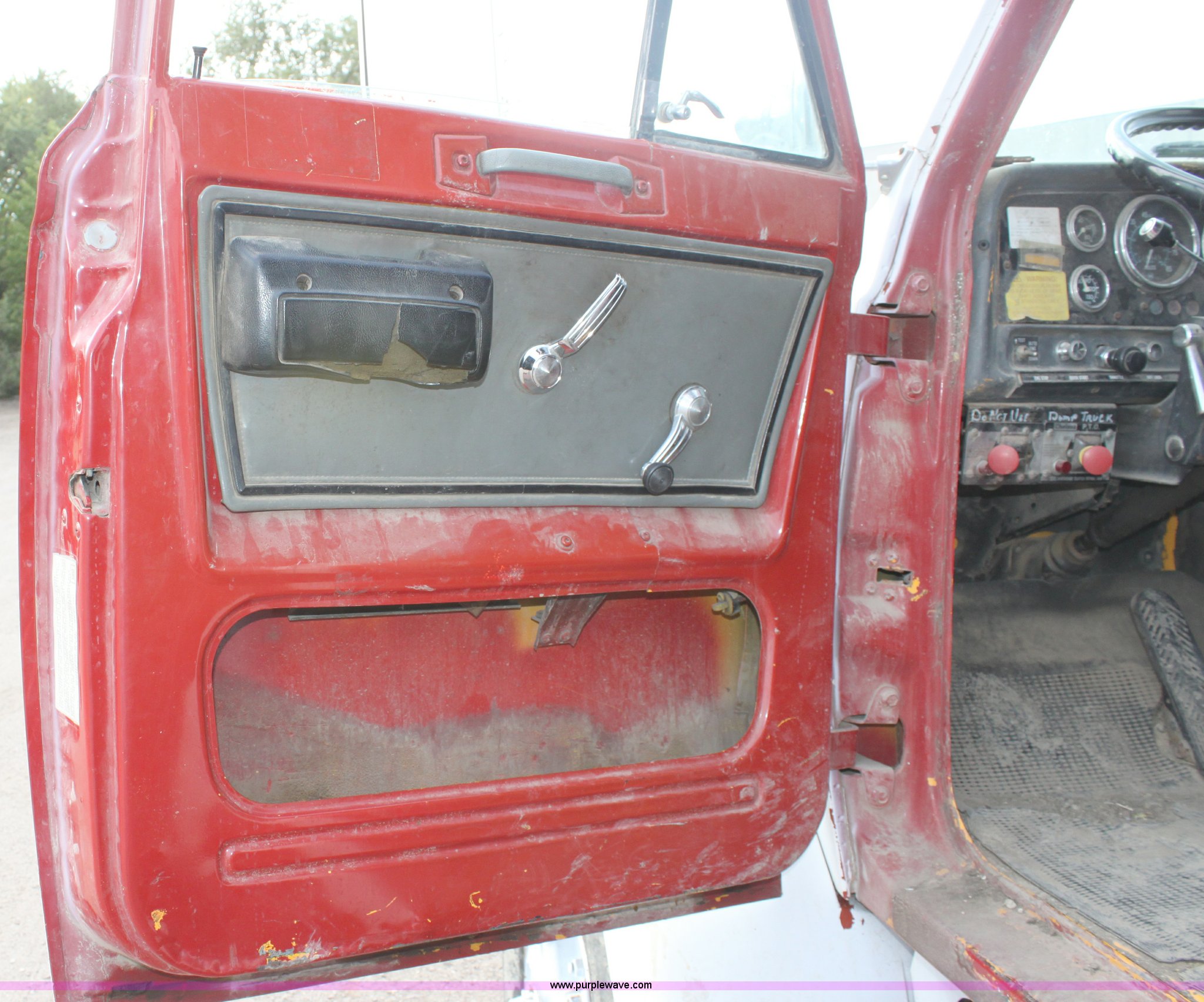 Purple Wave is selling a used Construction Dump Truck in Kansas. This item is a 1987 GMC Brigadier tandem axle dump truck with the following: 118,325 miles on odometer, 3,022 hours on meter, Mileage and hours may vary, Caterpillar 3208 10.4L V8 diesel engine, Allison automatic transmission, Remanufactured transmission installed 2009, approx. 20,000 miles of use, Heater, Manual windows and locks, Chelsea PTO, Manual roll over tarp, Hydraulic tailgate controls, Dual 50 gallon fuel tanks, Spring suspension, Recently replaced batteries, Pintle hitch, Rear six-pin trailer wiring, 10.00-20 tires, GVWR 50,000 lbs, FAWR 12,000 lbs, RAWR 38,000 lbs