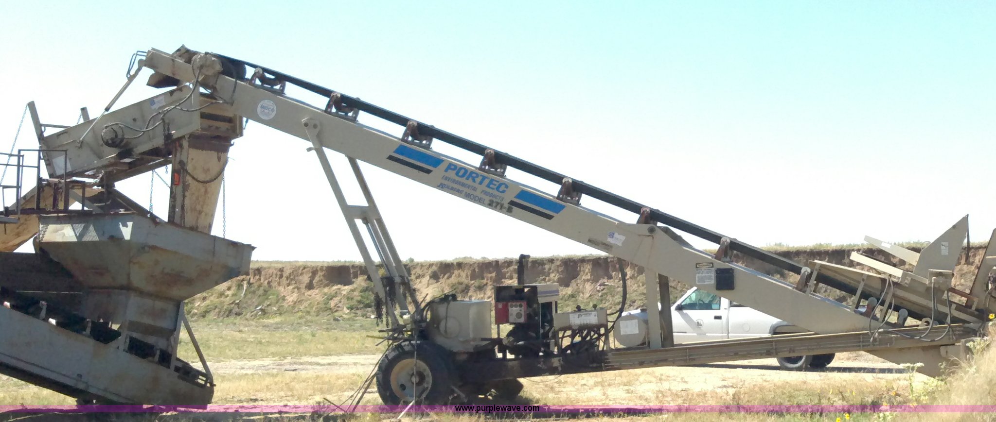Purple Wave is selling a used Screen or Screening Plant in Kansas. This item is a 1996 Portech 271B sand shaker with the following: 8,599 hours on meter, John Deere four cylinder diesel engine, Hydraulic driven conveyor belt, Shredder, 25.5"W conveyor belt, 11" rollers, 36'L conveyor, Air brakes, 11-22.5 tires, Serial 185271B304096