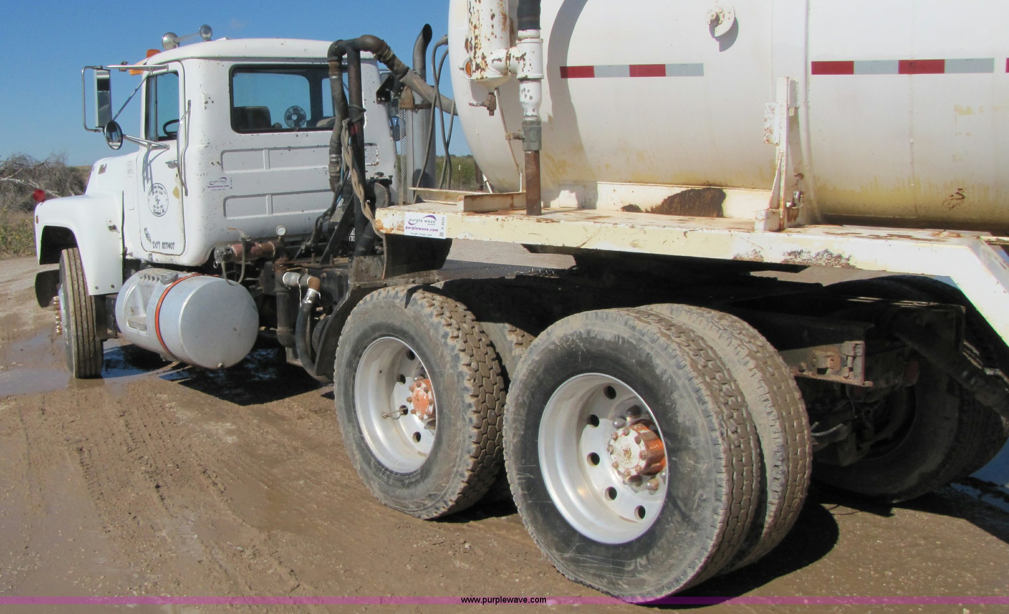 1986 Mack R688ST semi truck. 71,332 miles on odometer, 7,313 hours on meter, Mack E6 11.0L diesel engine, Manual transmission, Twin screw, AC and heat, AM/FM/CD, Air ride seat, Exterior visor, Chrome bumper, Dual 75 gallon fuel tanks, Steel deck plate, Sliding fifth wheel, Quarter fender, PTO, Spring suspension, Air brakes, 2009 Challenger 607 vacuum pump Serial 31228, Aluminum outer wheels, steel inner wheels, 11R24.5 tires. 1M2N187Y9GA013584. Shipping quotes available. J & L Oilfield Services. 300 E Airport Rd. Shattuck, OK 73858