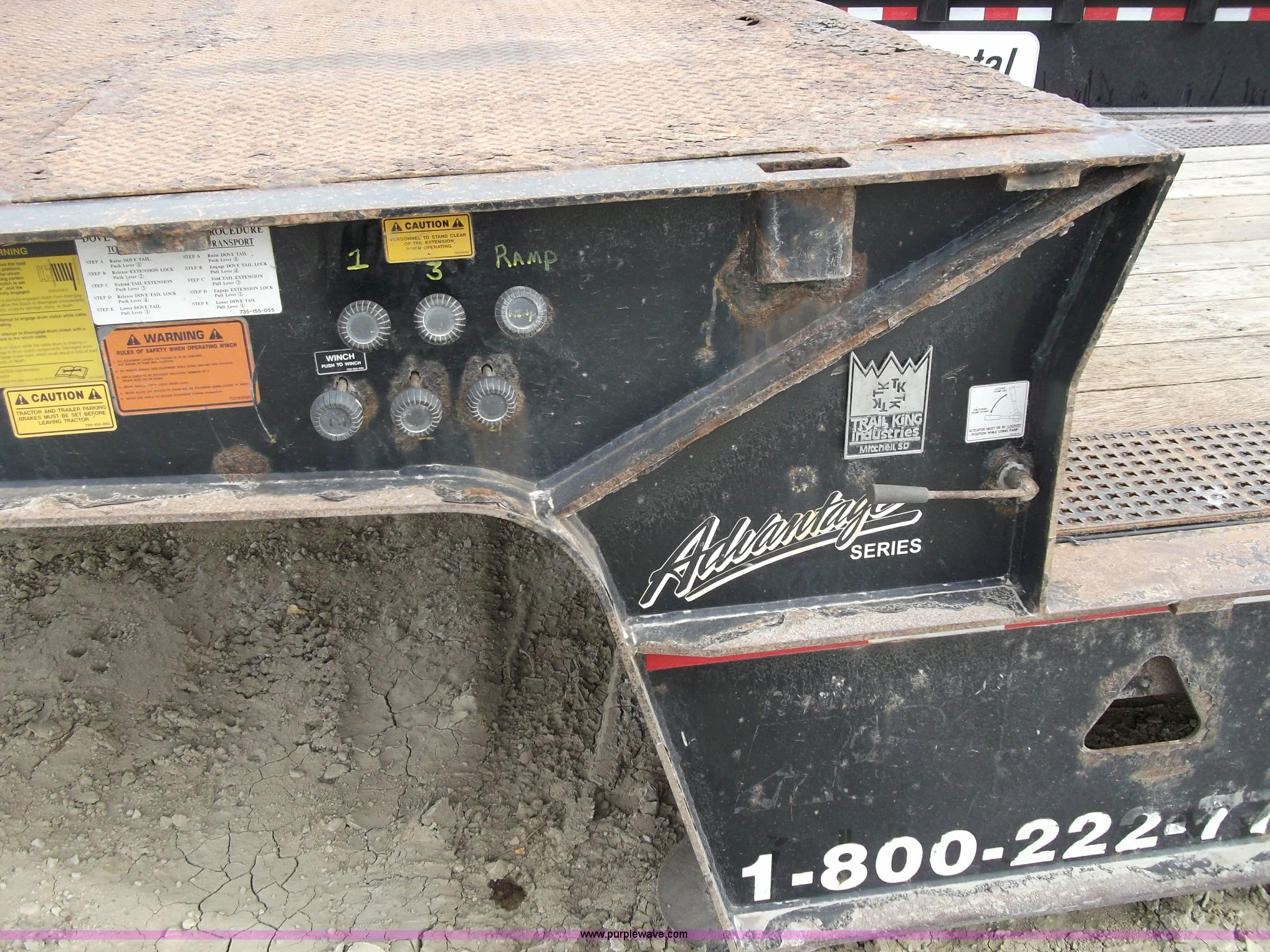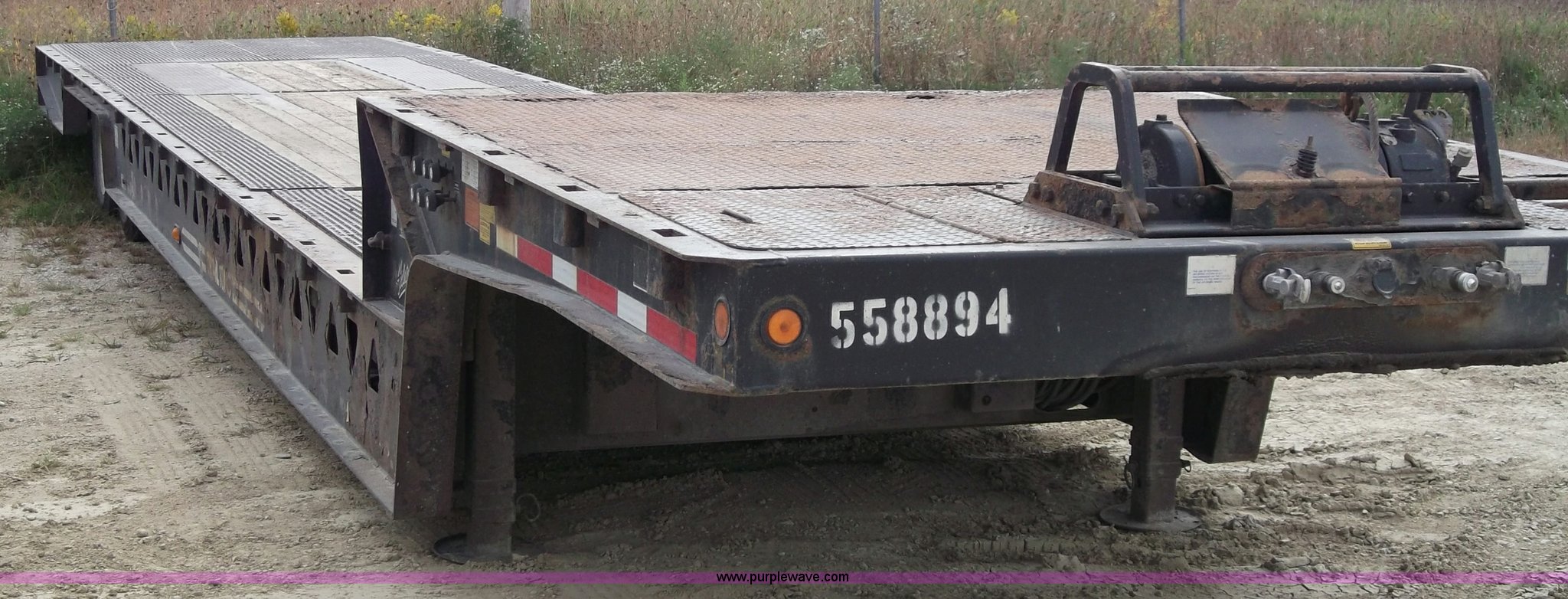 Purple Wave is selling a used Flat or Drop Deck Trailer in Iowa. This item is a 2005 Trail King TK70HT Hydra Tail 48' trailer with the following: Wood deck with steel deck runners and grating, 9' top bed with winch, 20,000 lb hydraulic winch with remote, 39'L X 8'6"W bottom deck, Dove tail, GVWR 86,580 lbs, 235/75R17.5 TH10 tires, Extensive repairs completed in August:, Wheel bearings, Brake shoes and drums, Hub caps and air bags, Park brake chambers and hoses, Cylinder assembly, Passenger side dovetail, Maintenance history available upon request, EIN 558894