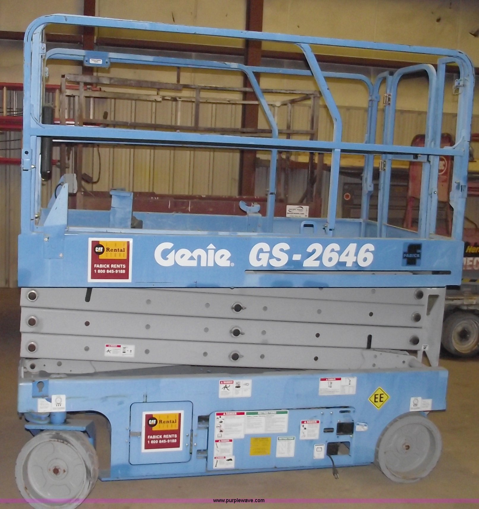 Genie GS2646 electric scissor lift has sold in Olathe, Kansas for $2200. Item C5572 sold on October 27th, 2011.
