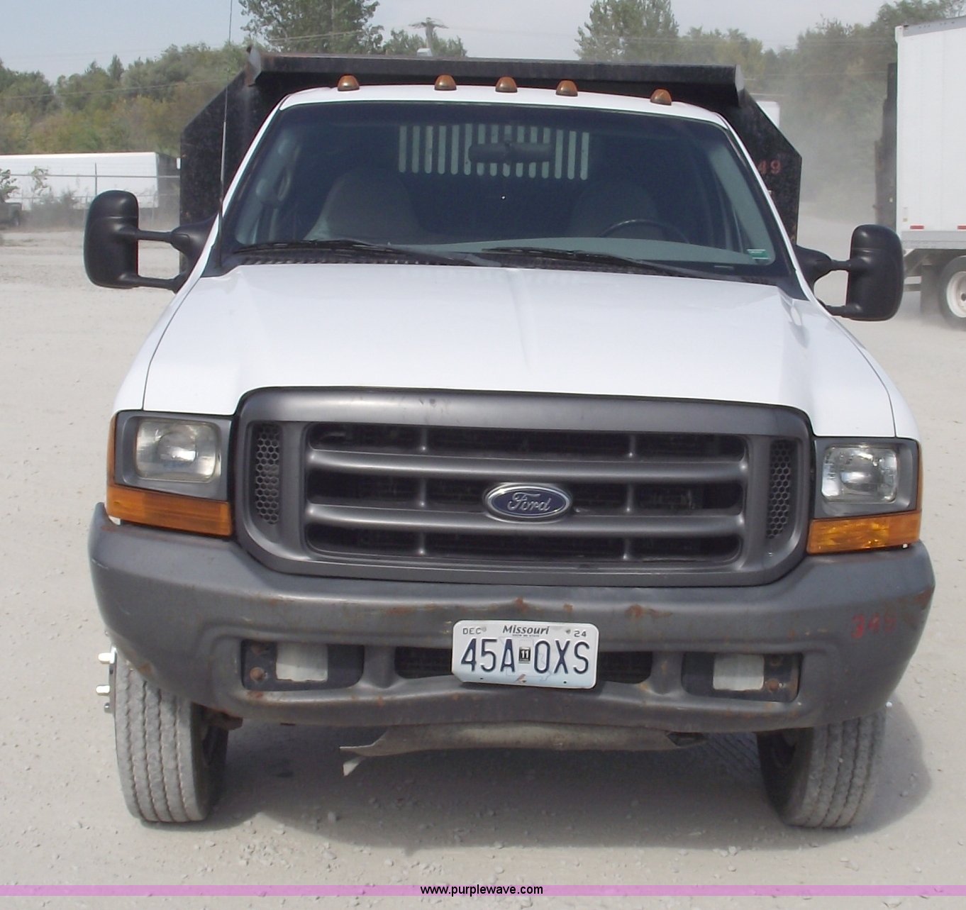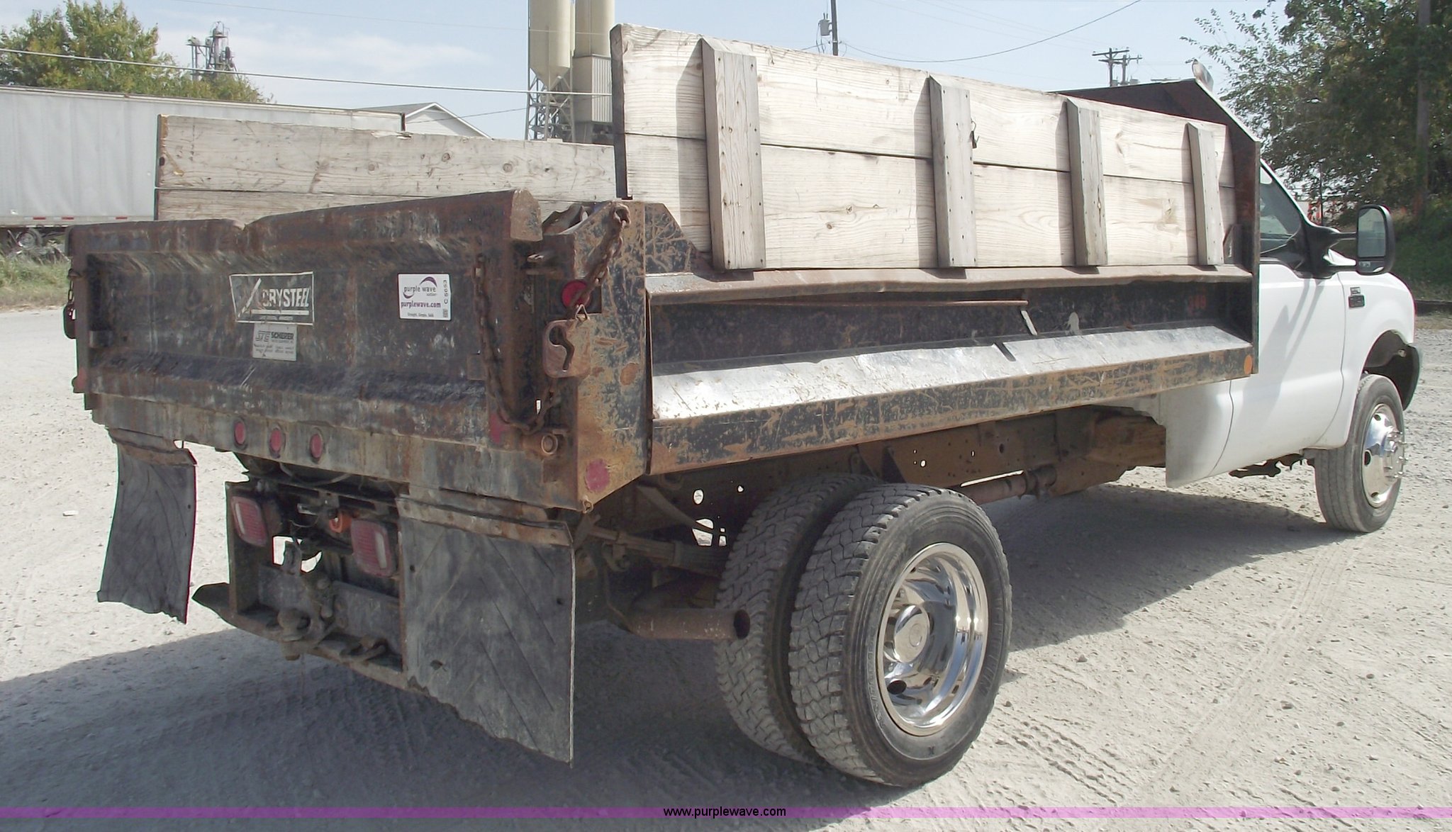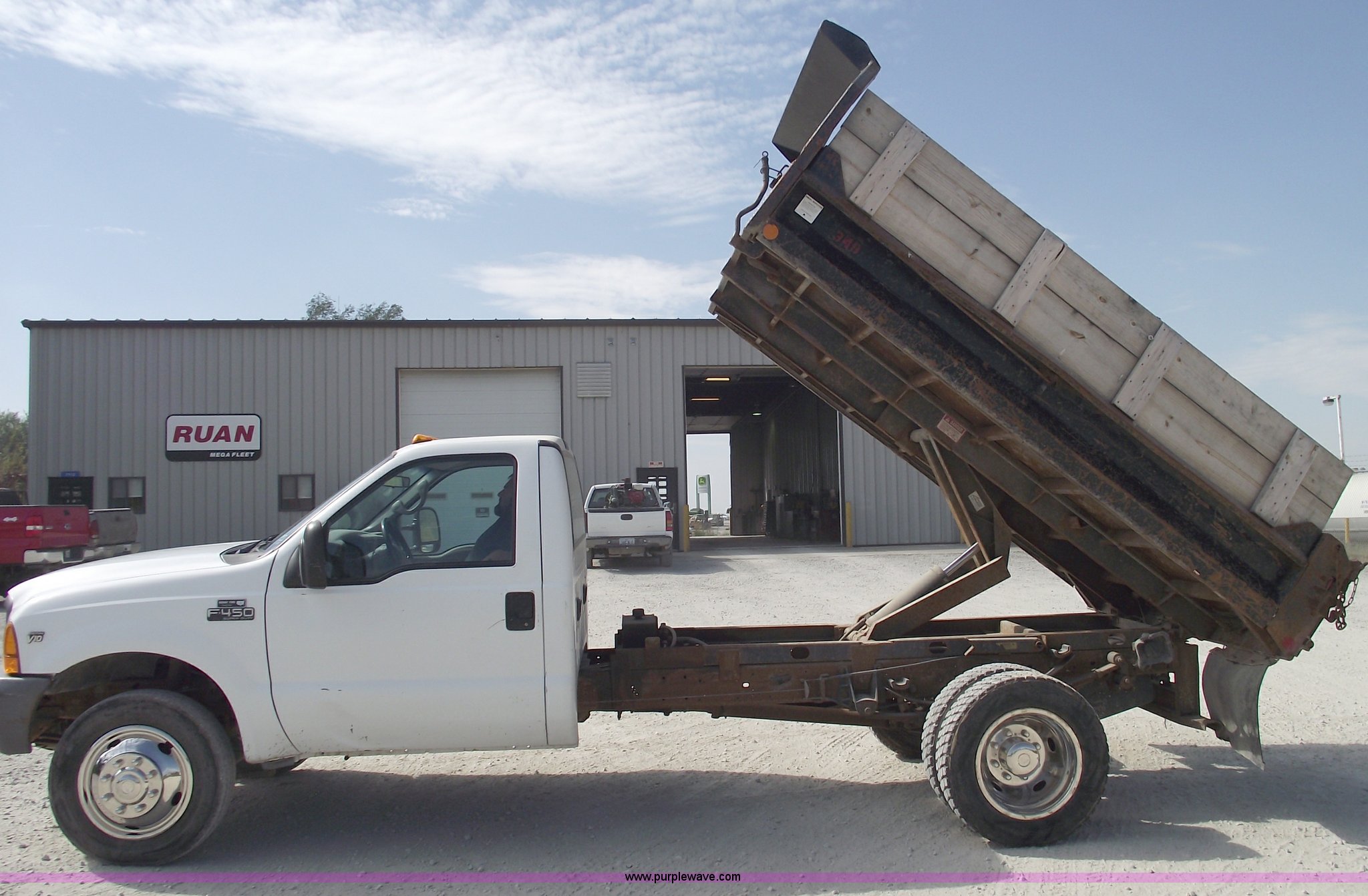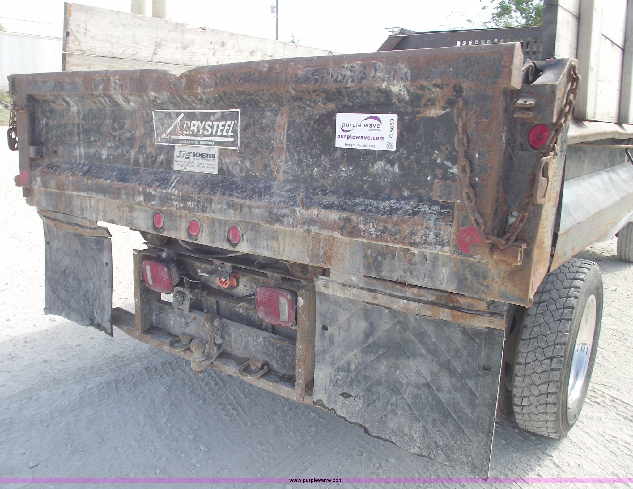 Purple Wave is selling a used Flat Bed Truck in Missouri. This item is a 1999 Ford F450 XL Super Duty pickup truck with the following: 100,690 miles on odometer, Mileage will vary, Triton 6.8L V10 EFI gas engine, Five speed manual transmission, AC and heat, AM/FM, Electric brake controller, Crysteel 11'L x 8'W dump bed, Manual end gate, Fold down sides, Bumper, Trailer wiring, Pintle hitch, Spring suspension, PTO, Hydraulic brakes, Recently replaced battery, Chrome wheel covers, 225/70/19.5 tires, 164" wheelbase, GVWR 16,000 lbs, FAWR 5,000 lbs, RAWR 11,000 lbs