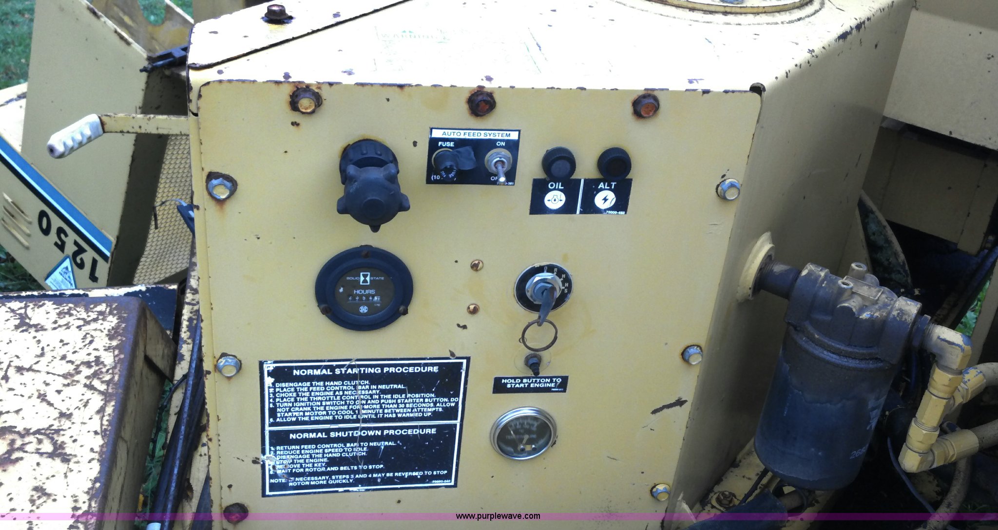 Purple Wave is selling a used Wood Chipper or Stump Grinder in Kansas. This item is a Vermeer 1250 chipper with the following: 2,354 hours on meter, Four cylinder diesel engine, Pin hitch, 235/85R16 tires, One tire blown