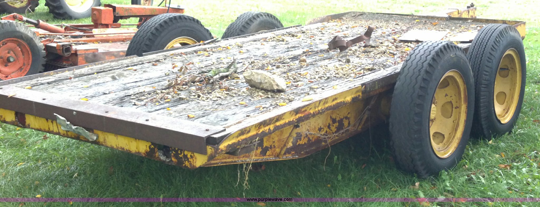 Purple Wave is selling a used Car or Utility Trailer in Kansas. This item is a 1968 shop built tandem axle trailer with the following: Tilt deck, 14'L x 6'4" wood deck, Pin hitch, 8.25-20 tires