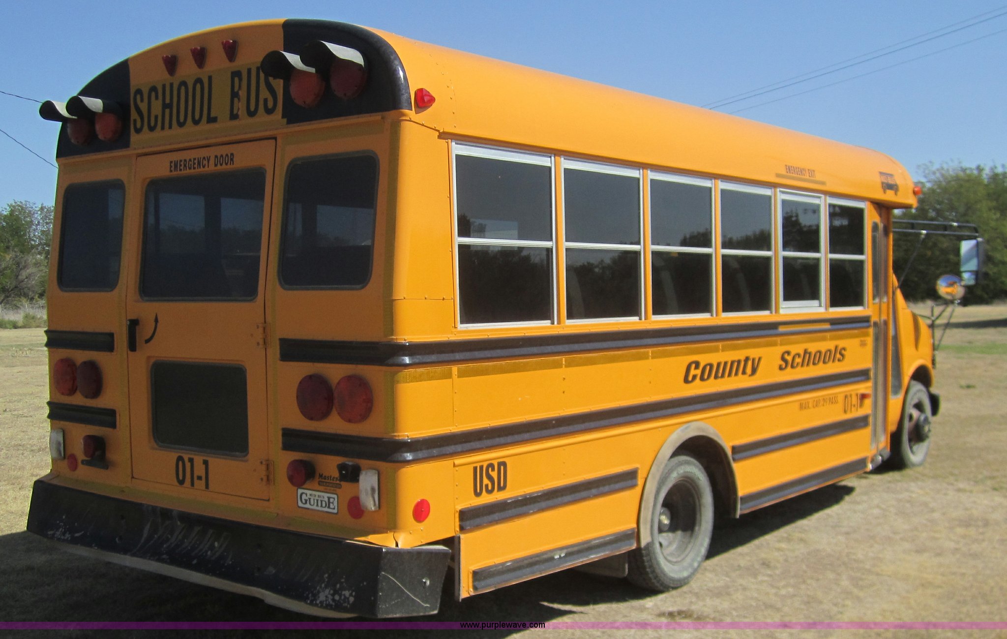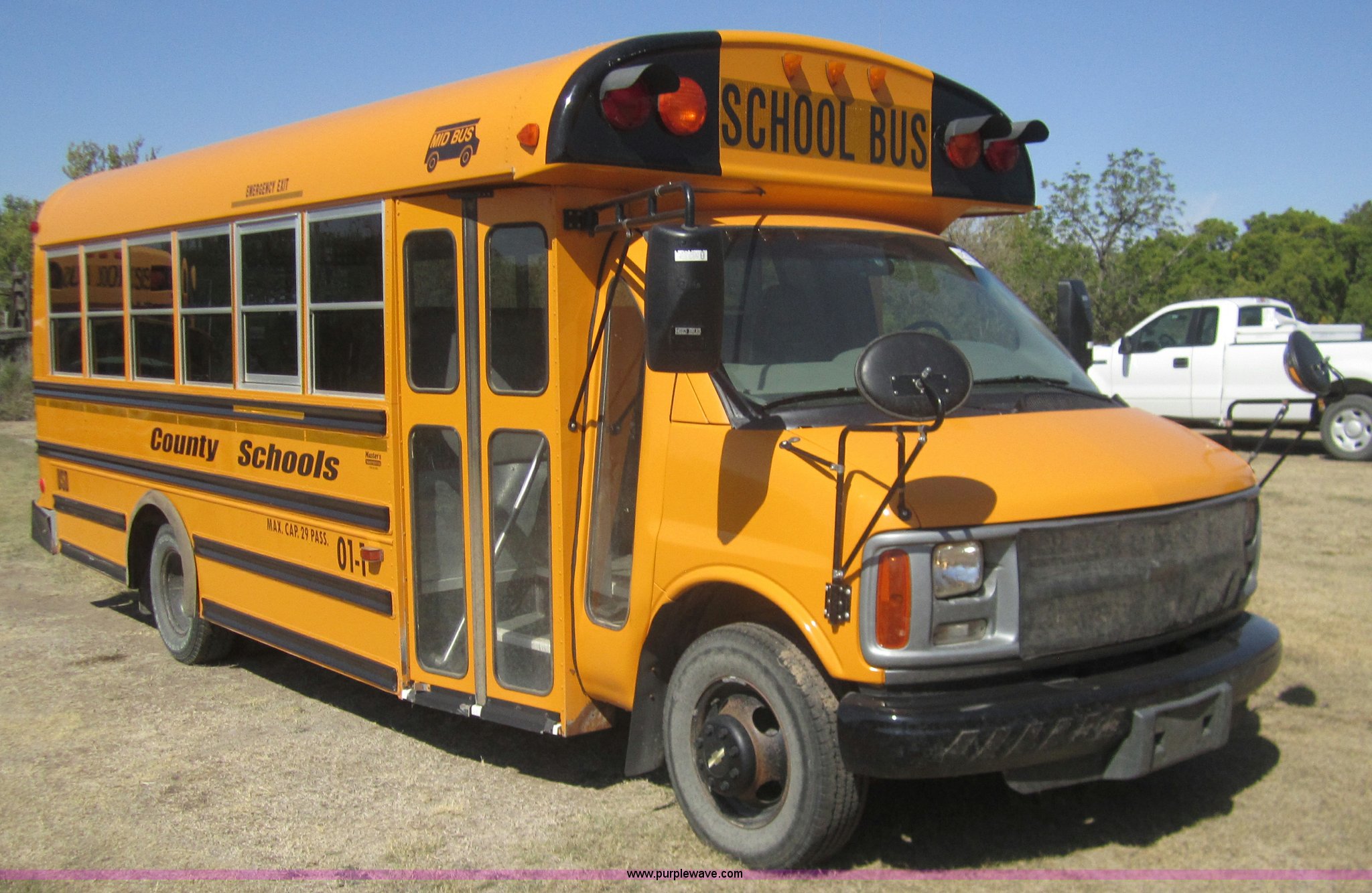 Purple Wave is selling a used Bus in Kansas. This item is a 2001 Chevrolet Express G3500 school bus with the following: 119,915 miles on odometer, 29 passenger, 6.5L V8 diesel engine, Automatic transmission, AC and heat, AM/FM/CD, Manual windows and locks, LT225/75R16 tires, Passed highway patrol inspection August 2011, Unit 01-1