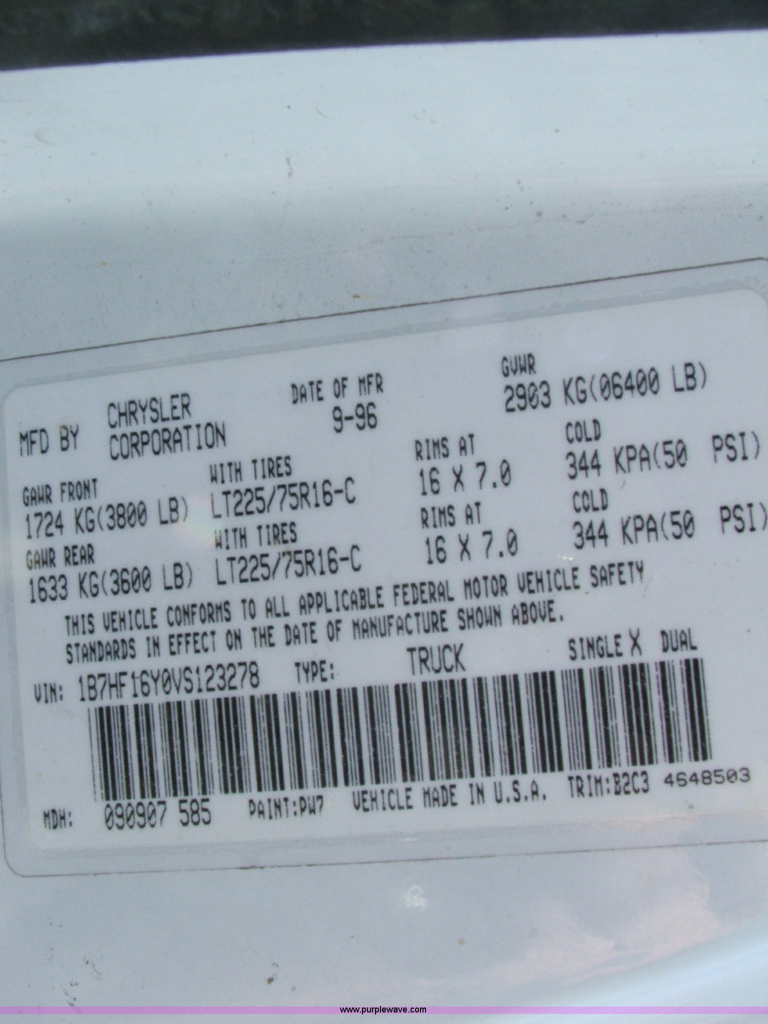 • B5016 image for item B5016 1997 Dodge Ram 1500 pickup truck