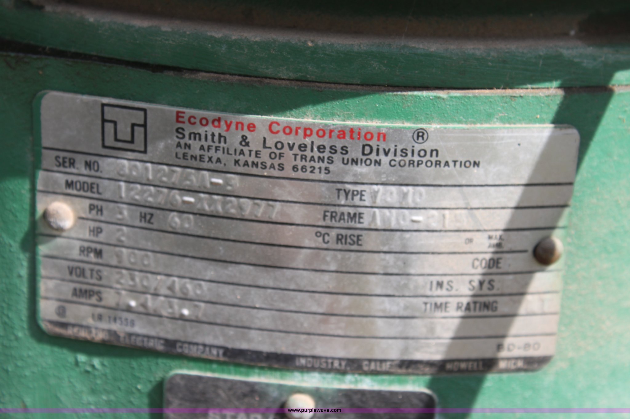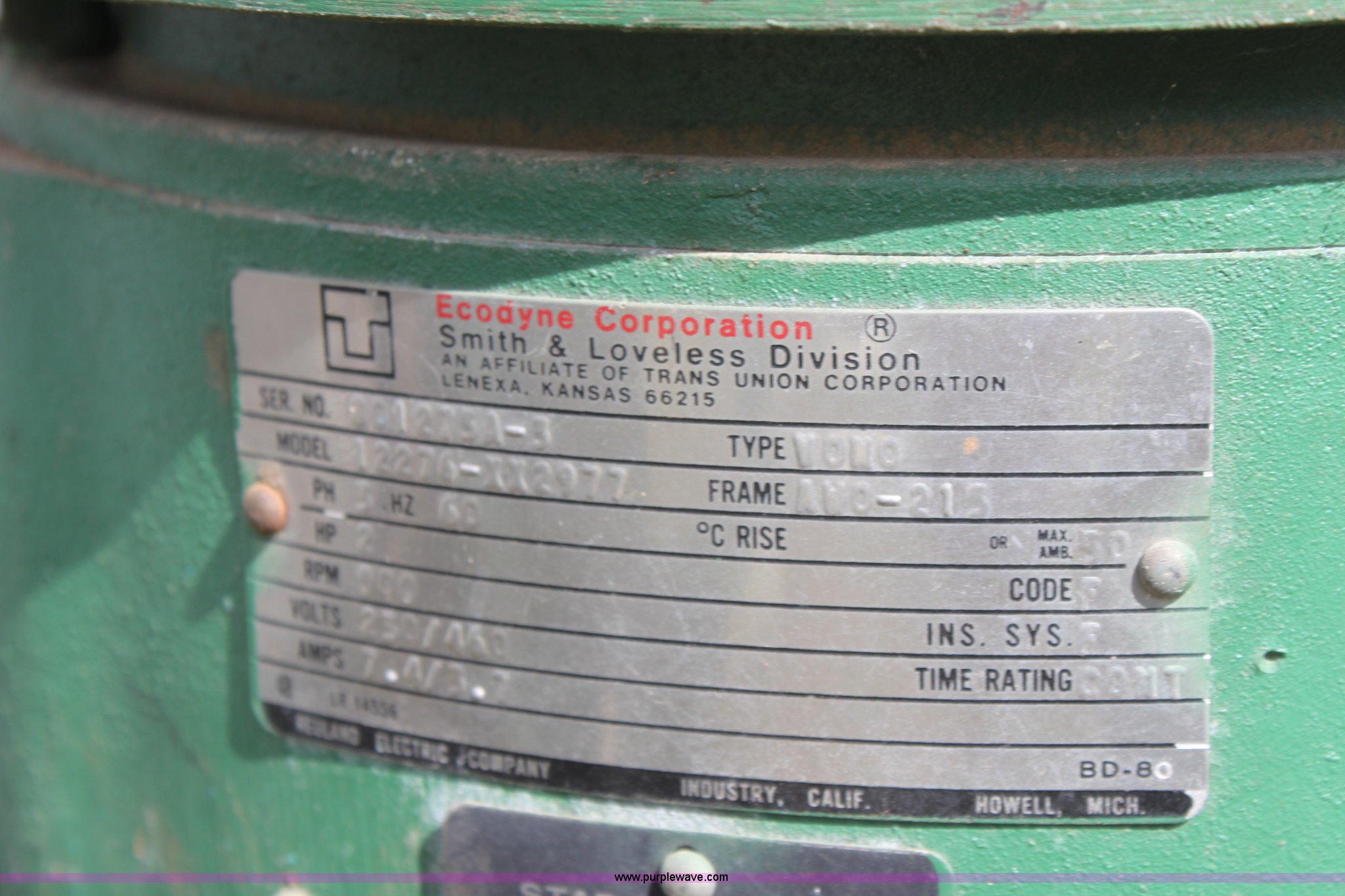 Purple Wave is selling a used Tools in Kansas. This item is a Smith & Loveless lift station with the following: Model 16, 2 HP three phase electric motors, 1,253 hours on motor 1, 1,744 hours on motor 2, 120v outlets, Parts only