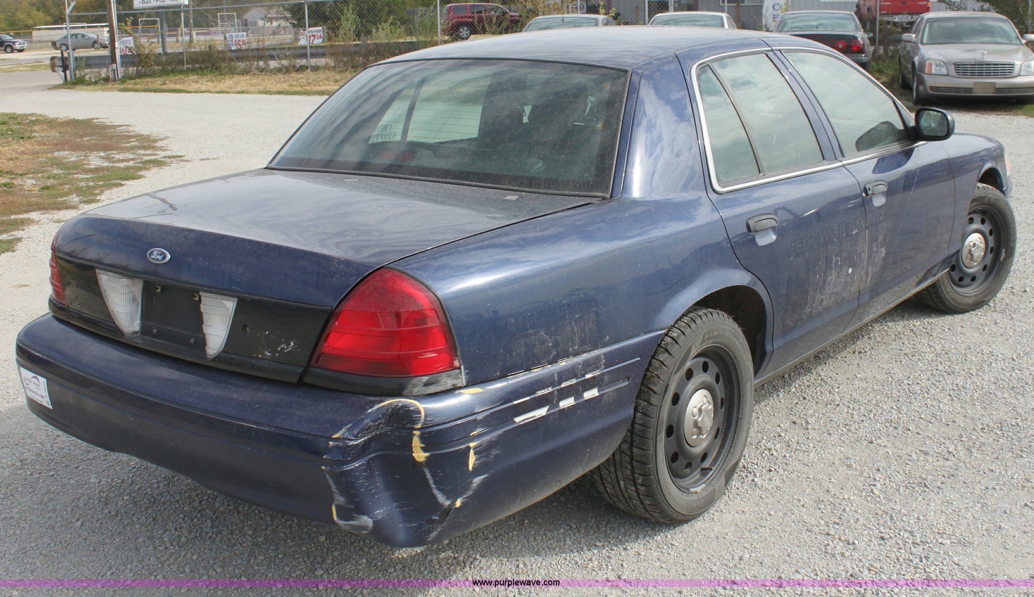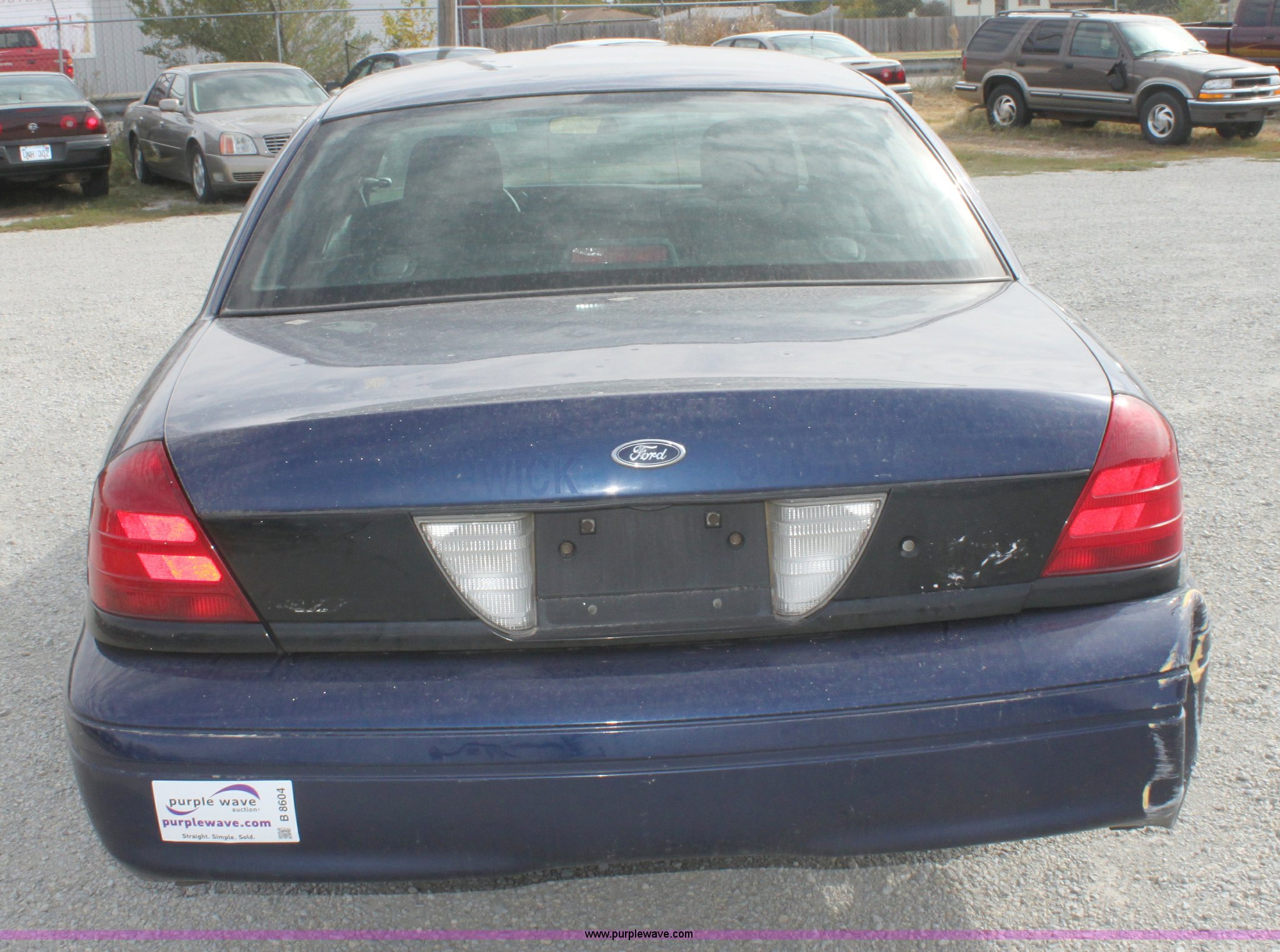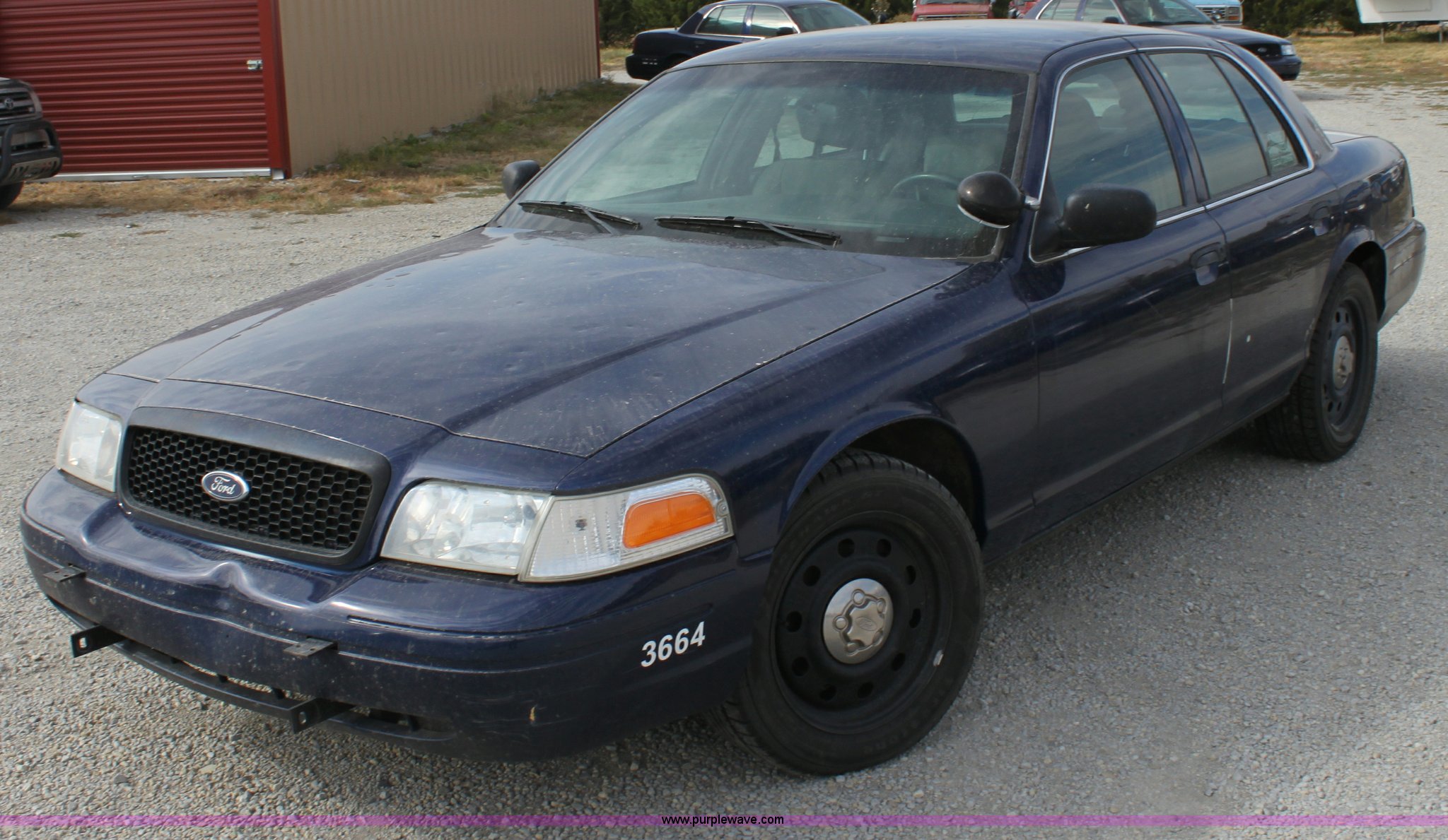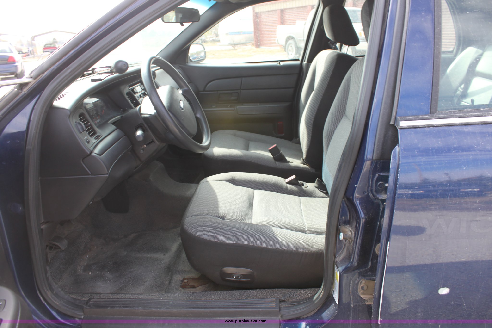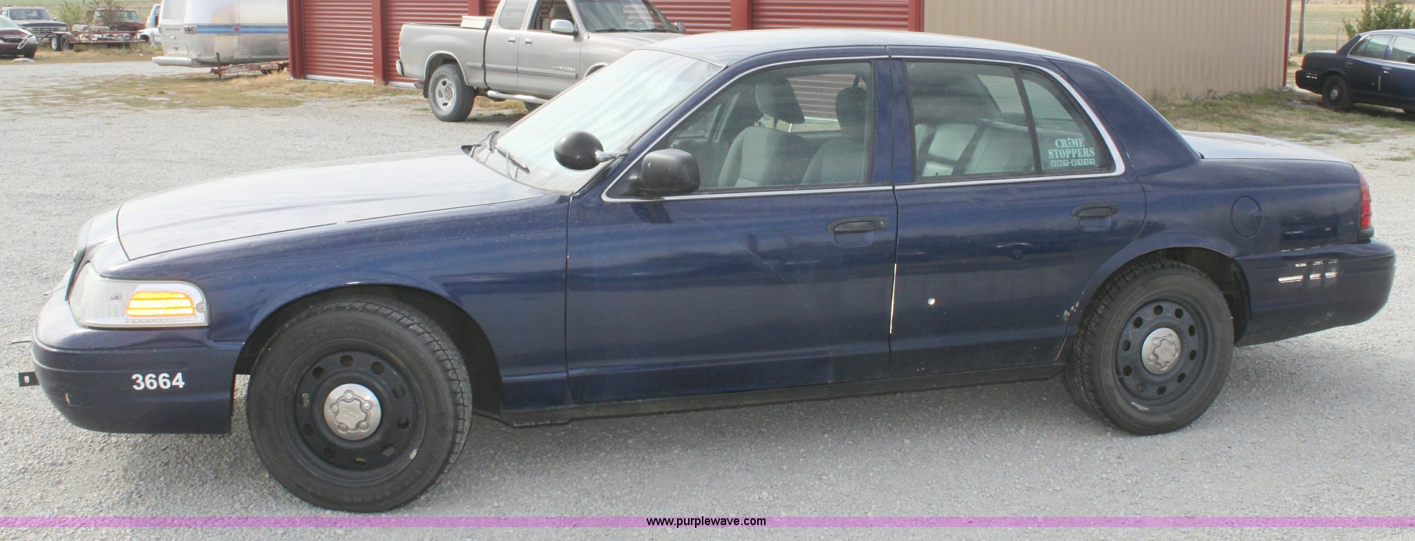 Purple Wave is selling a used Passenger Vehicle in Kansas. This item is a 2006 Ford Crown Victoria Police Interceptor with the following: 122,698 miles on odometer, 4.6L V8 EFI engine, Automatic transmission, AC and heat, Tilt, Cruise, AM/FM/Cassette, Power windows, locks, mirrors, and seats, Cloth interior, 235/55R17 tires, Interior cosmetic damage, Hail damage, Front and rear bumper dented, Equip# 3664