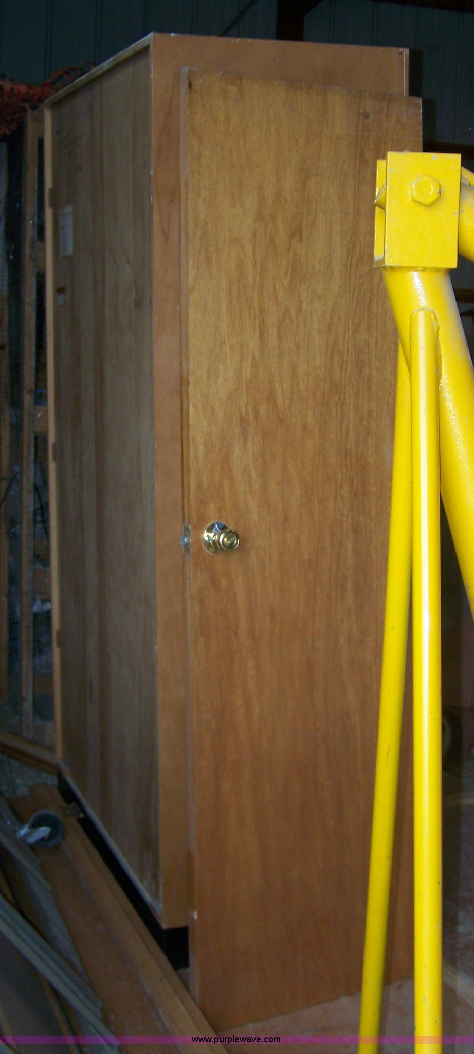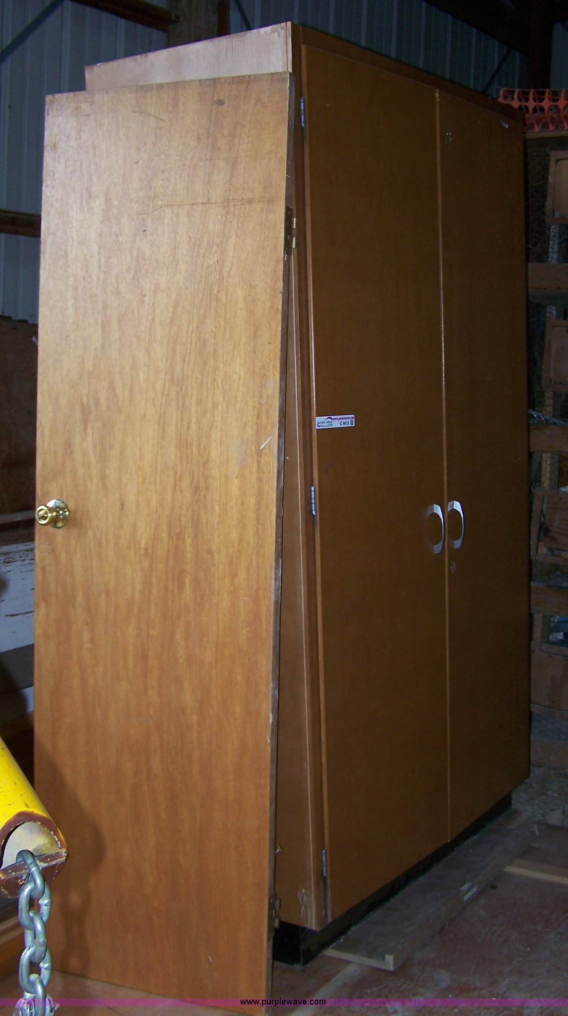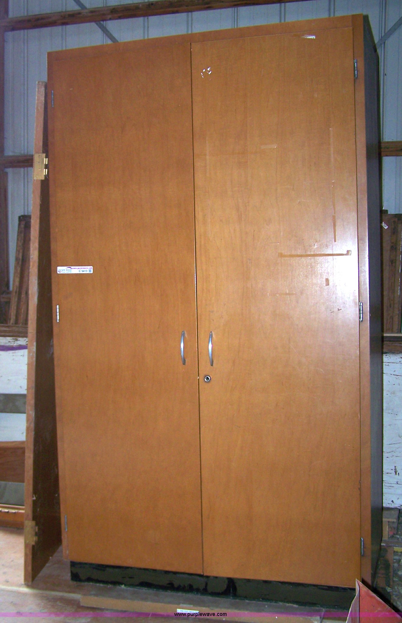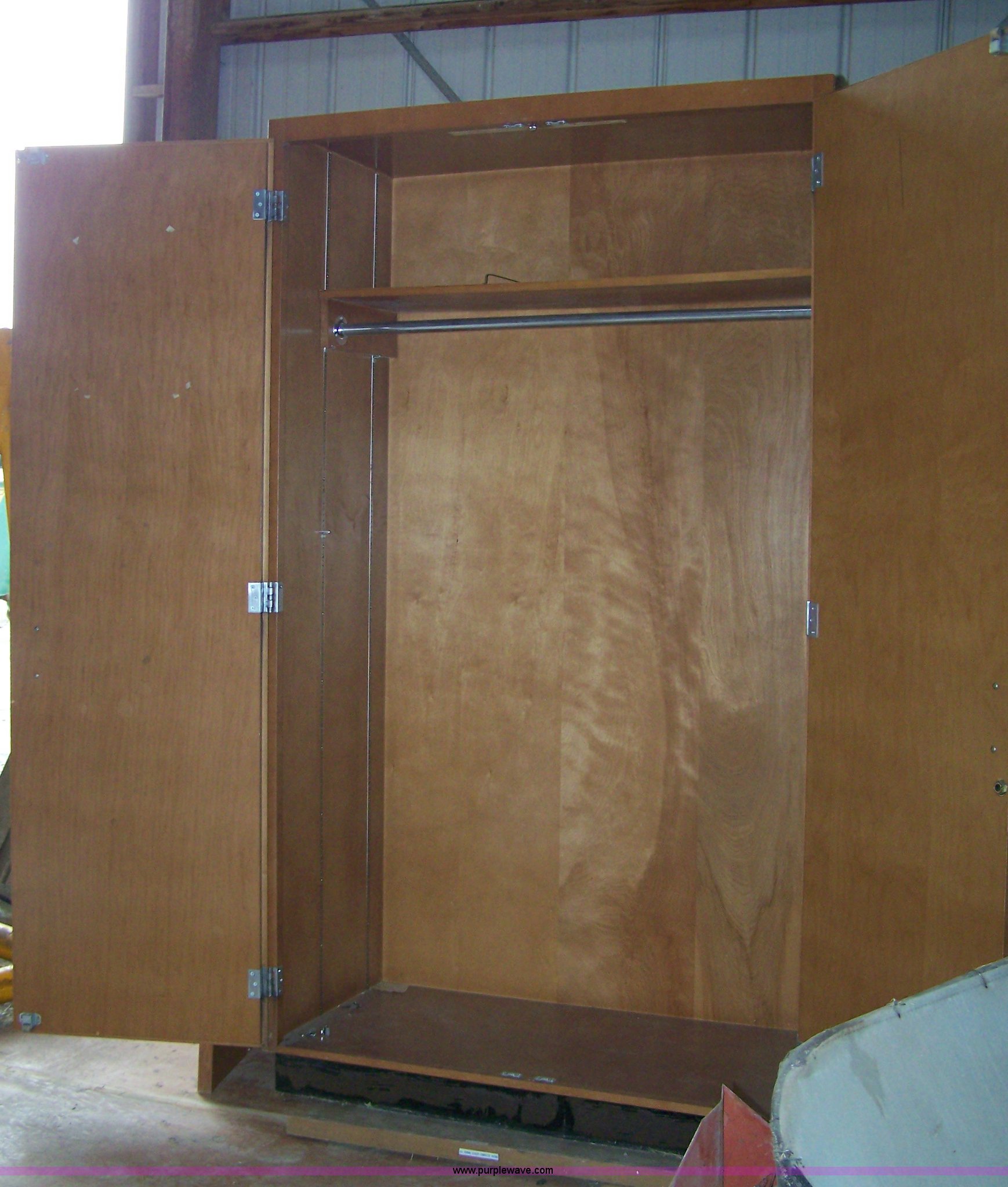 Purple Wave is selling a used Furniture in Kansas. This item is a Wood wardrobe with the following: 7'H x 5'W, Door and frame included