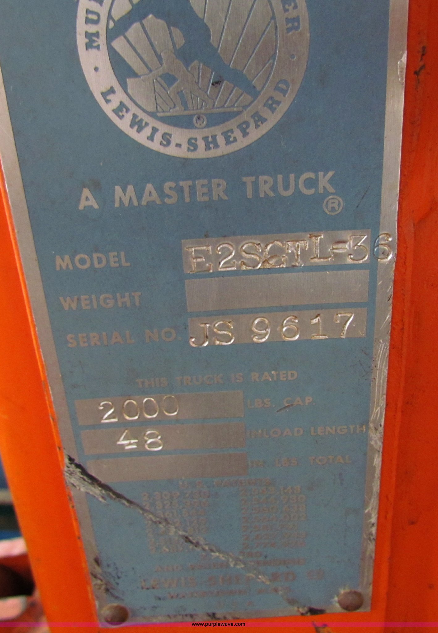 Take a look at this used Lewis-Sheppard electric forklift being sold on November 8th, 2011 in the SOLD! November 8 Government Internet Auction. Take a look at all of the item information below or take a look at similar auctions for Warehouse Forklift.