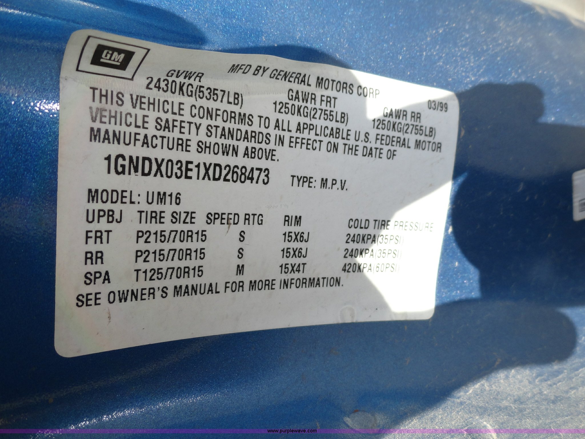 Purple Wave is selling a used Passenger Vehicle in Kansas. This item is a 1999 Chevrolet Venture LS mini van with the following: 148,628 miles on odometer, 3.4L V6 SFI engine, Automatic transmission, AC and heat, Tilt, Cruise, AM/FM, Power windows, locks, and mirrors, Cloth seats, Dual control unit, 215/70R15 tires, Rust