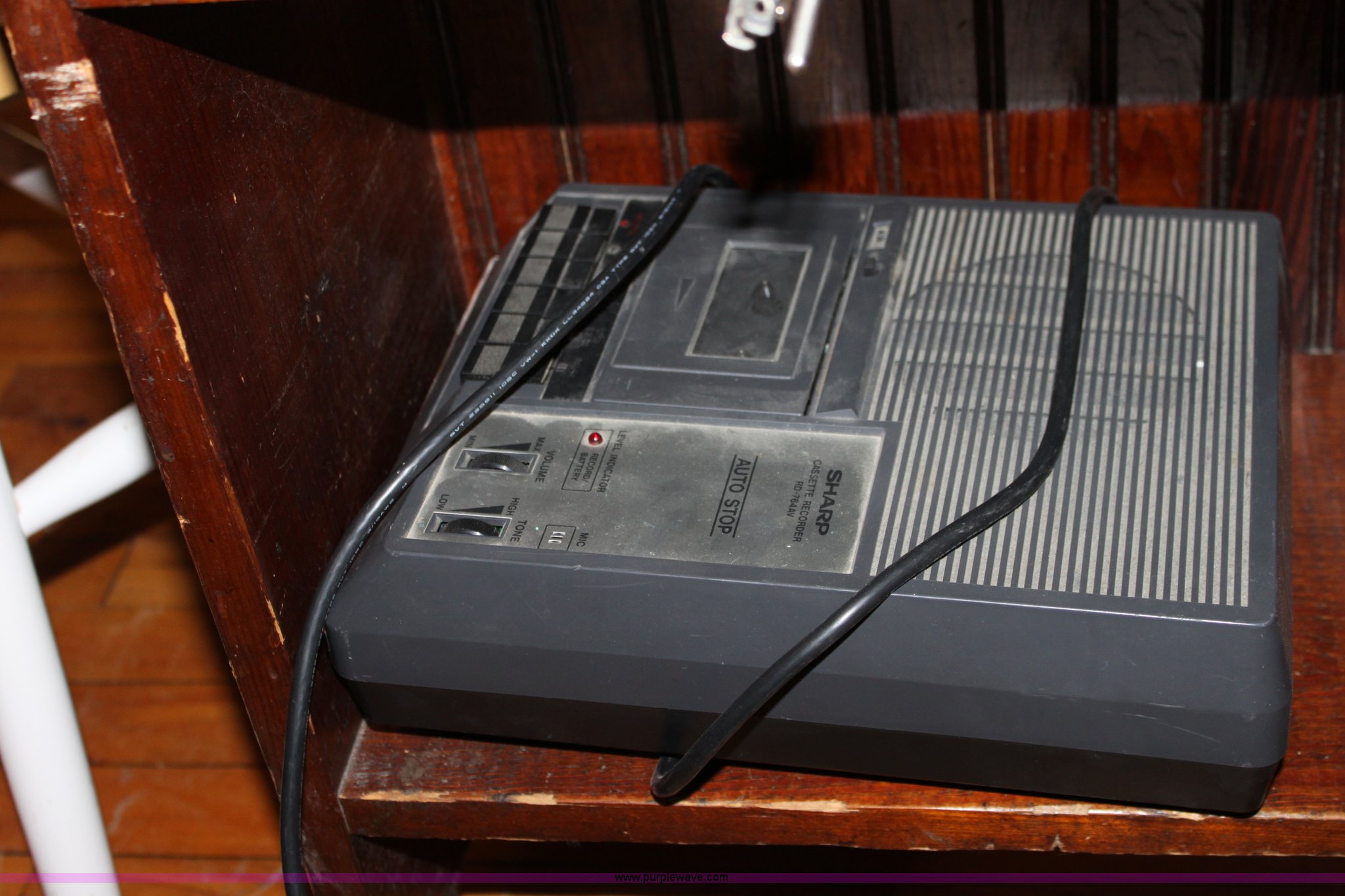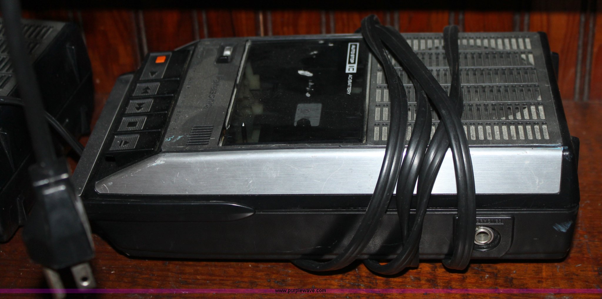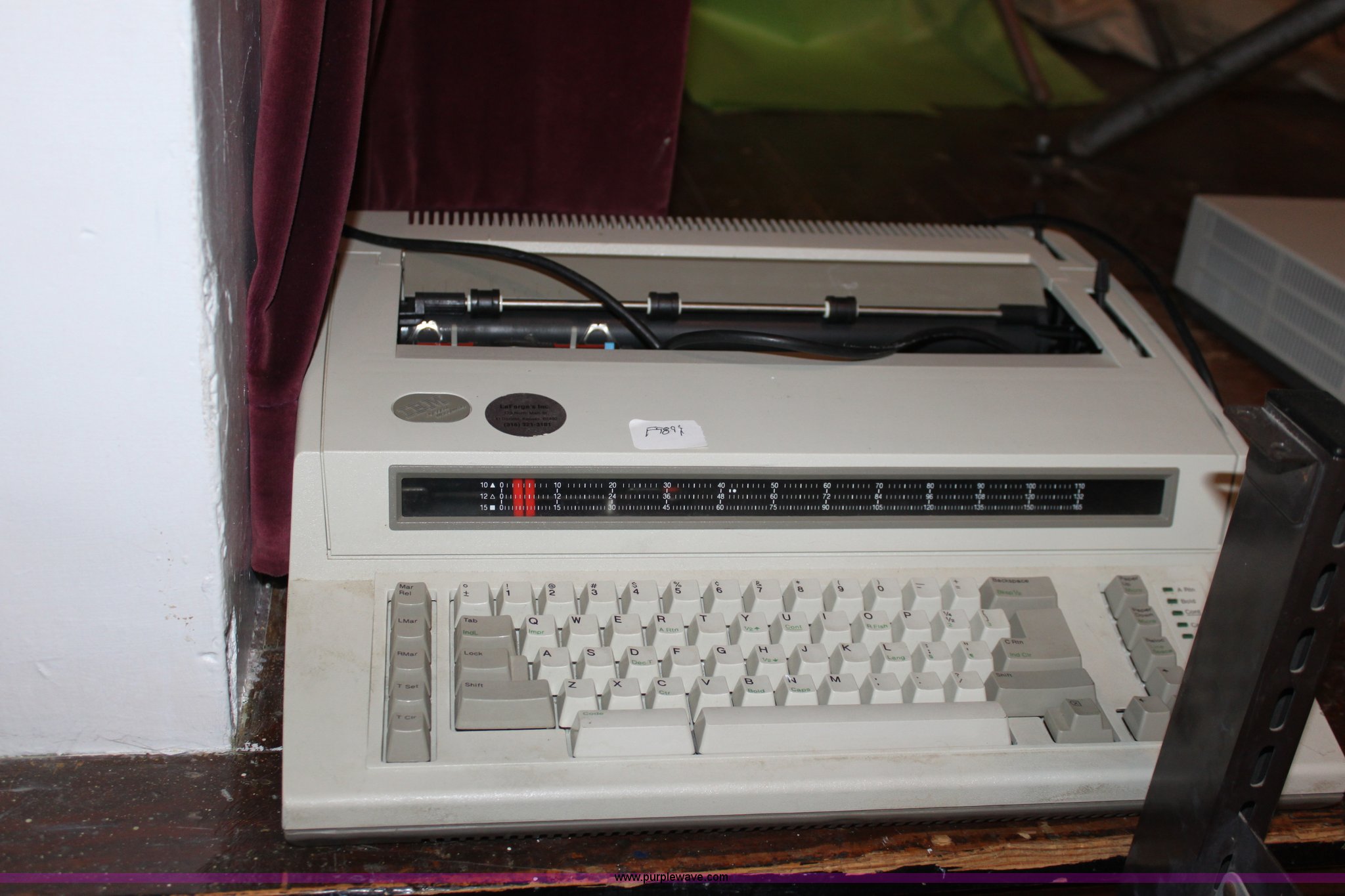 Purple Wave is selling a used Furniture in Kansas. This item is a Assorted office furniture with the following: (2) tables, (4) computer desks, (4) side tables, (2) computer desks with keyboard trays, Round table, (2) wood and metal desks, (6) cassette players, Box of VHS tapes, (8) Franklin Wordmaster electronic thesaurus, IBM typewriter, And more