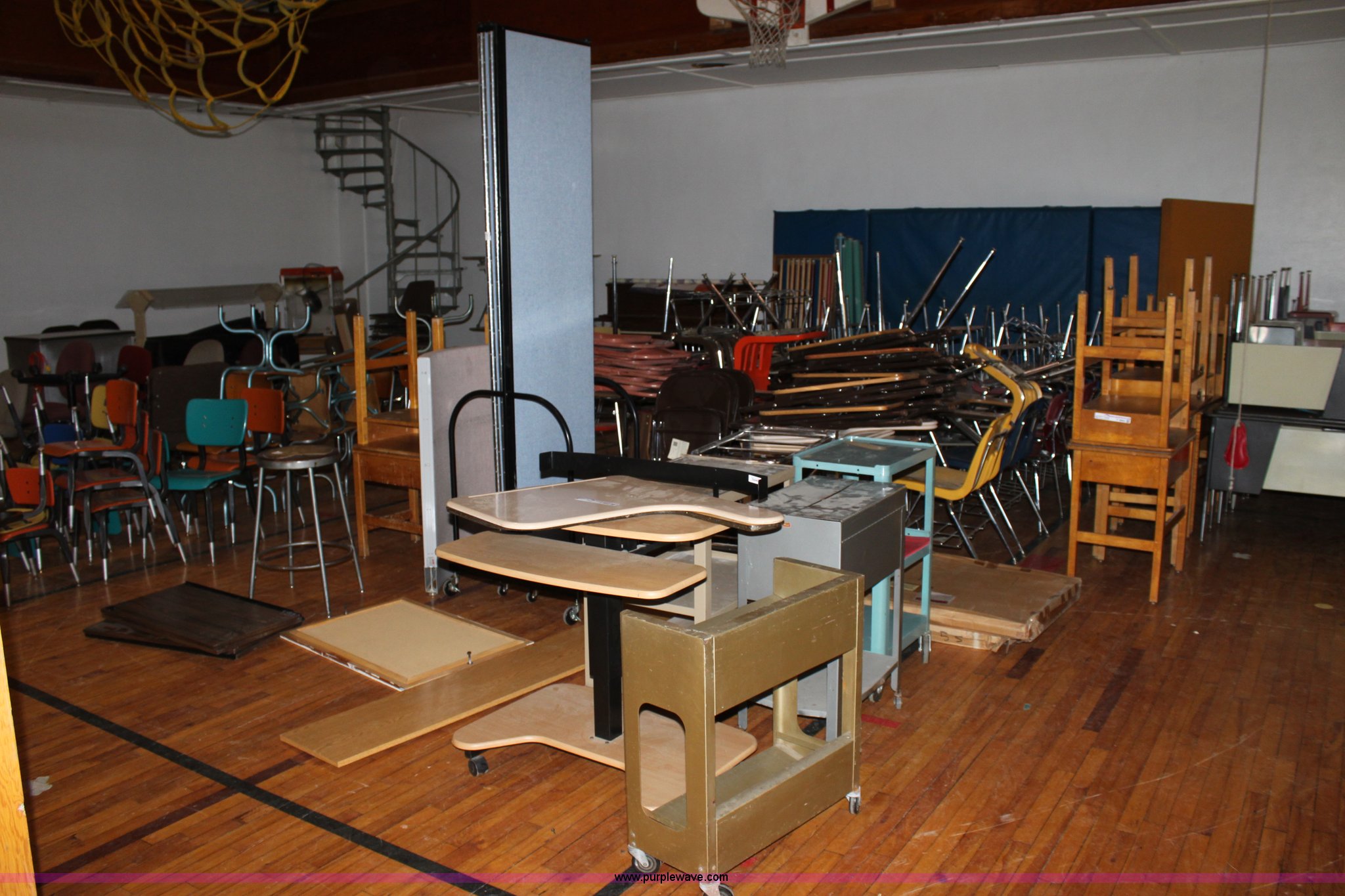 Purple Wave is selling a used Furniture in Kansas. This item is a Assorted classroom items with the following: (44) student desks, (9) folding student desks, (2) wood student desks, (4) rolling carts, Partitions, And more