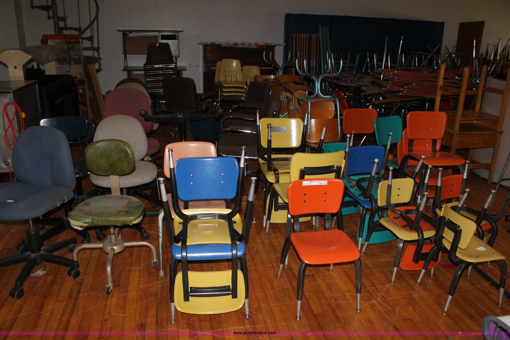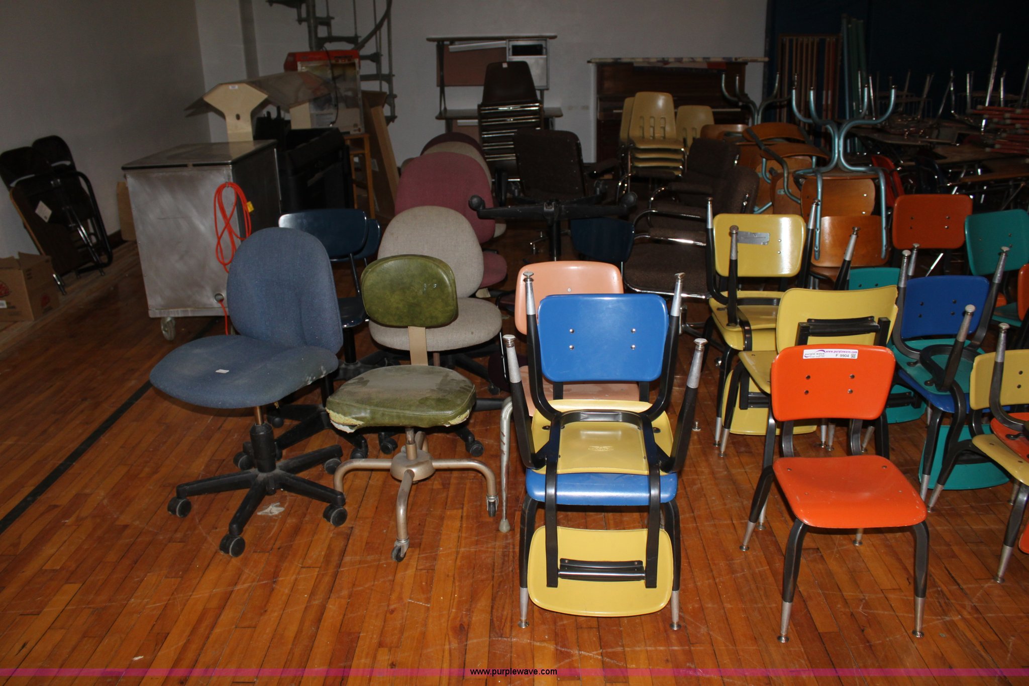 Purple Wave is selling a used Furniture in Kansas. This item is a Assorted chairs with the following: (28) student chairs, (15) plastic chairs, (16) desk chairs