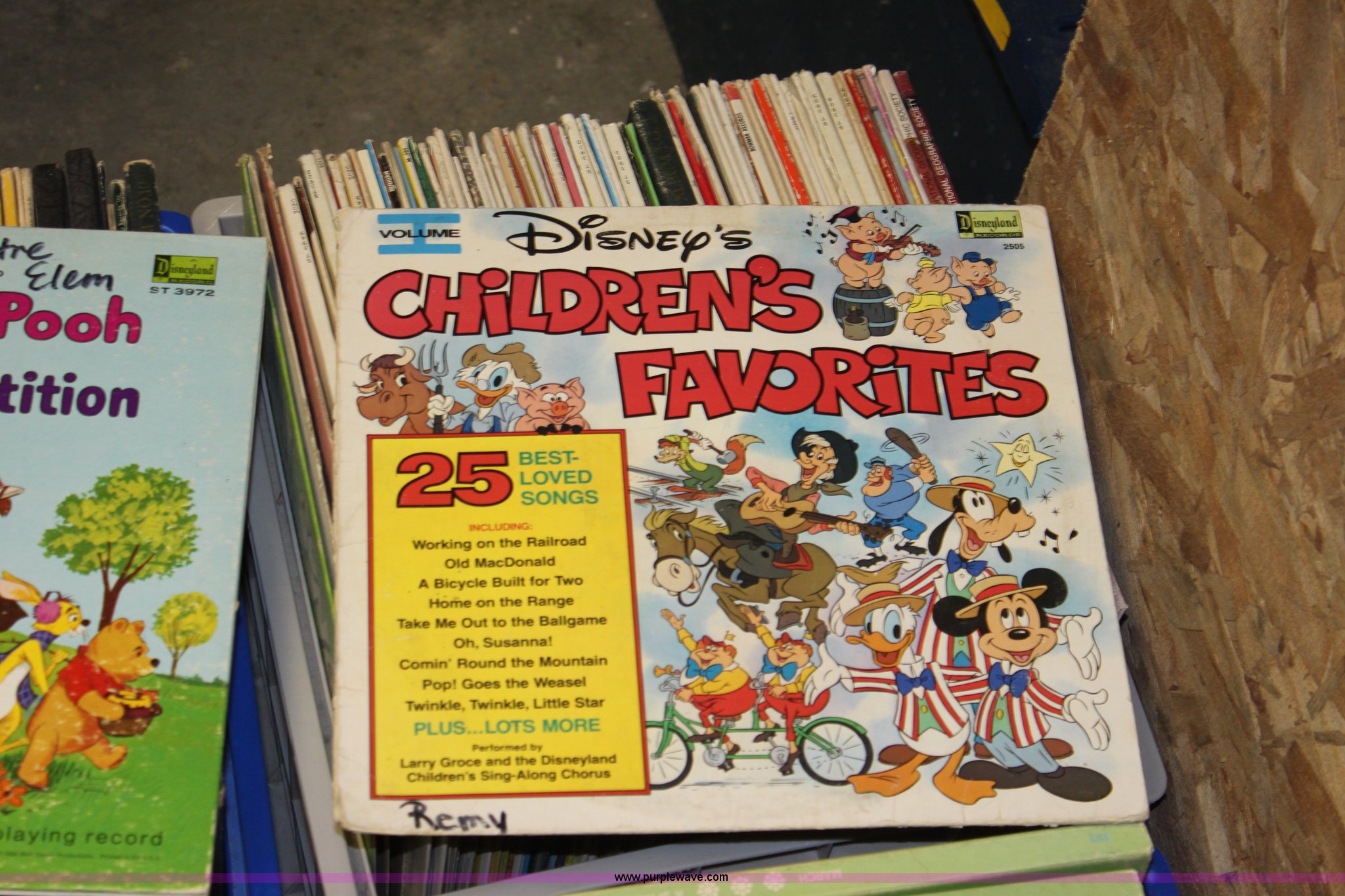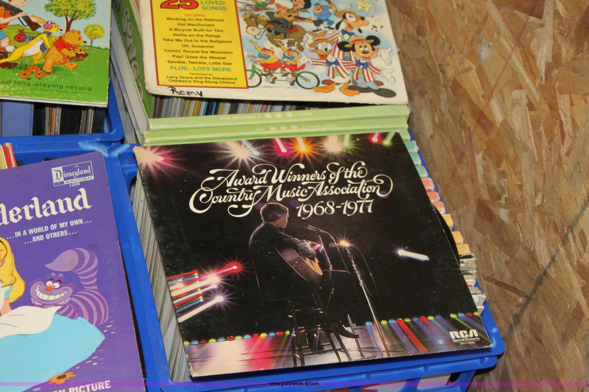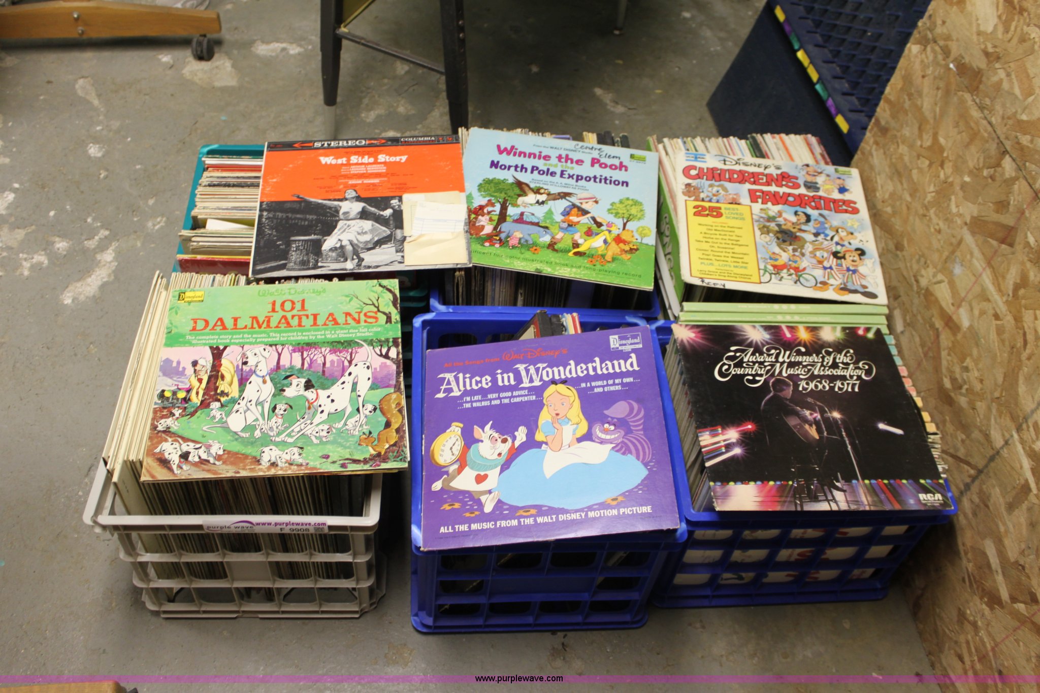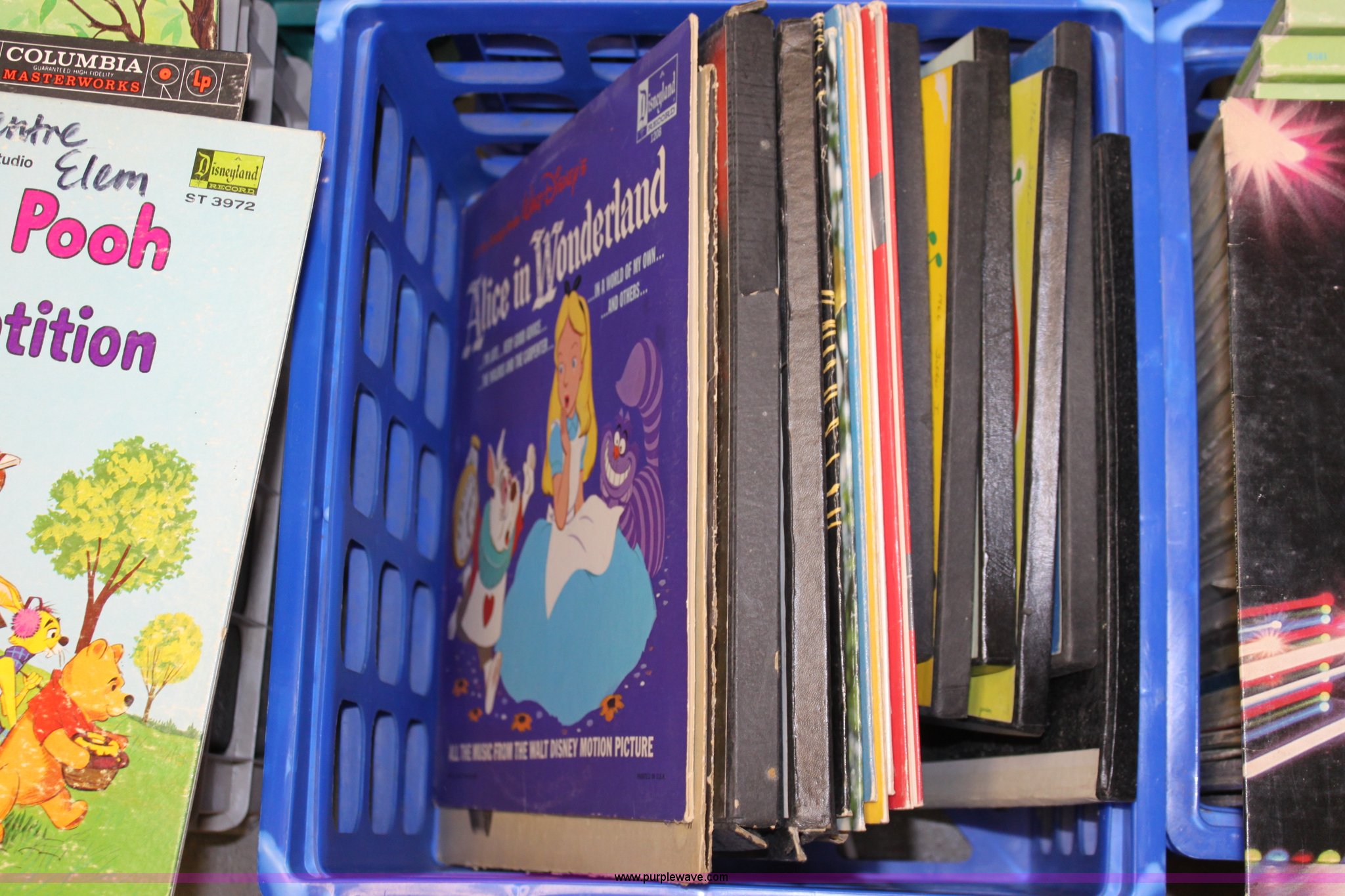 Purple Wave is selling a used Electronics in Kansas. This item is a Assorted records with the following: (6) crates total, West Side Story, Rhyme Time, 101 Dalmatians, Alice in Wonderland, and more