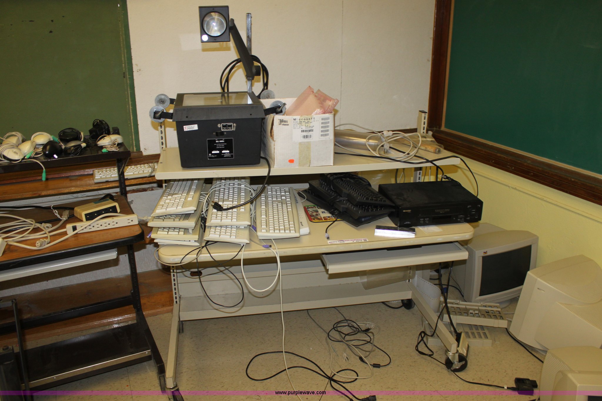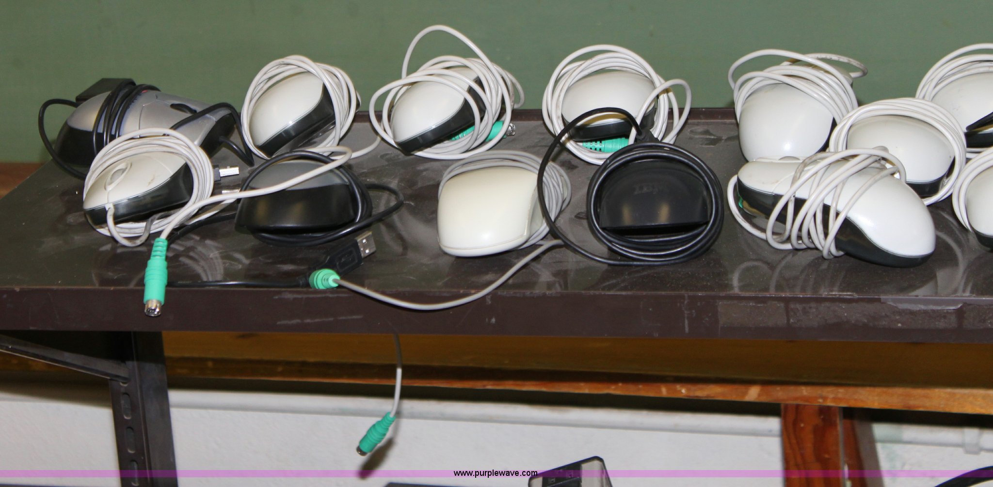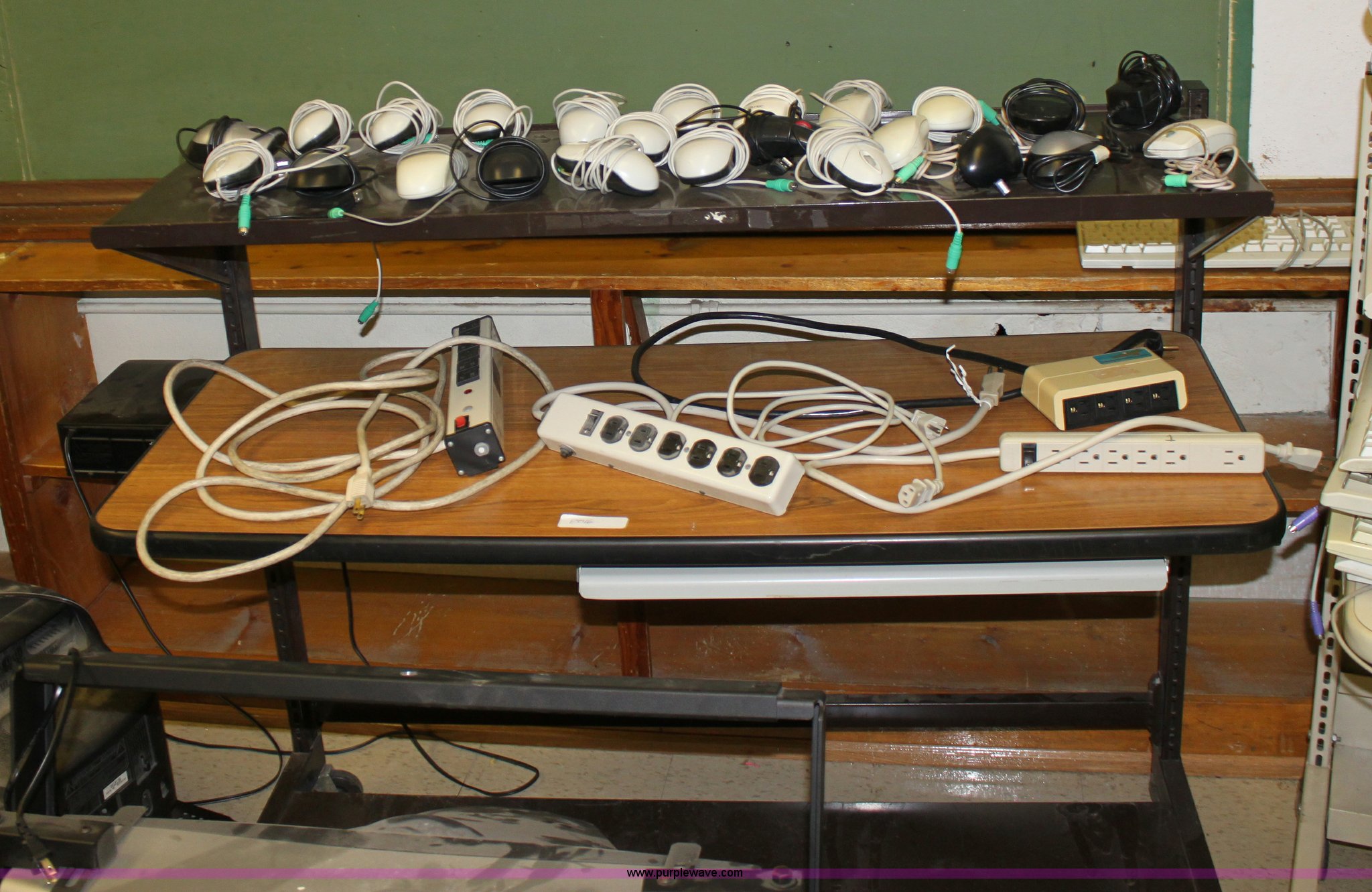 Assorted computer accessories. (18) keyboards, (24) mouse's, (4) surge protectors, (2) media carts on casters, Overhead projector, VHS player, And more. USD 397. Lost Springs, KS 66859