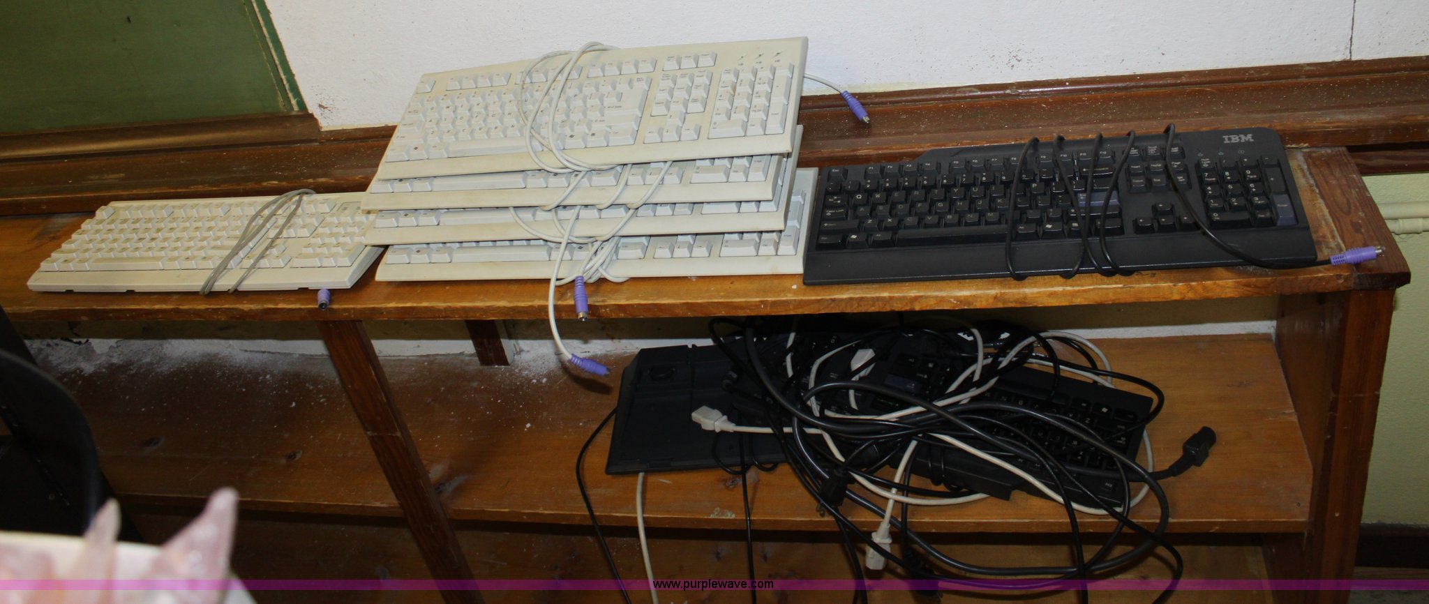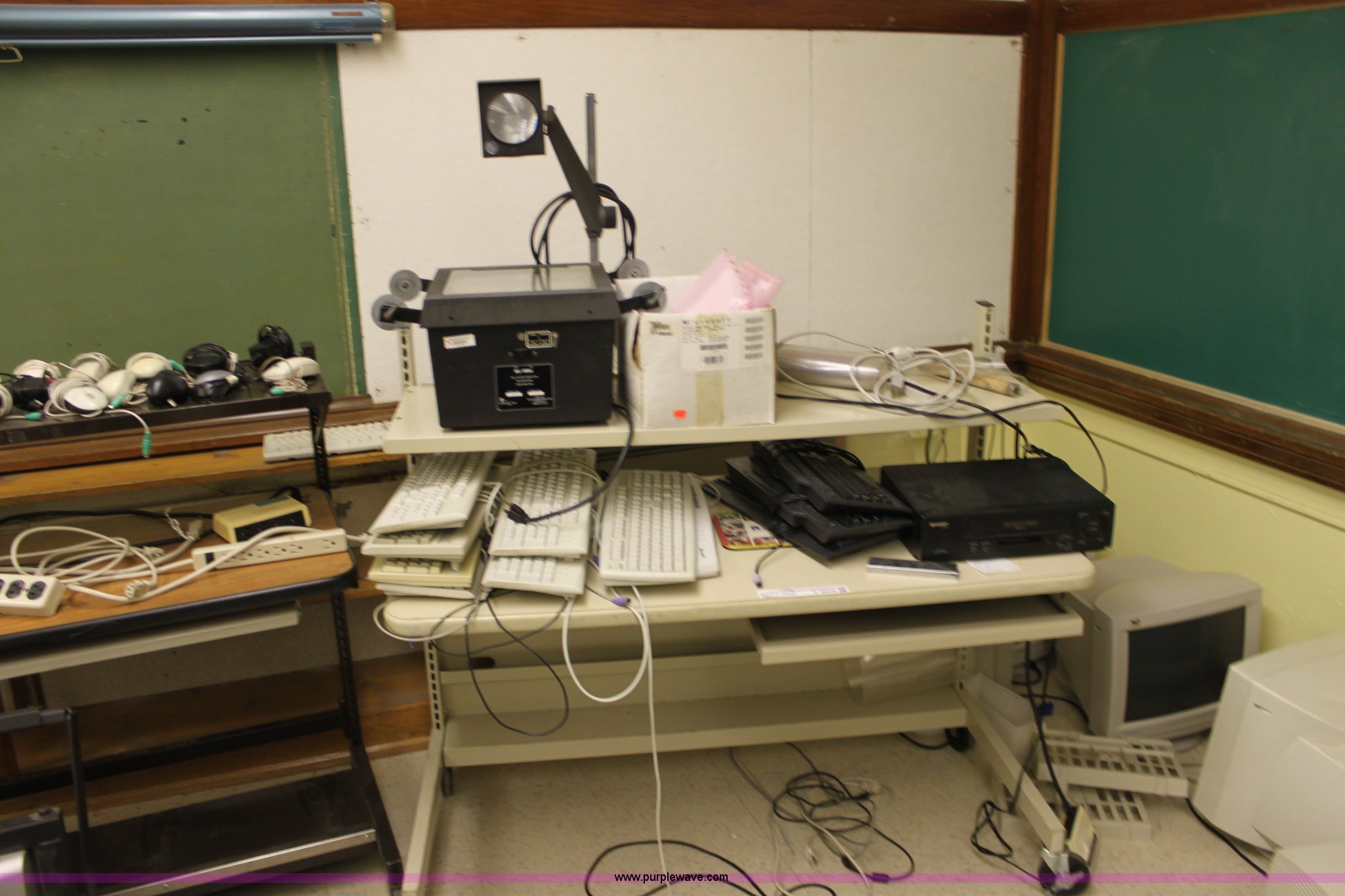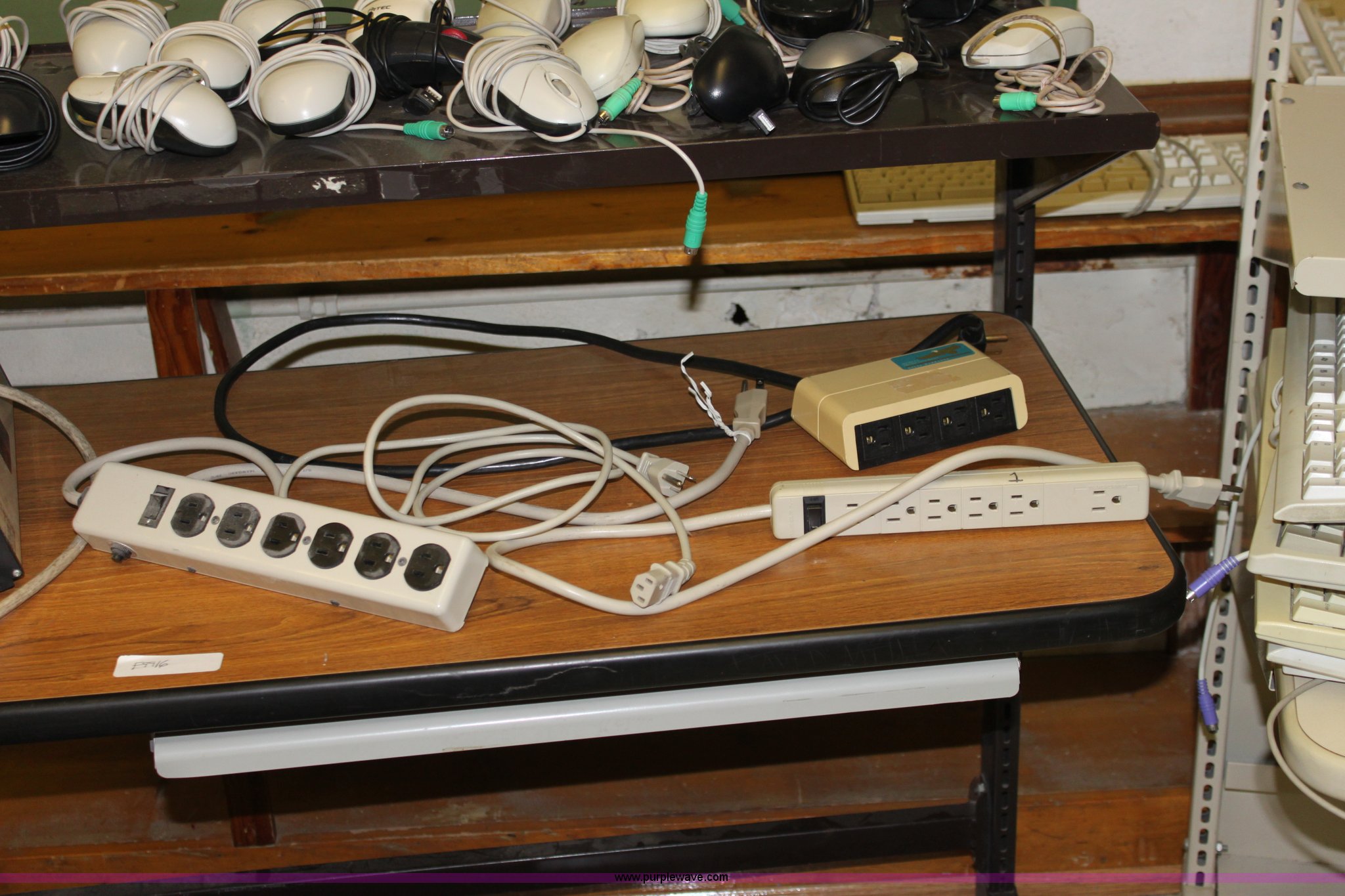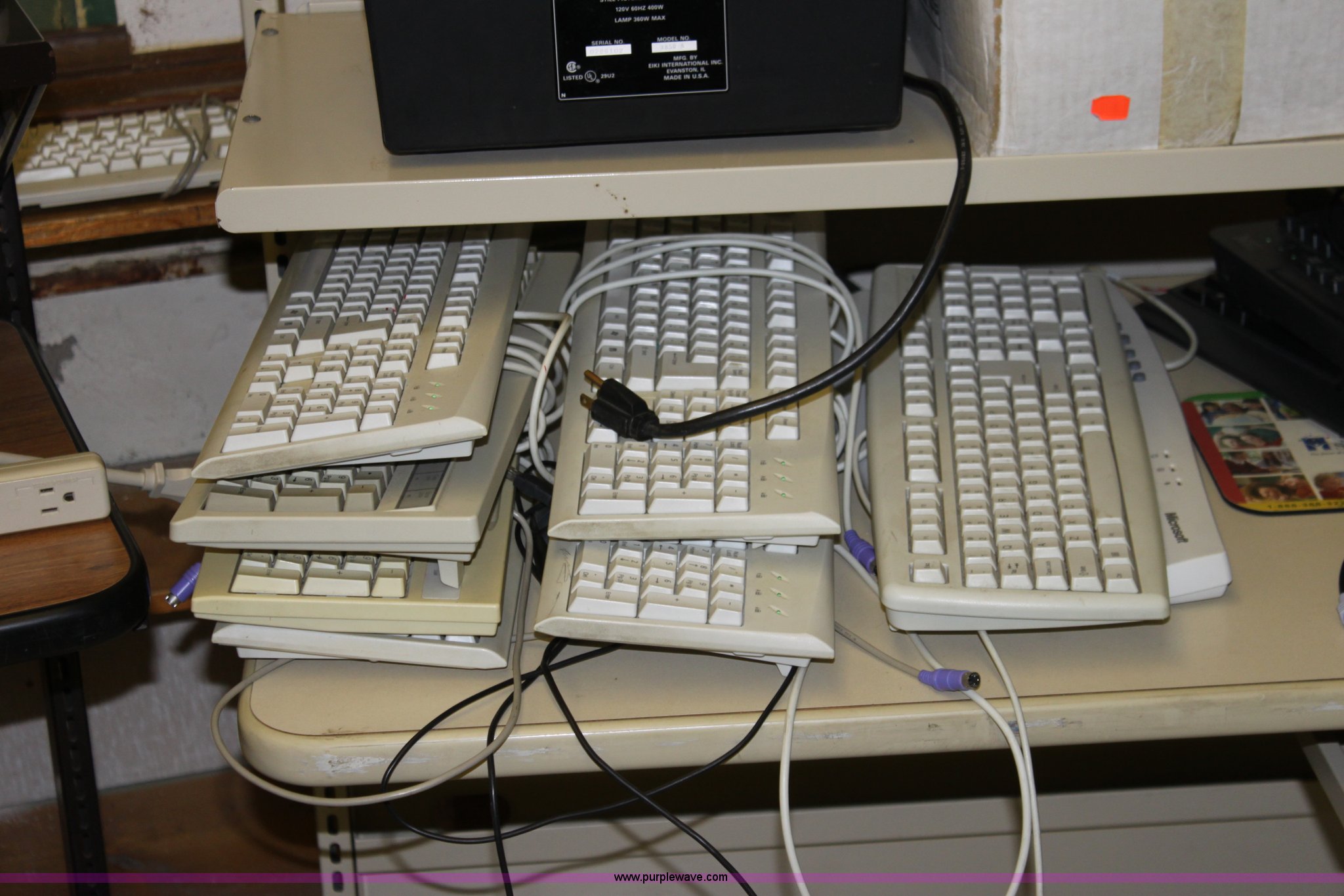 Assorted computer accessories. (18) keyboards, (24) mouse's, (4) surge protectors, (2) media carts on casters, Overhead projector, VHS player, And more. USD 397. Lost Springs, KS 66859