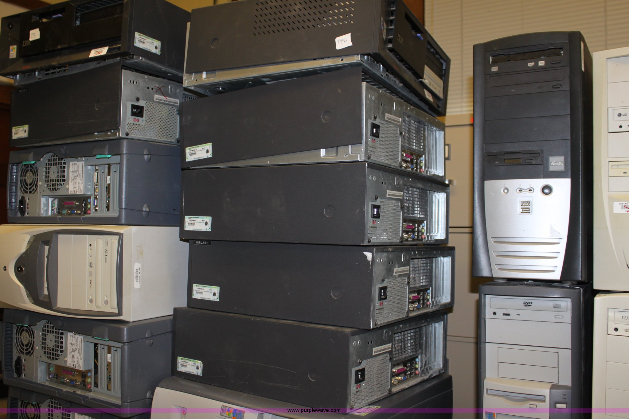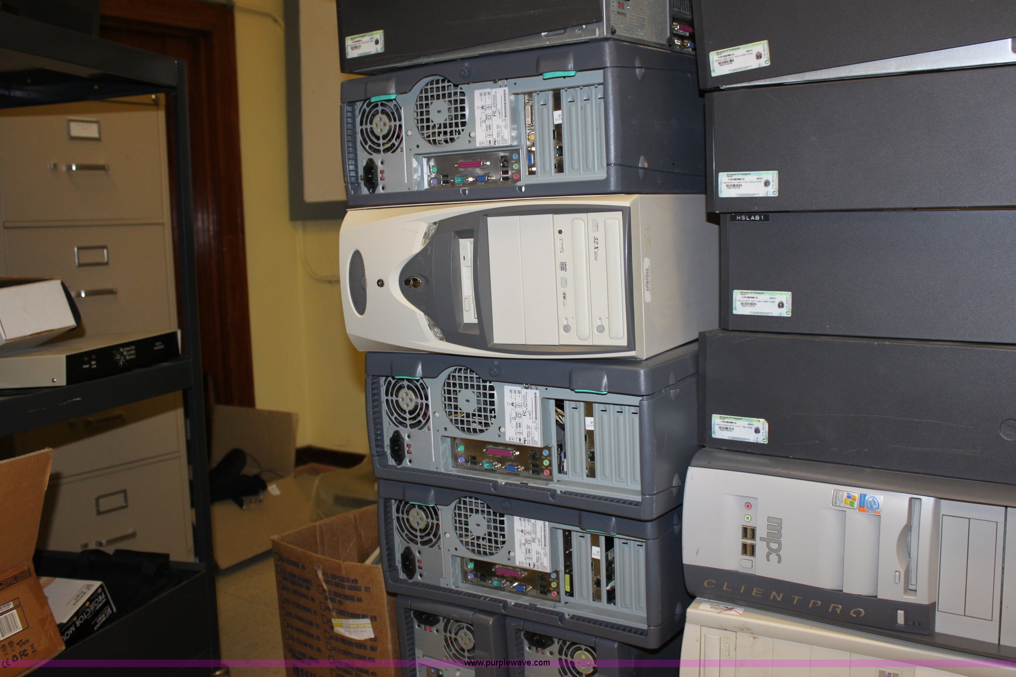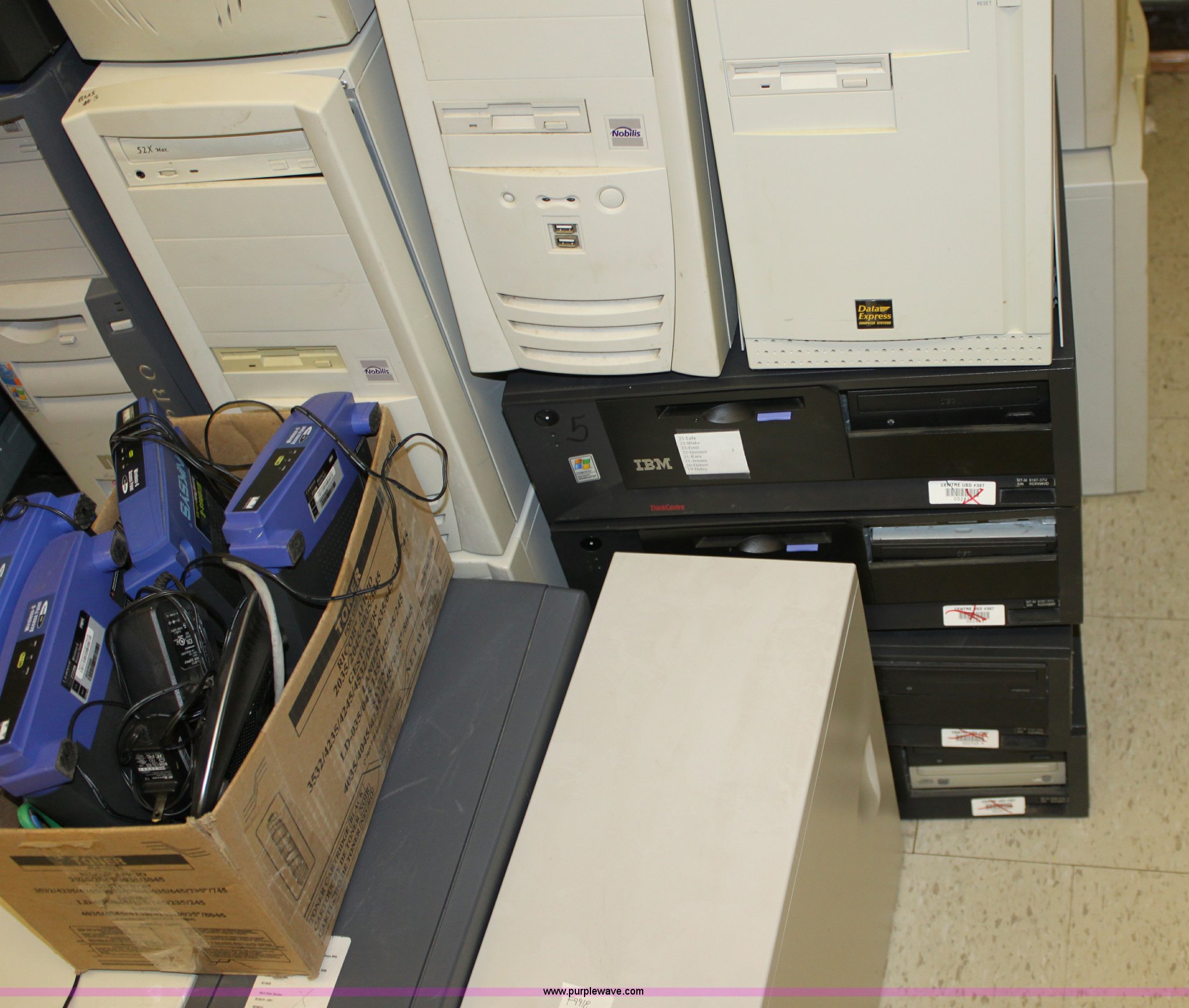 Purple Wave is selling a used Electronics in Kansas. This item is a Assorted computers and electronics with the following: (41) assorted computer towers, IBM, Dell, Data Express, and more, Missing HDD, Some maybe missing RAM, Most have Windows product keys, (4) Linksys wireless G access points, Keyboards, Speakers, (4) printers, (3) Pentax 35 mm camera bodies, Typewriter, And more