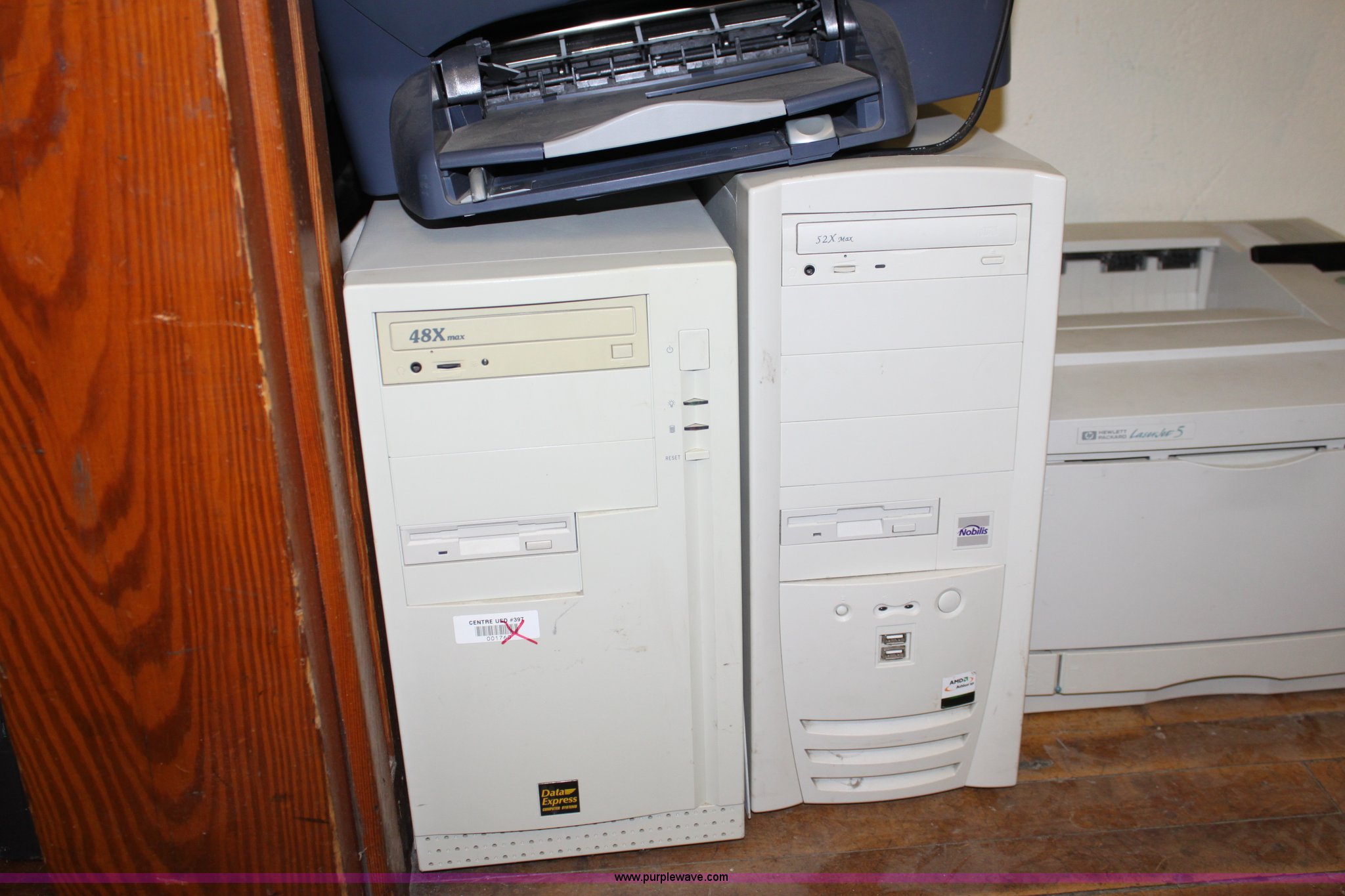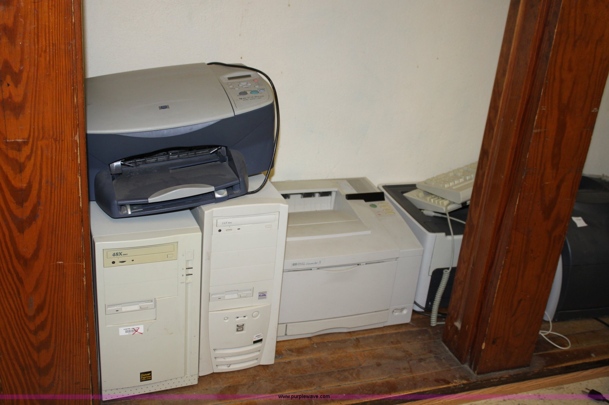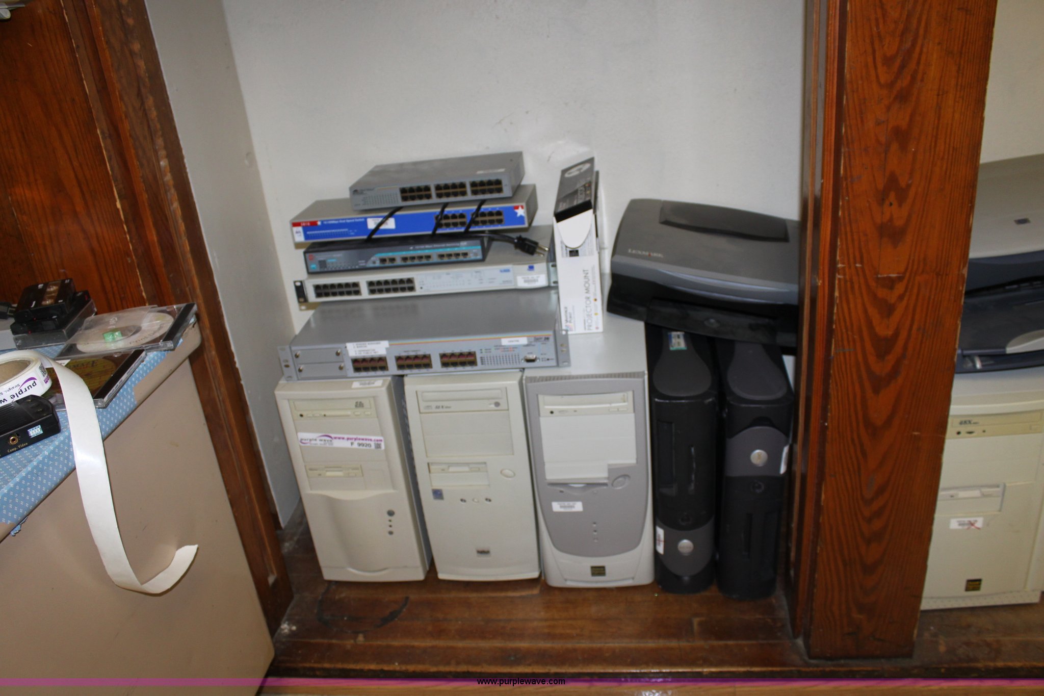 Assorted computers and electronics. (7) computer towers Dell, Data Express, and Dakteh, Missing HDD, (5) 10/100 network switches, (3) printers, Projector mount. USD 397. Lost Springs, KS 66859