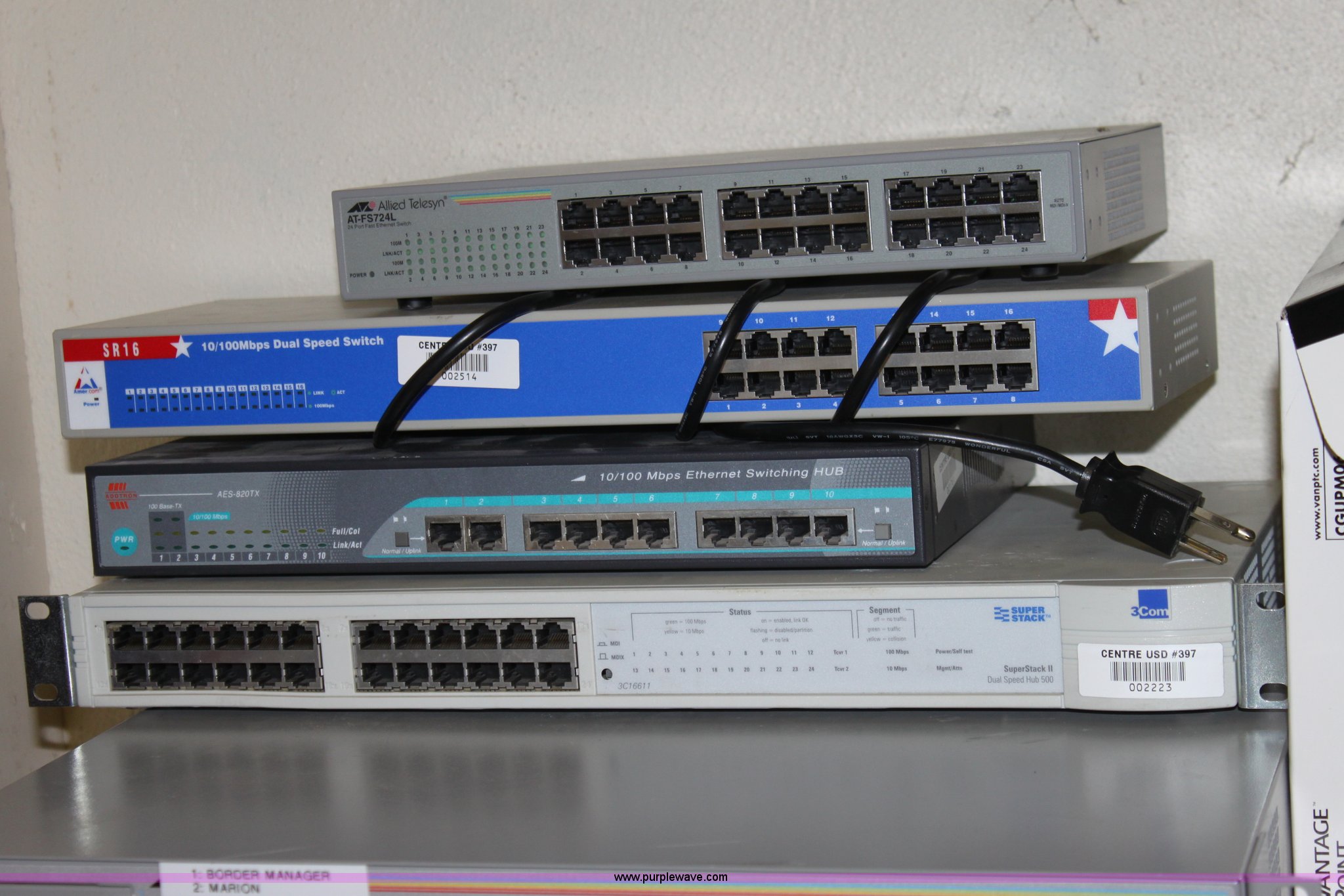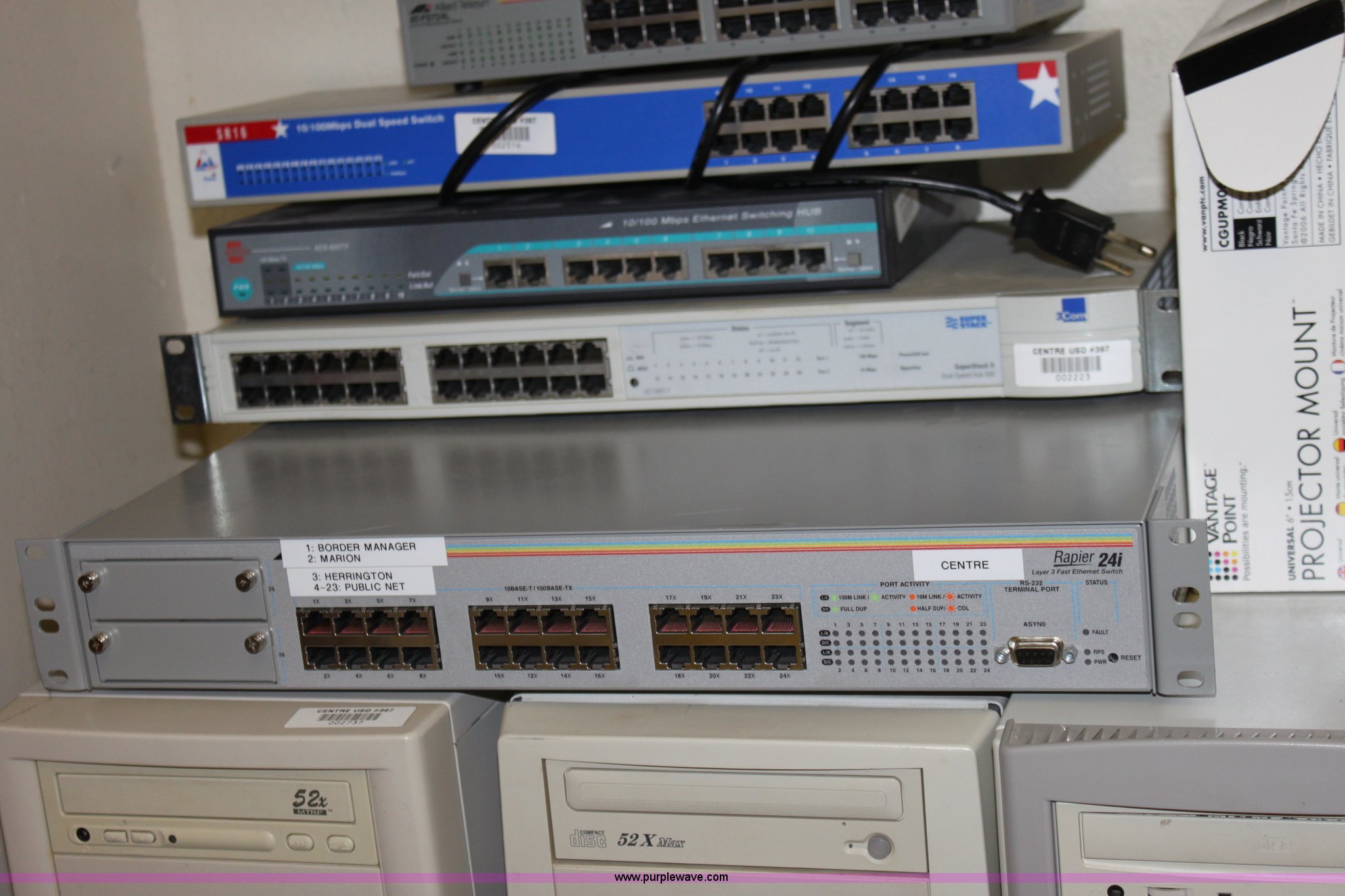 Purple Wave is selling a used Computers in Kansas. This item is a Assorted computers and electronics with the following: (7) computer towers, Dell, Data Express, and Dakteh, Missing HDD, (5) 10/100 network switches, (3) printers, Projector mount