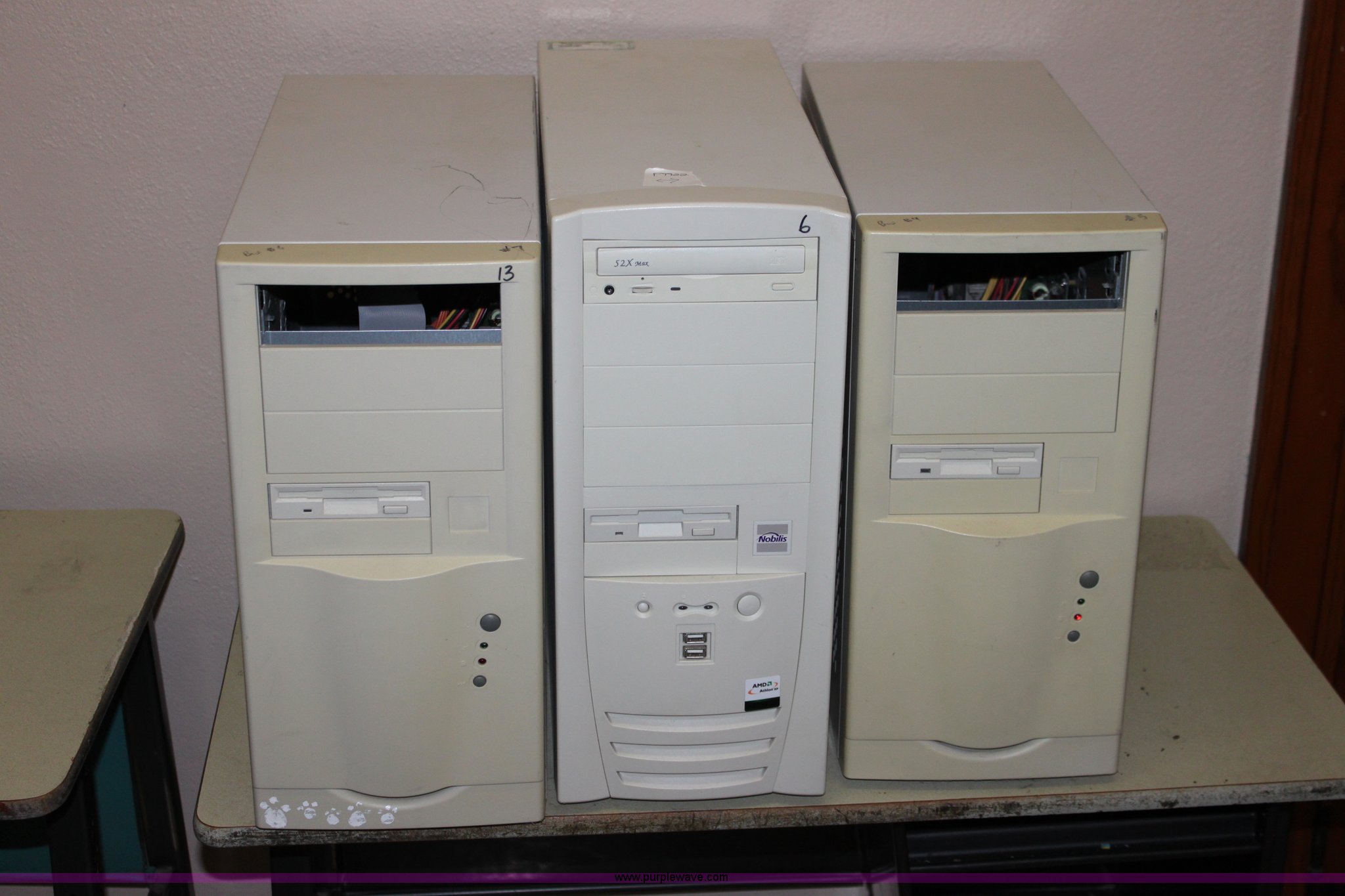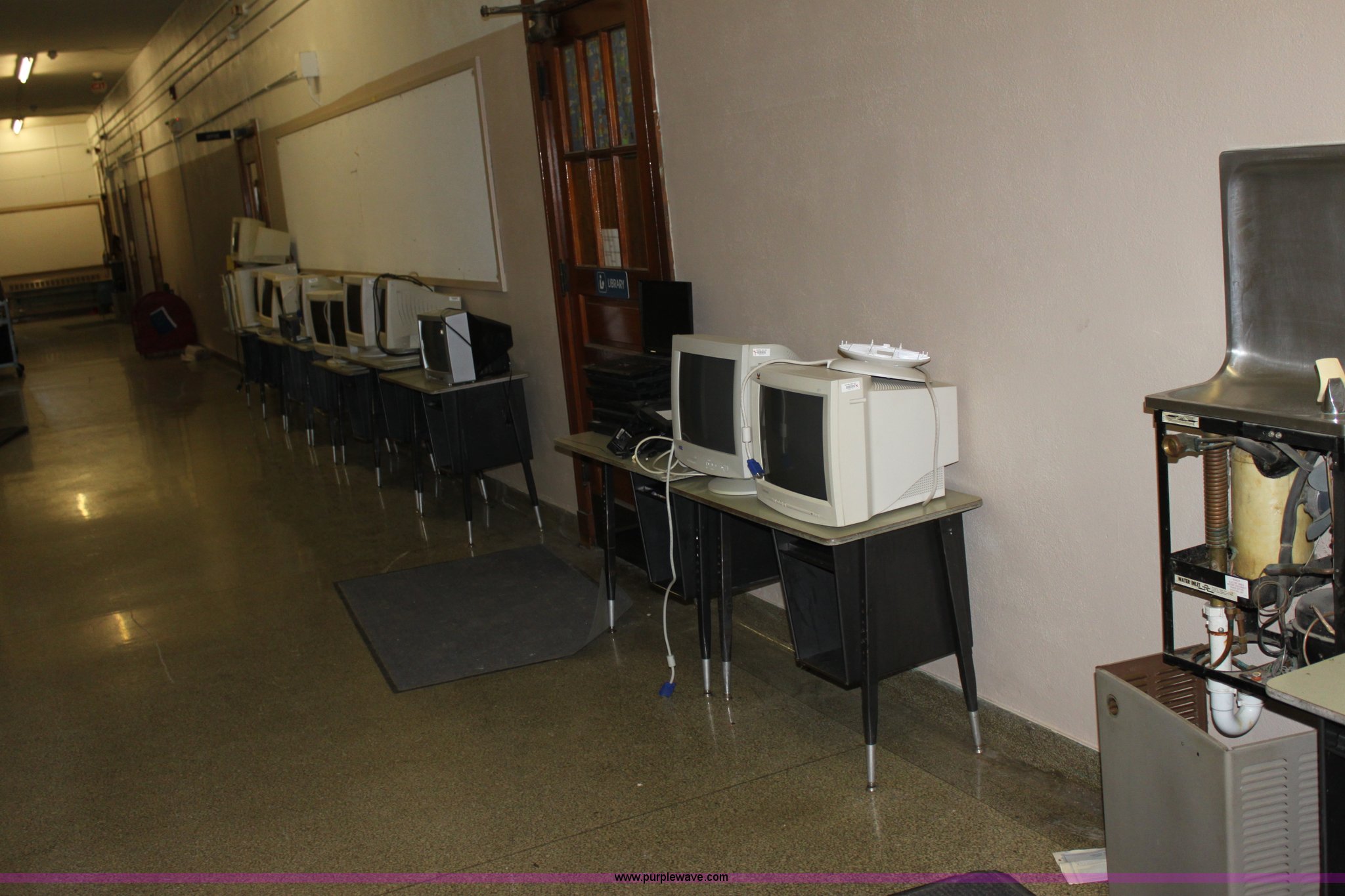 Purple Wave is selling a used Computers in Kansas. This item is a Assorted computers and desks with the following: (8) computer towers, Nobilis and more, Missing HDD, (11) CRT monitors, Haler television, Mitsubishi projector, (7) IBM Thinkpad T30 laptop computers, Intel Pentium 4 processor, Windows XP product key, Missing HDD, Speakers, Keyboards, (12) student desks, And more
