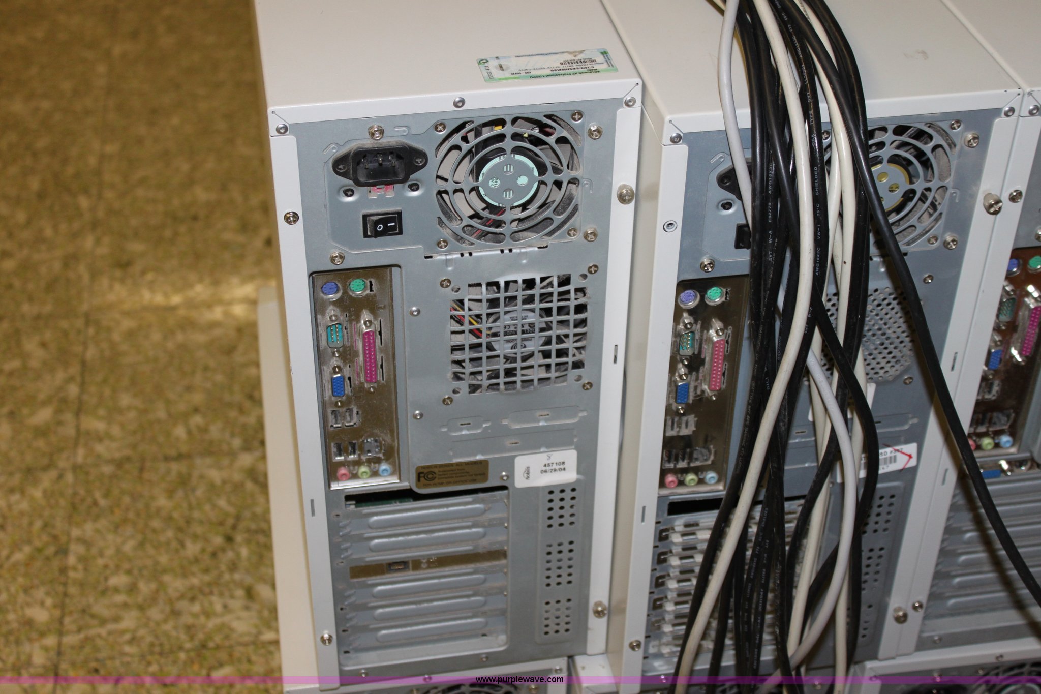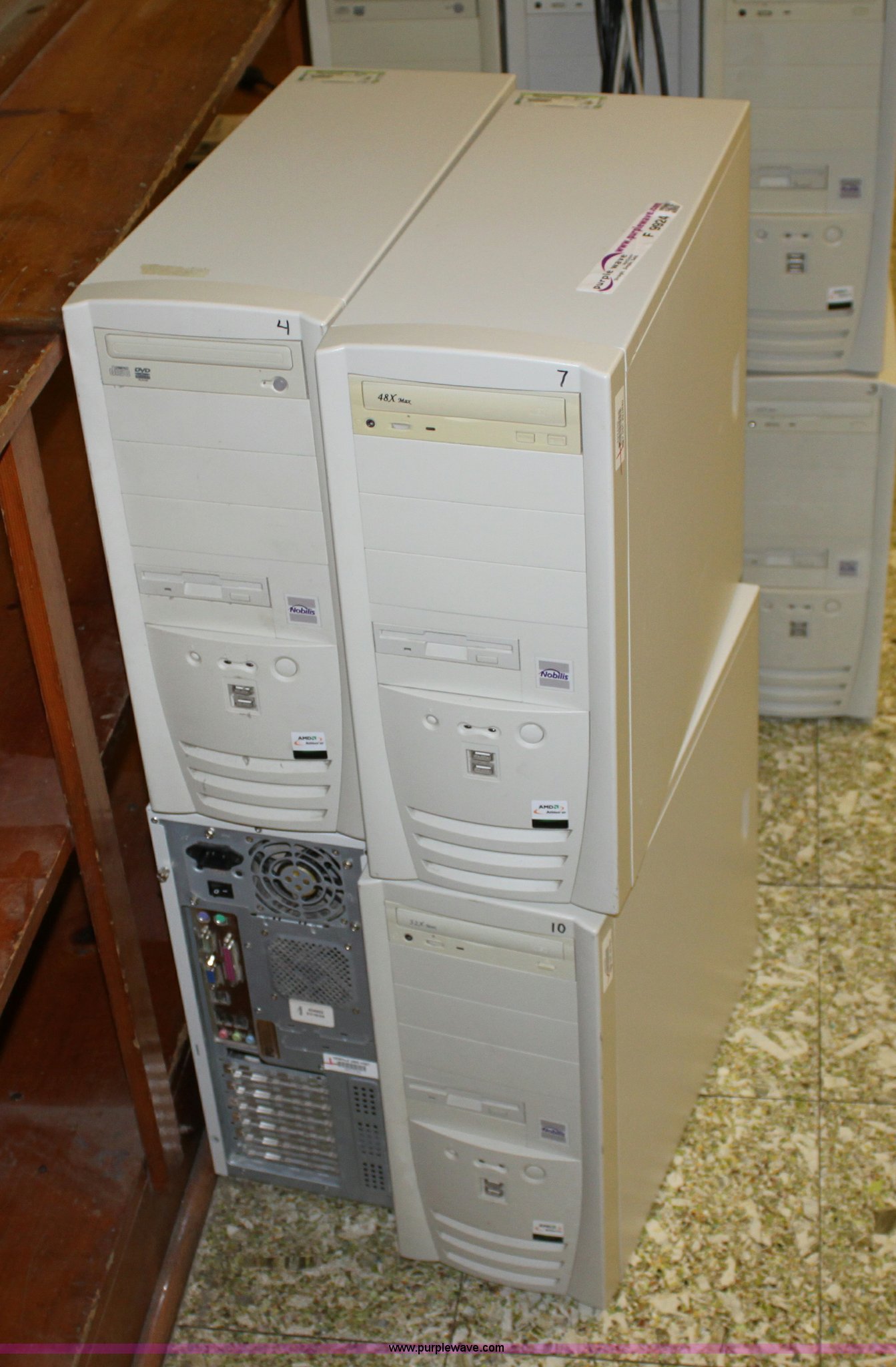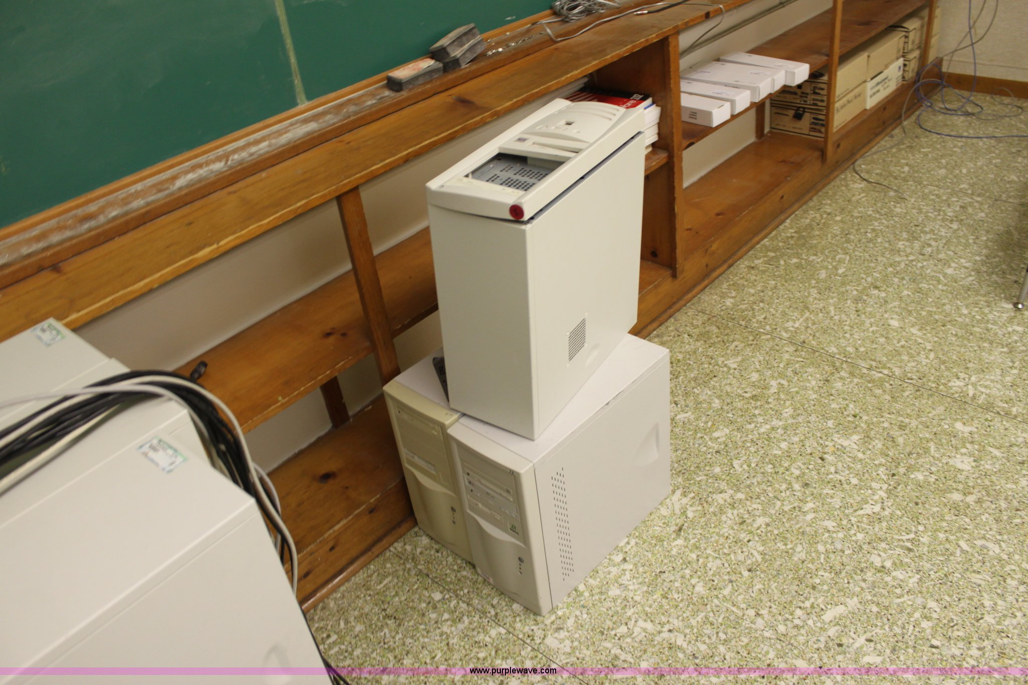 Purple Wave is selling a used Computers in Kansas. This item is a Computers and assorted furniture with the following: (13) Nobilis computer towers, Windows SP product key, Missing HDD, (5) CRT monitors, (11) keyboards, (3) student desks, (2) tables, (3) chairs
