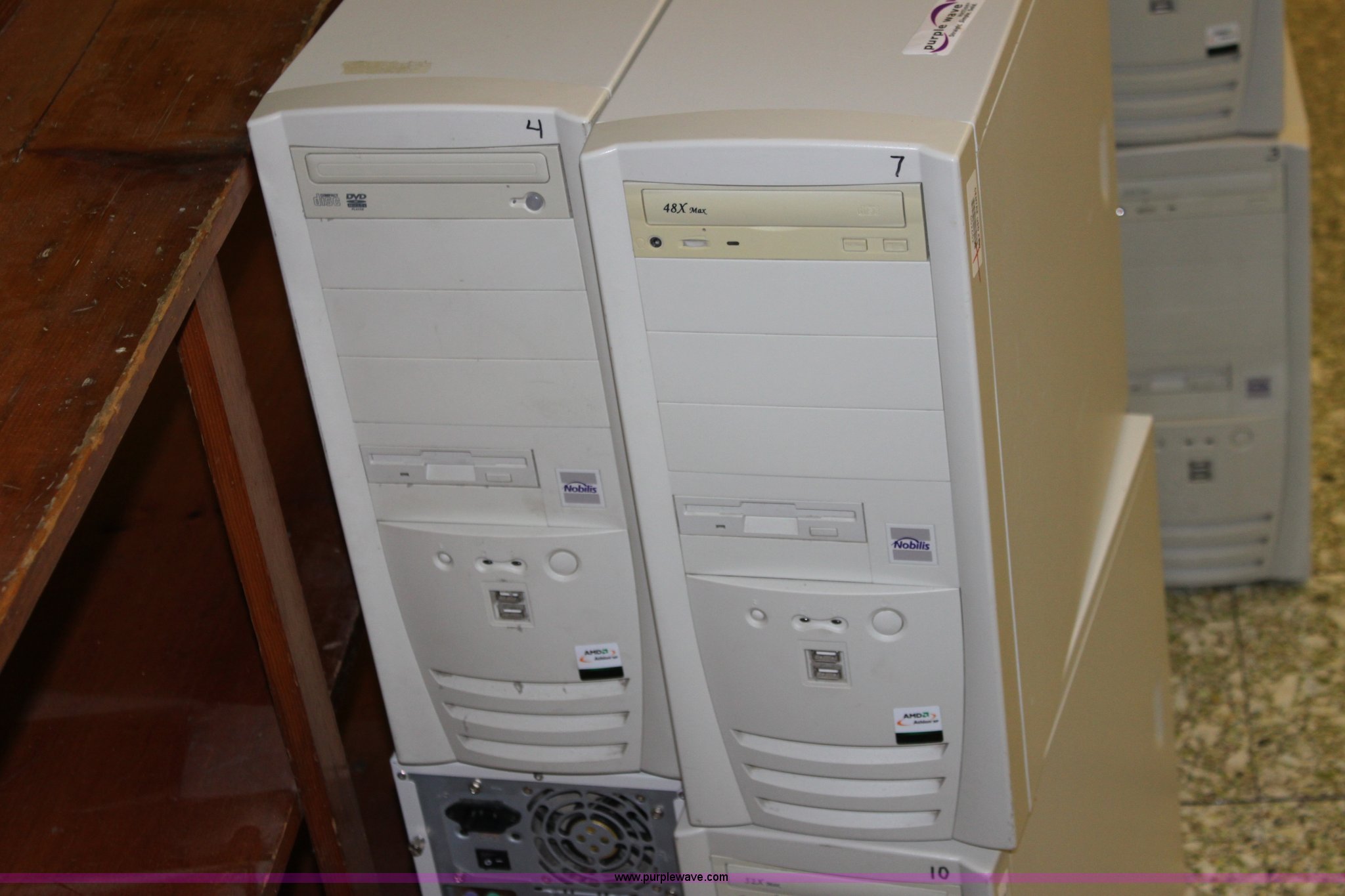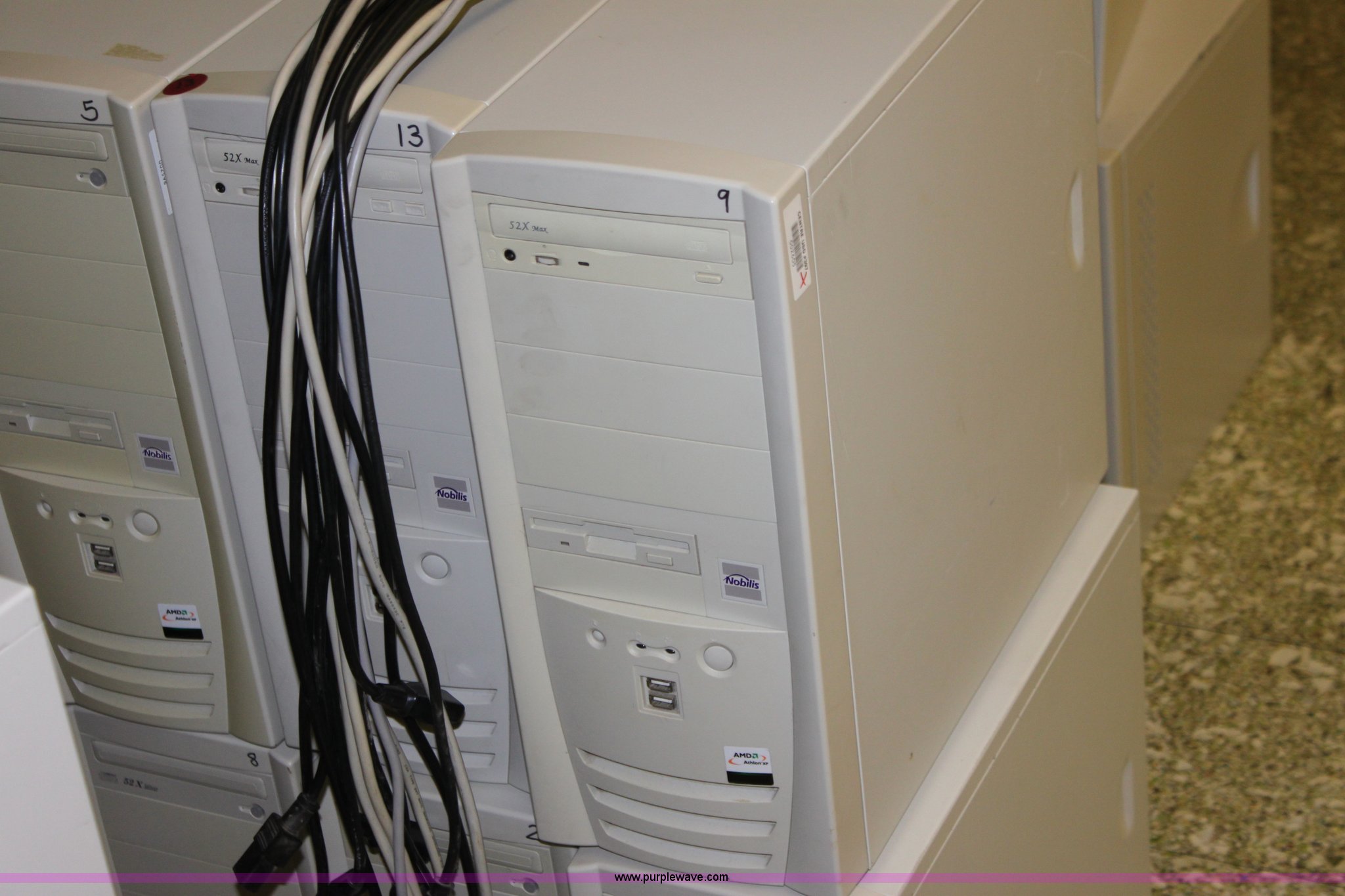 Computers and assorted furniture. (13) Nobilis computer towers Windows SP product key, Missing HDD, (5) CRT monitors, (11) keyboards, (3) student desks, (2) tables, (3) chairs. USD 397. Lost Springs, KS 66859