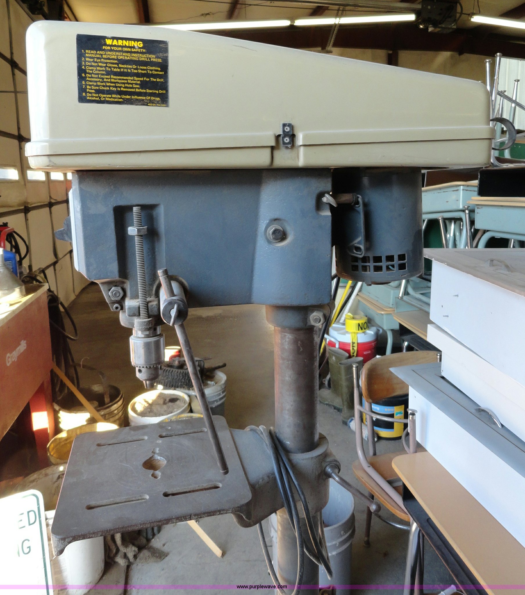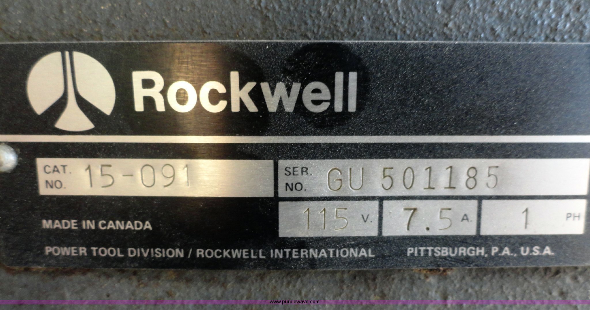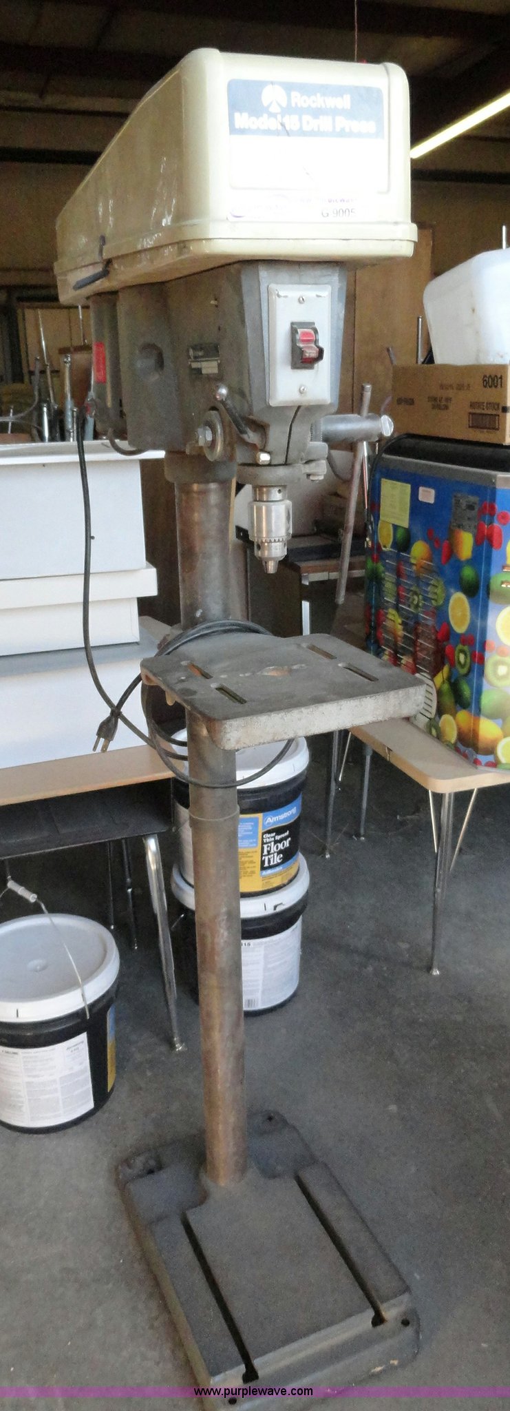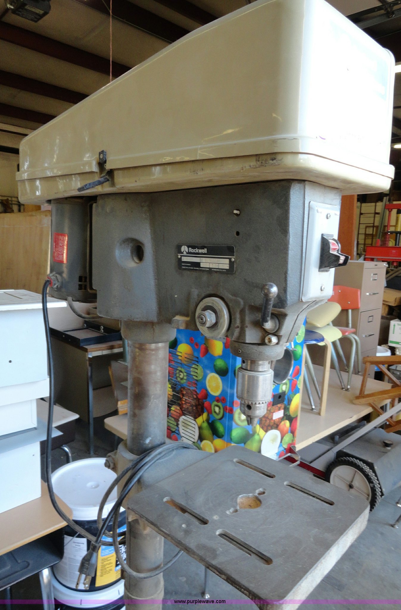 Purple Wave is selling a used Tools in Kansas. This item is a Rockwell 15 drill press with the following: 1/2 HP motor, 1,725 RPM, Serial GU501185