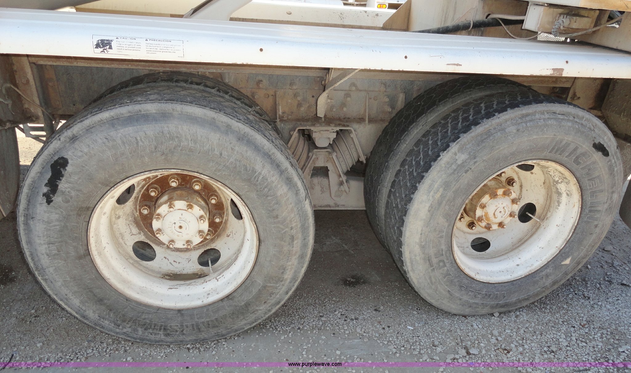 Purple Wave is selling a used Ready Mix or Pump Truck in Kansas. This item is a 1999 Sterling L8513 cement mixer truck with the following: 96,522 miles on odometer, 7,064 hours on meter, Cummins L6, 8.3L (504 CID) diesel engine, Eaton Fuller manual transmission, AC and heat, Cruise control, AM/FM radio, Manual windows and locks, Air ride seat, Single stack, Front tow hooks, Front PTO unit, London 9.8 cu.yd. mixer, Type TM, 8-12 rpm mix speed, 2-4 rpm agitating speed, Serial 99933T036, Chute extensions, 55 gallon fuel tank, GVWR 60,000 lbs, 425/65R22.5 front tires, 11R22.5 rear tires, Cosmetic damage to hood