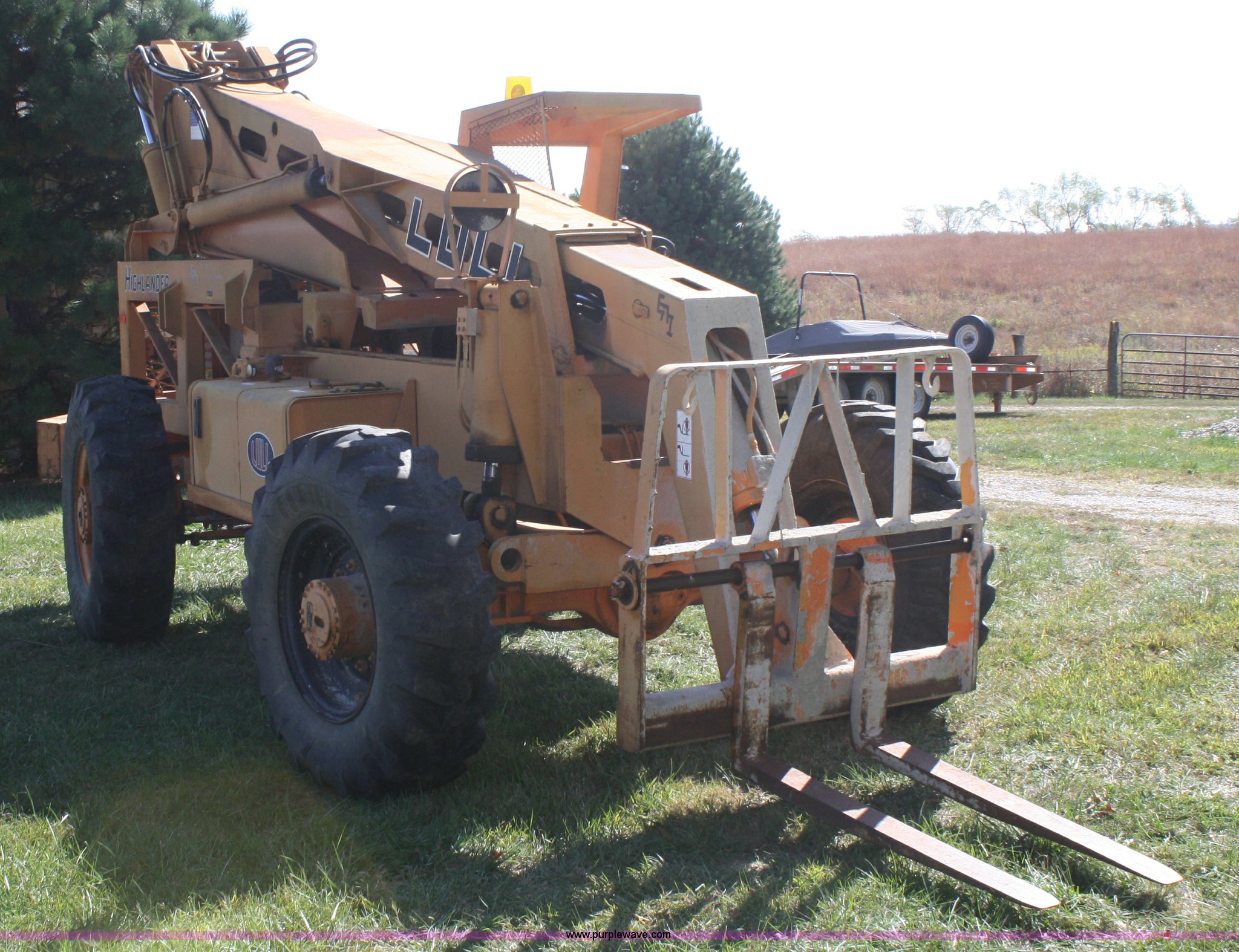 Purple Wave is selling a used Telehandler in Kansas. This item is a 1984 Lull Highlander 844 telehandler with the following: 5,103 hours on meter, John Deere 4045D diesel engine, Rebuilt in May 2007, Four speed powershift transmission, Four wheel drive, Four wheel steering, 34' reach, 8,000 lb capacity, Carriage tilt, 48"L x 4"W forks, 4'W fork carriage, 13.00-24 calcium filled tires, Spare tire, Manual and service records available, Brakes have been modified, Serial JD01419LN