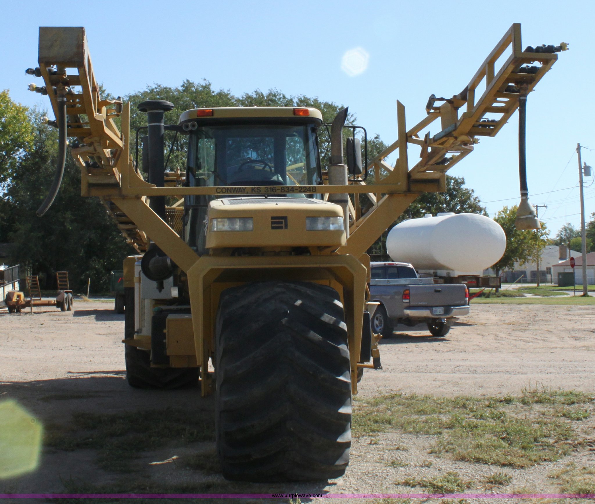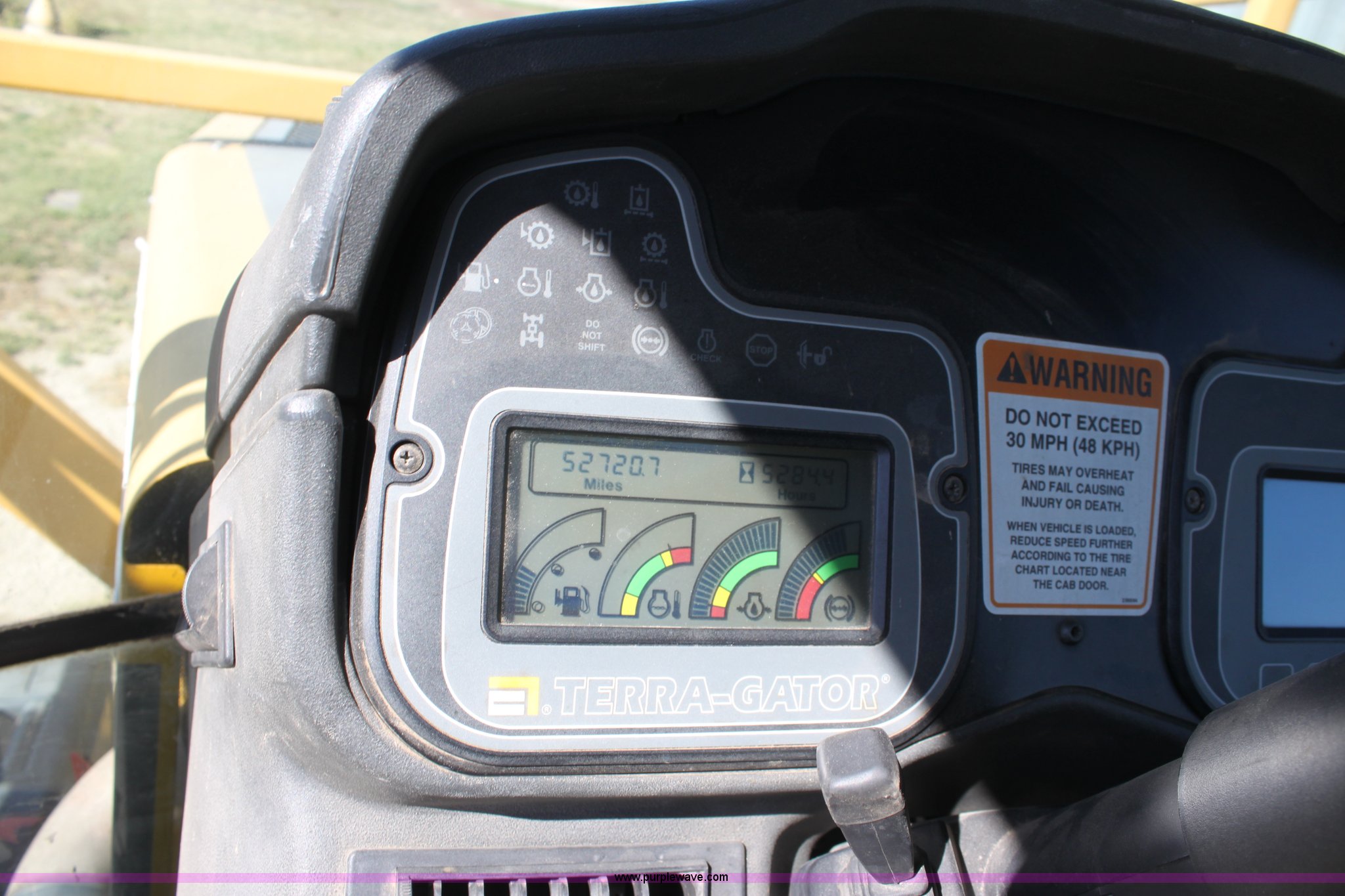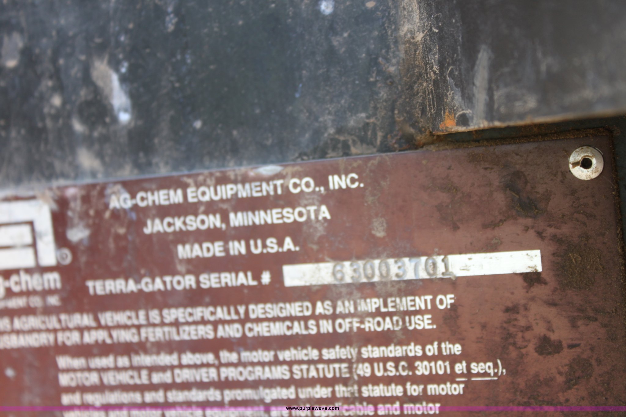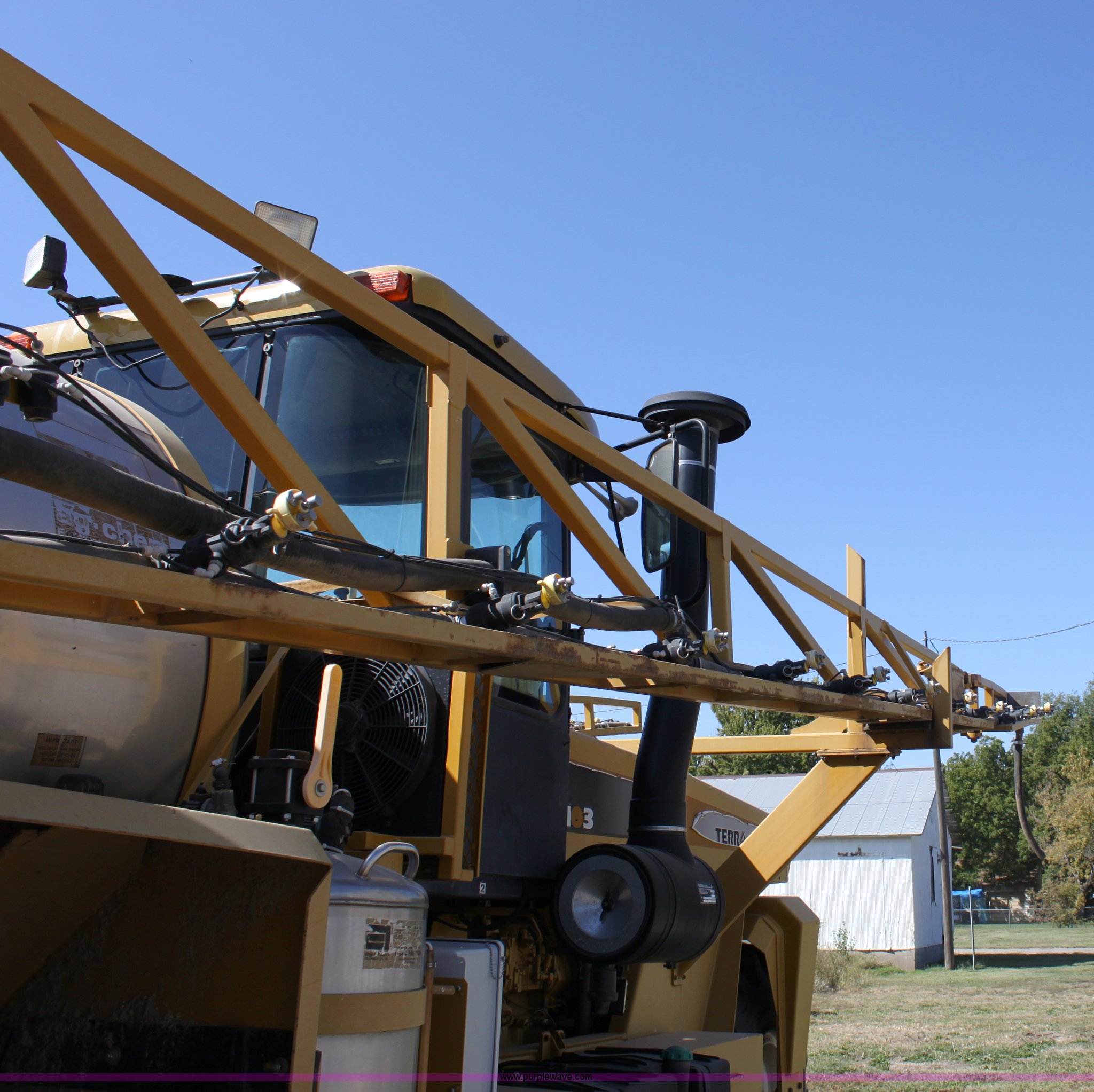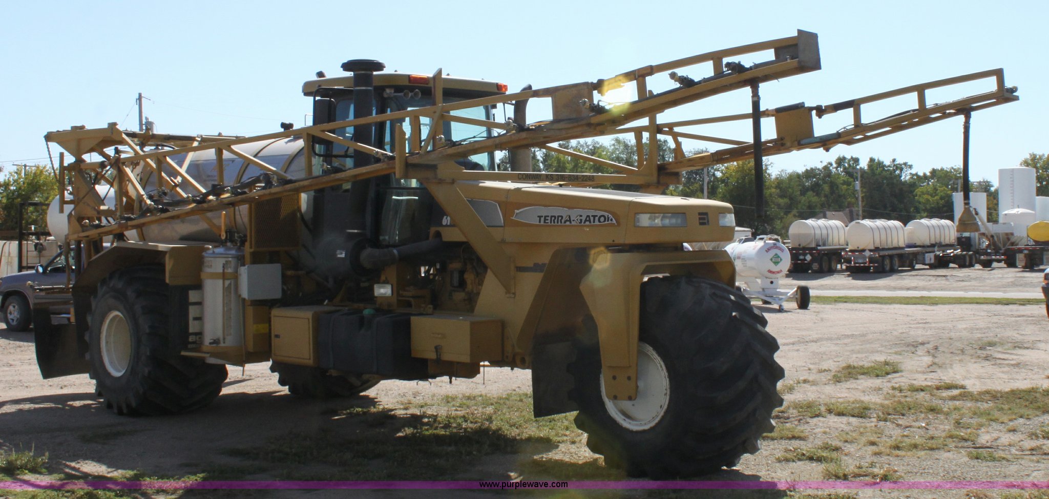 Purple Wave is selling a used Applicator Self Propelled in Kansas. This item is a 2000 Terra Gator 6103 sprayer with the following: 5,284 hours on meter, 52,720 miles on odometer, John Deere six cylinder diesel engine, Serial RG6081A114159, Tarra shift hydrostatic transmission, AC and heat, AM/FM/Cassette, Cruise, Suspension seat, Digital display dash, Windshield wipers, Hydraulic boom control, Double foam marker, 1,750 gallon stainless steel tank, 70' boom width, 55 gallon foam tank, 100 gallon rinse tank, Front and side work lights, Air brakes, 66x43.00-25 tires, Missing nozzles