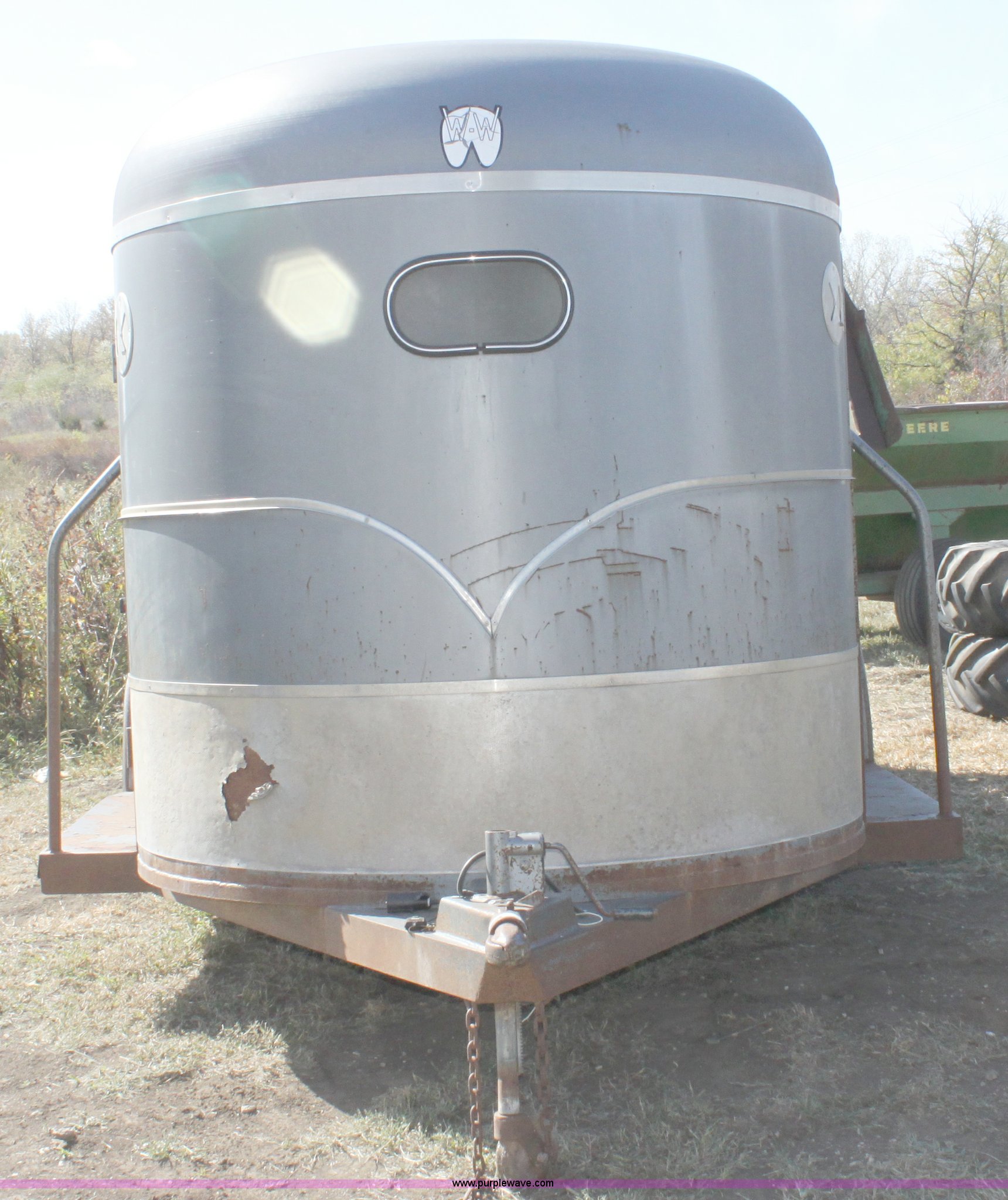 Purple Wave is selling a used Livestock Trailer in Kansas. This item is a 1998 WW 18' tandem axle livestock trailer with the following: Side and rear entry, Single center gate, 2 5/16" receiver, 235/75R15 tires, 5,200 lb axles, GVWR 10,400 lbs