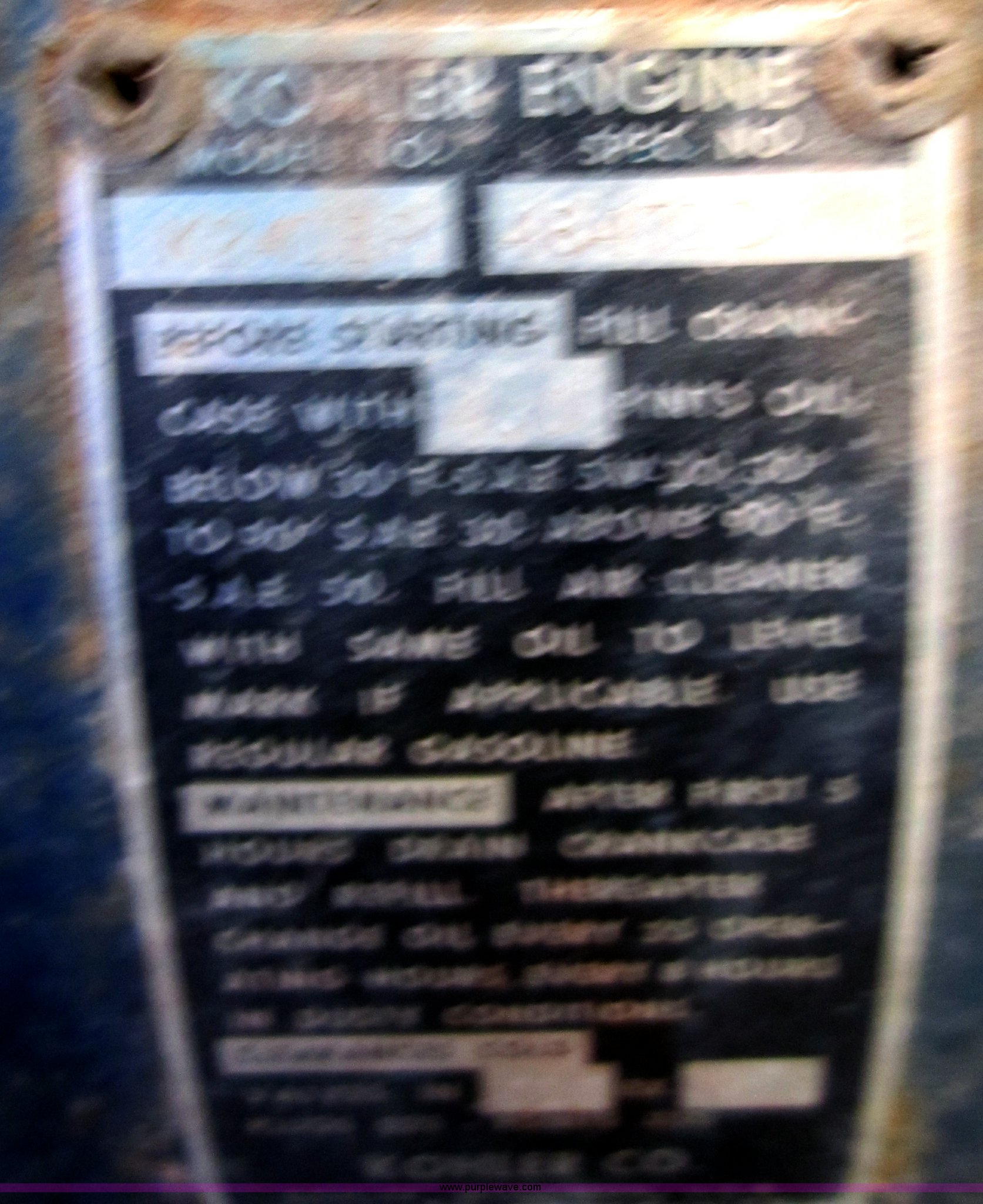 Purple Wave is selling a used Generator Set in Kansas. This item is a Kohler electric plant with the following: 2.5MM21, 2.5 KVA, 120v, Kohler K241 14 HP engine