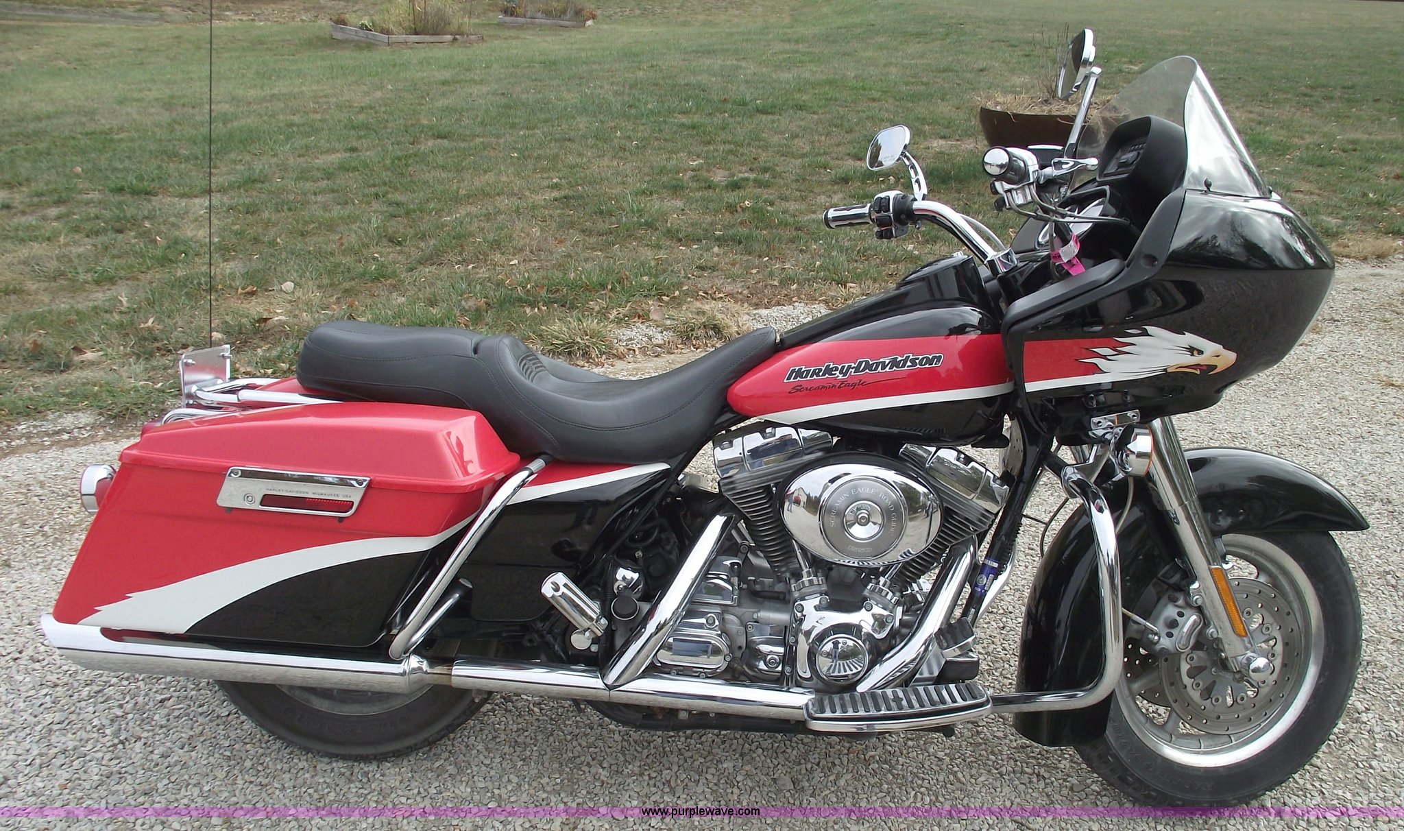 Purple Wave is selling a used Motorcycle in Missouri. This item is a 2000 Harley Davidson Screamin' Eagle Road Glide 1550 motorcycle with the following: 41,558 miles on odometer, Mileage may vary, 1550 cc fuel injected gas engine, Five speed transmission, AM/FM/Cassette, Cruise, Screamin' Eagle chrome package, Hard saddle bags, 2 Ring exhaust pipes, Recently replaced battery, 90-16 MC 72 front tire, 90-16-74 rear tire