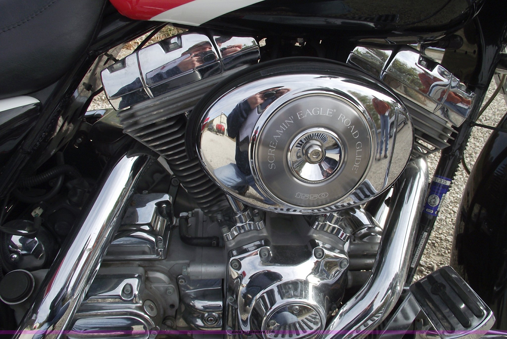 2000 Harley Davidson Screamin' Eagle Road Glide 1550 motorcycle has sold in Harrisonville, Missouri for $8360. Item C5686 sold on November 16th, 2011.