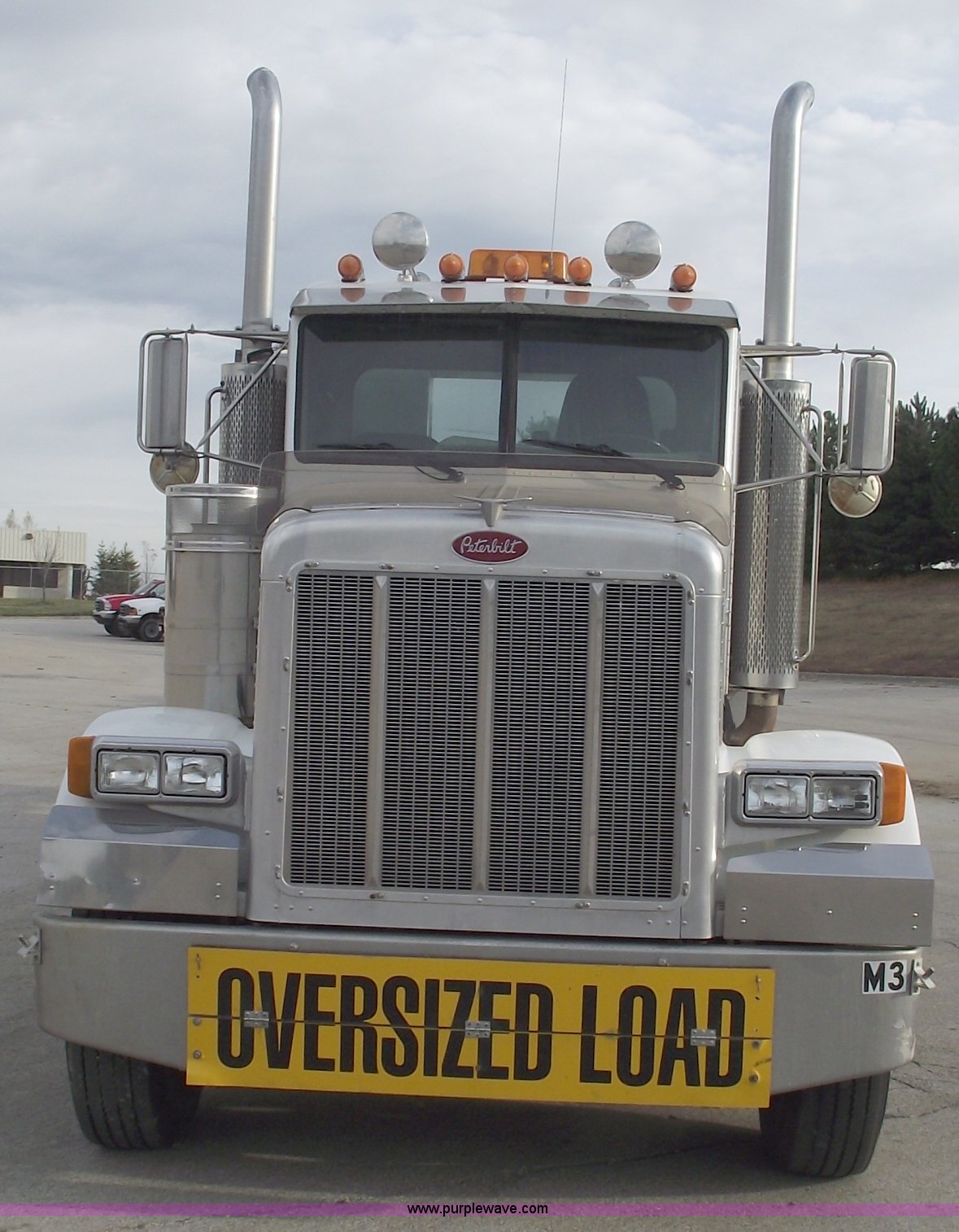 Purple Wave is selling a used Truck Tractor in Kansas. This item is a 1997 Peterbilt 378 triple axle semi truck with the following: 482,531 miles on odometer, Caterpillar 3406 14.6L diesel engine, 490 HP, Eaton Fuller 18 speed manual transmission, Twin screw, AC and heat, Tilt, AM/FM/Cassette, Passenger daylight door, Telescoping steering wheel, Air ride cab, Heated mirrors, Exterior visor, Chrome bumper, Block heater, Dual fuel tanks, Dual exhaust stacks, Aluminum deck plate, Enclosed headache rack, 82"W x 64.5"H, (3) storage compartments, (5) shelves, (2) chain hangers, 26"W side compartments, 28" center compartments, (2) rear lights, 20.5"H x 29"W window opening, Stainless steel full fenders, PTO, Wet kit, Dump valves, Air suspension, Air brakes, Jake brake, Air operated tag axle, Wheel nut covers, (14) aluminum wheels, 11R24.5 tires, 226" wheelbase, GVWR 73,011 lbs, FAWR 12,001 lbs, TAWR 17,002 lbs, IAWR 22,003 lbs, RAWR 22,003 lbs, 18,985 lb chassis, Trailer not included