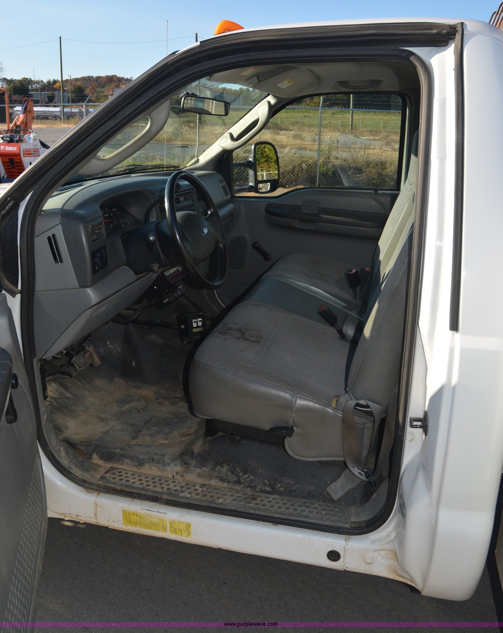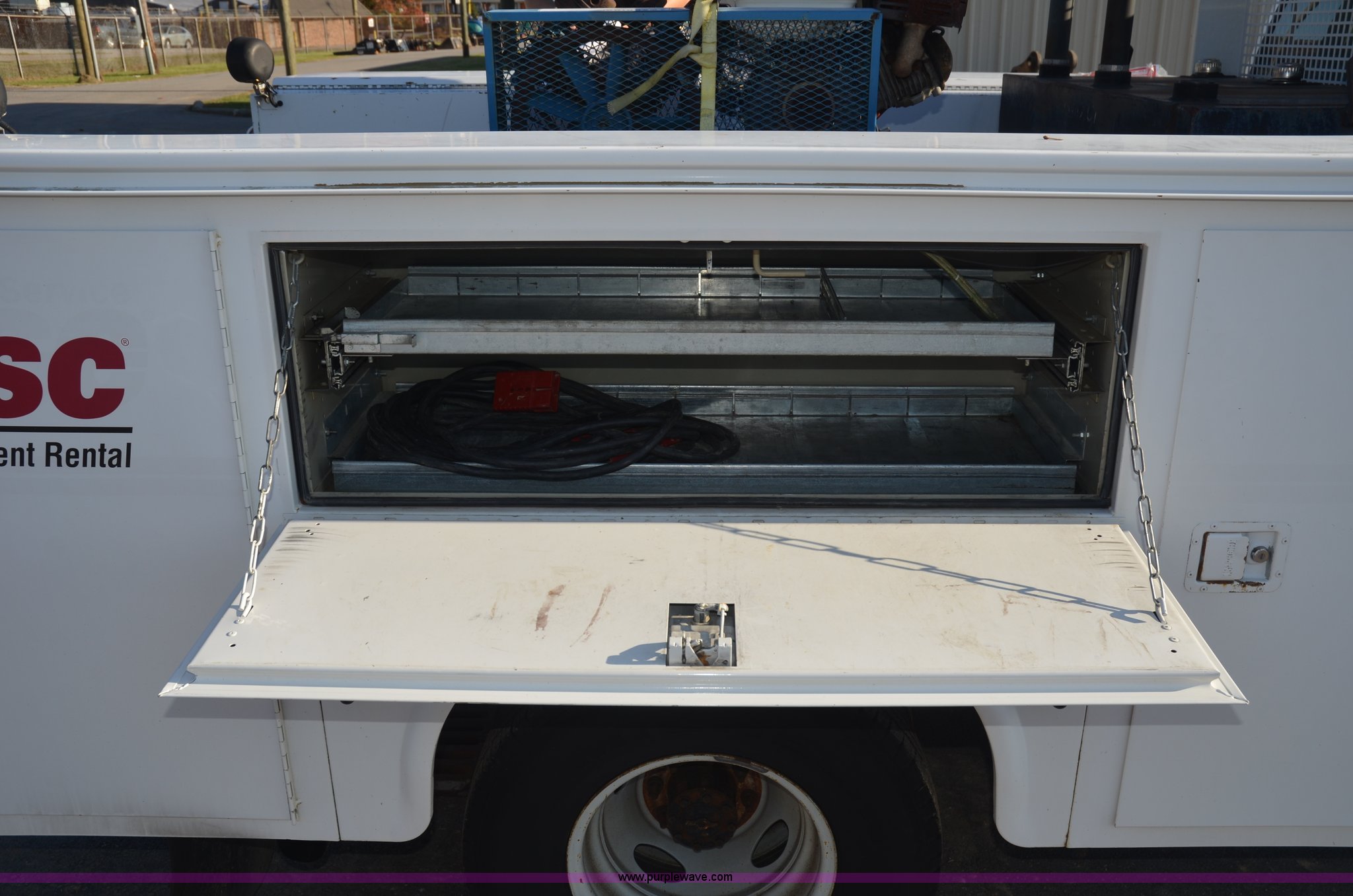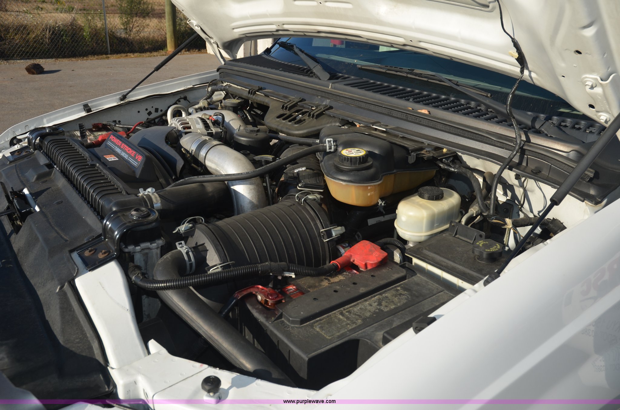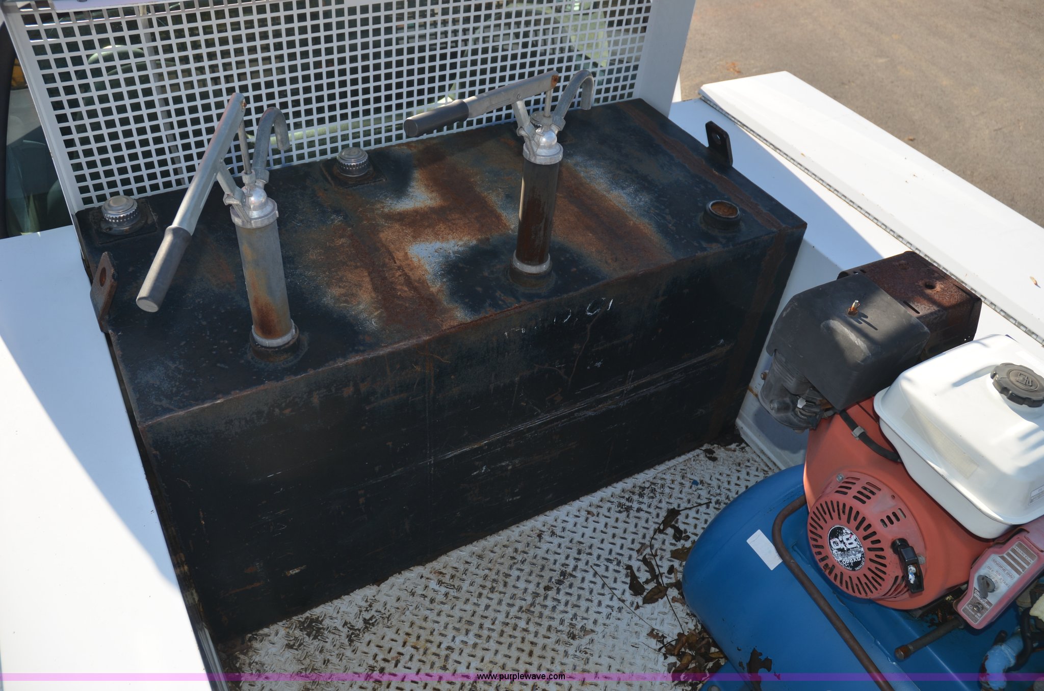Purple Wave is selling a used Service Truck in Tennessee. This item is a 2004 Ford F350 service truck with the following: 146,073 miles on odometer, Powerstroke 6.0L diesel engine, Automatic transmission, AC and heat, AM/FM radio, Manual windows and locks, Block heater, Dual batteries, Light bar, Work lights, Headache rack, Service bed, Air compressor, Honda GX240 8 HP gas engine, Oil tank, Vice mounted on bumper, Receiver hitch with 2" ball, Manual and maintenance records included