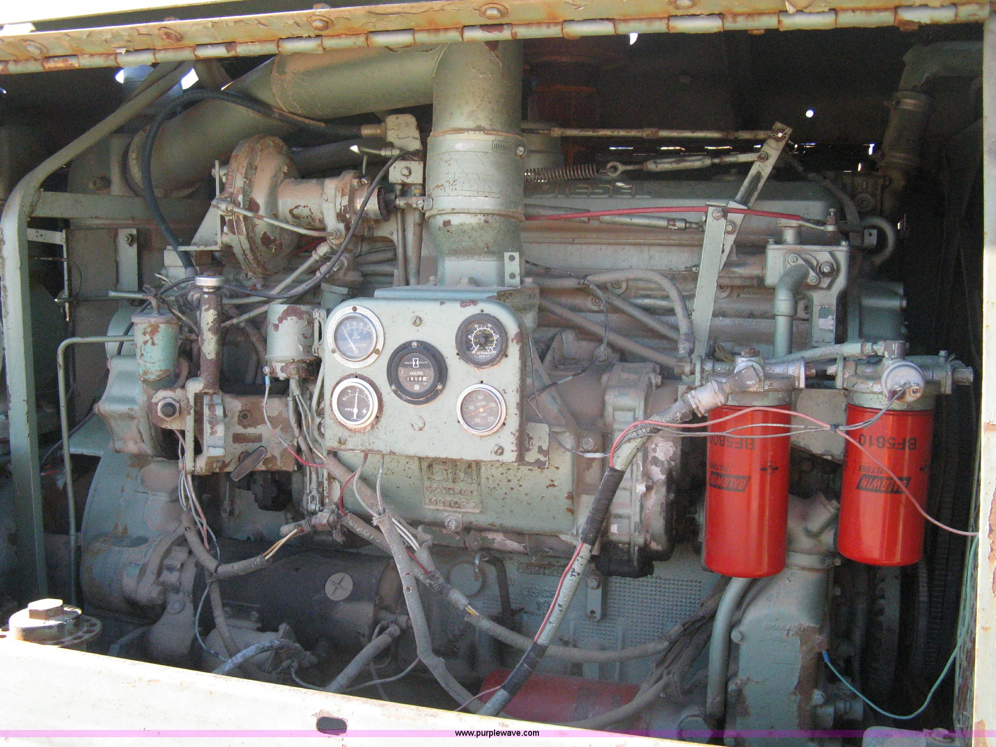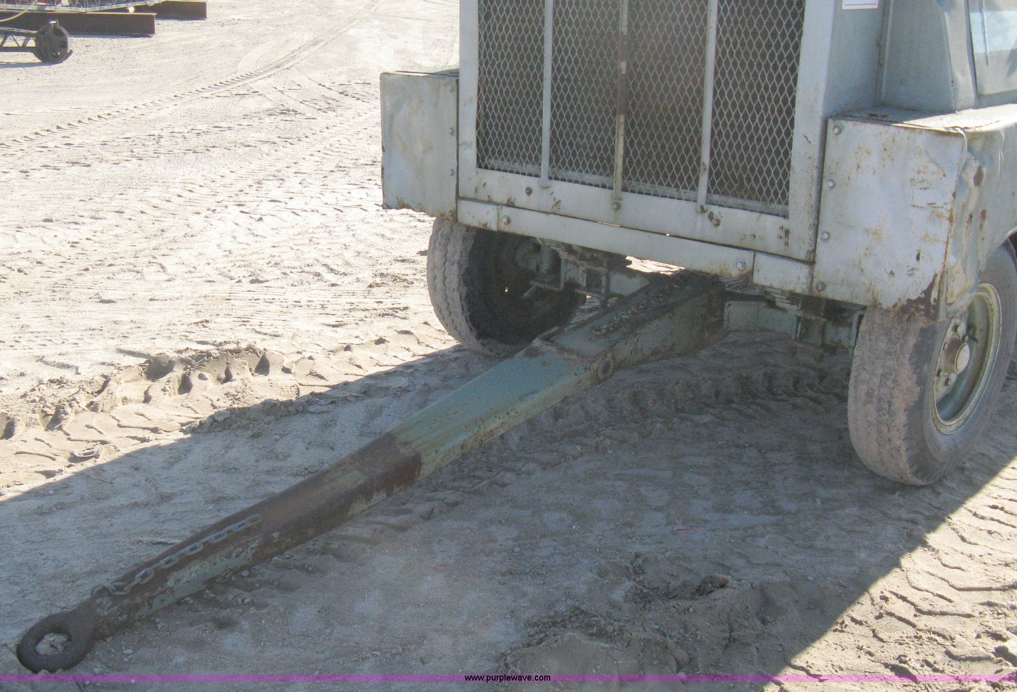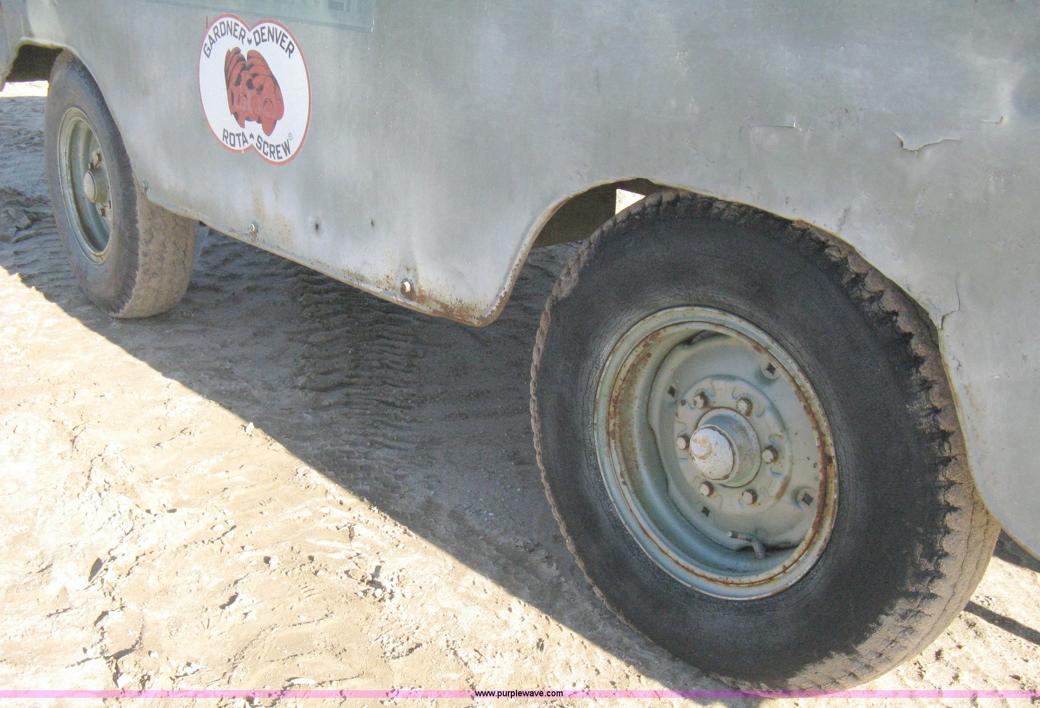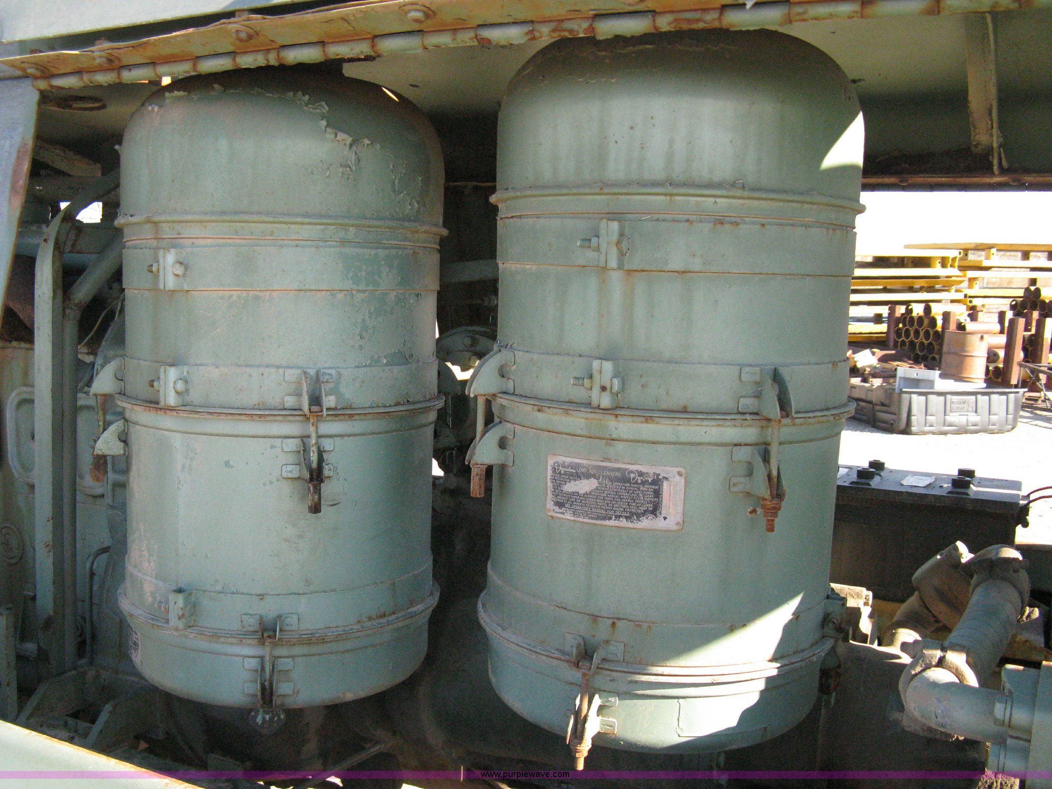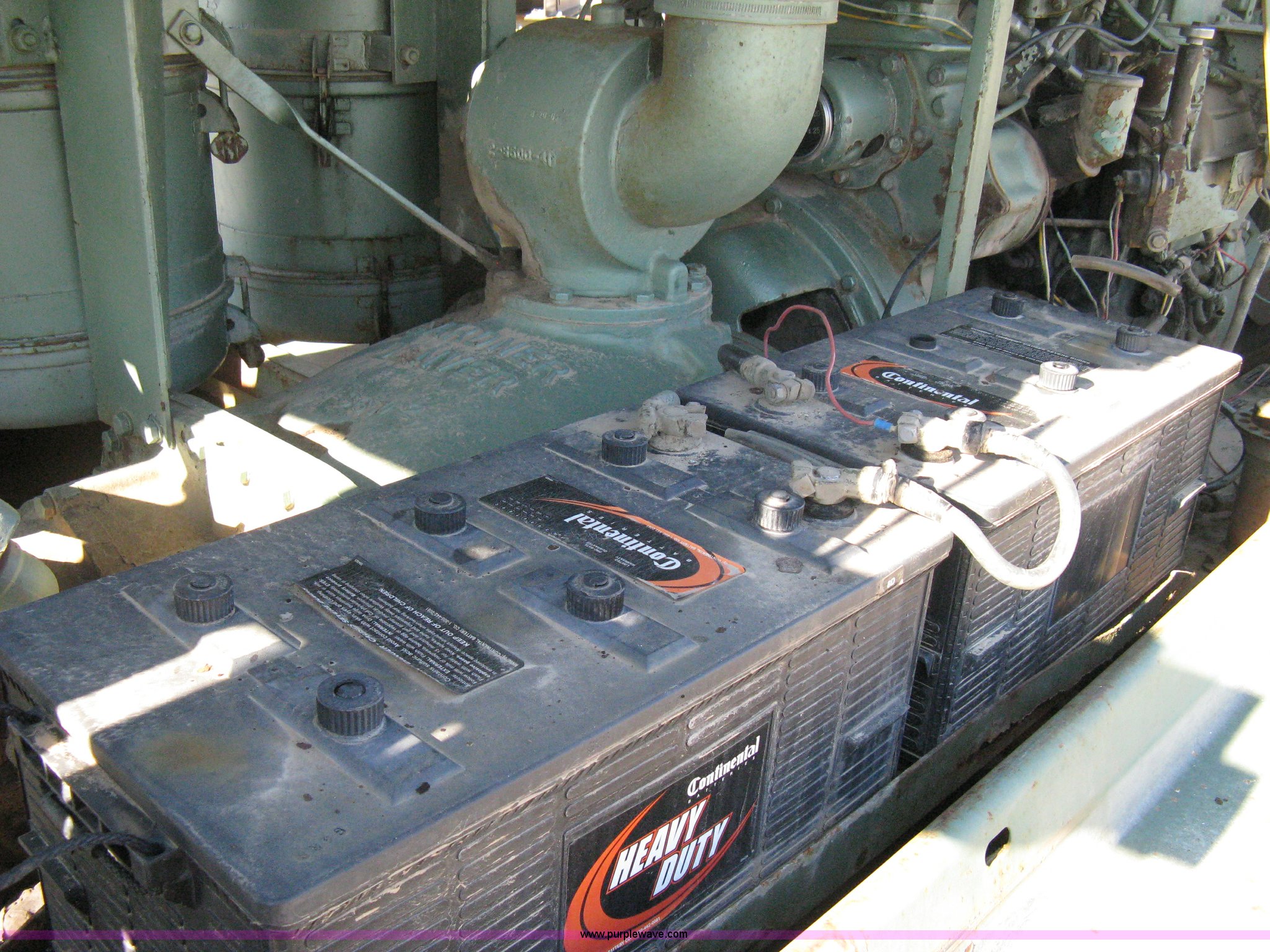 Purple Wave is selling a used Air Compressor in Kansas. This item is a 1964 Gardner Denver SP600DC mobile compressor with the following: 1,010 hours on replacement meter, 1,133 hours on original service meter, Detroit six cylinder diesel engine, 150 PSI working pressure, 250 working pressure, Four-wheel wagon mount, Tow tongue with pintle hitch end, 15" tires, Serial 476205