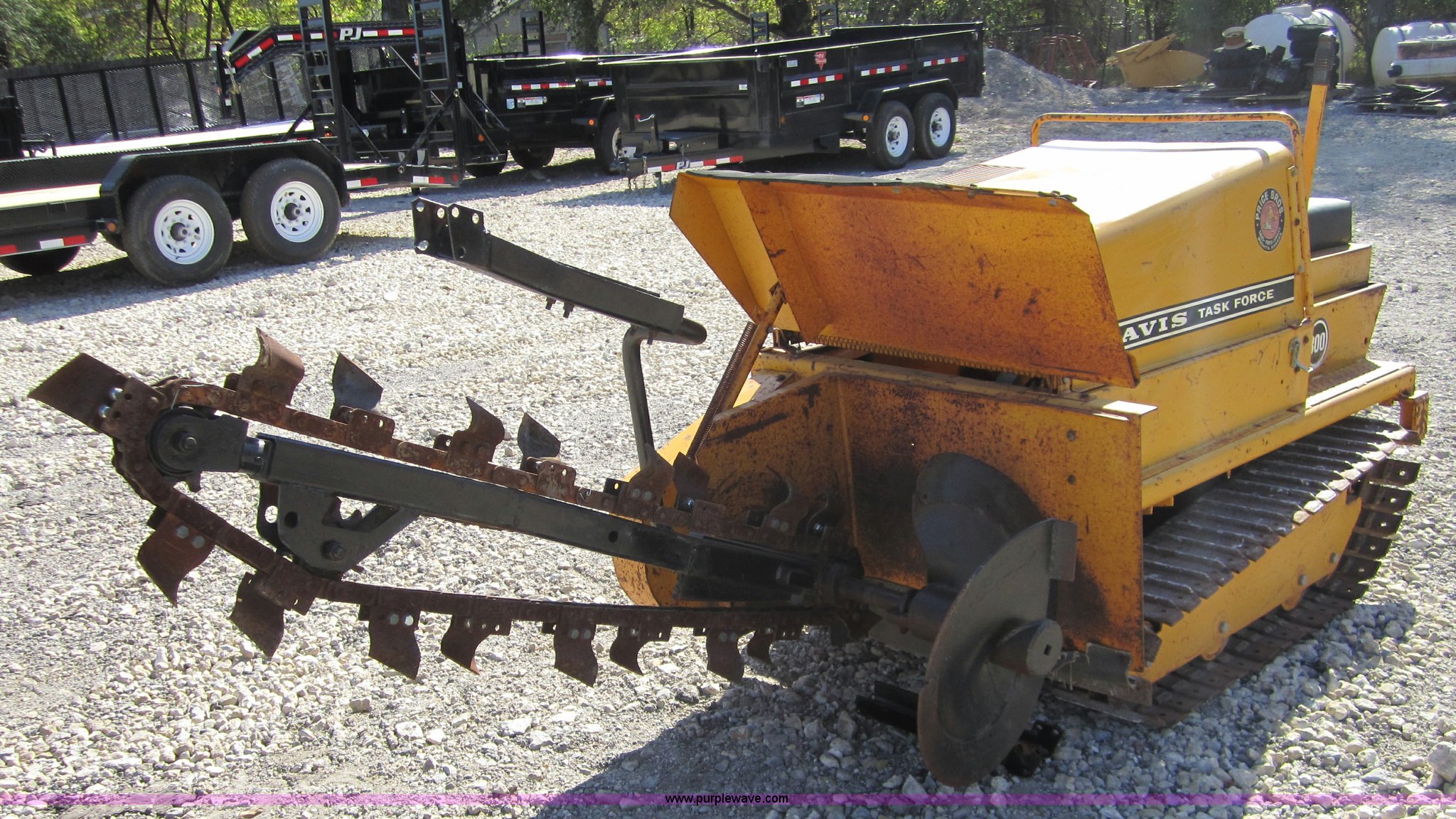 Purple Wave is selling a used Trencher or Rock Saw in Kansas. This item is a Davis TF300 trencher with the following: Wisconsin two cylinder 18 HP engine, Hydraulic driven, 10" track pads, 3' dig depth