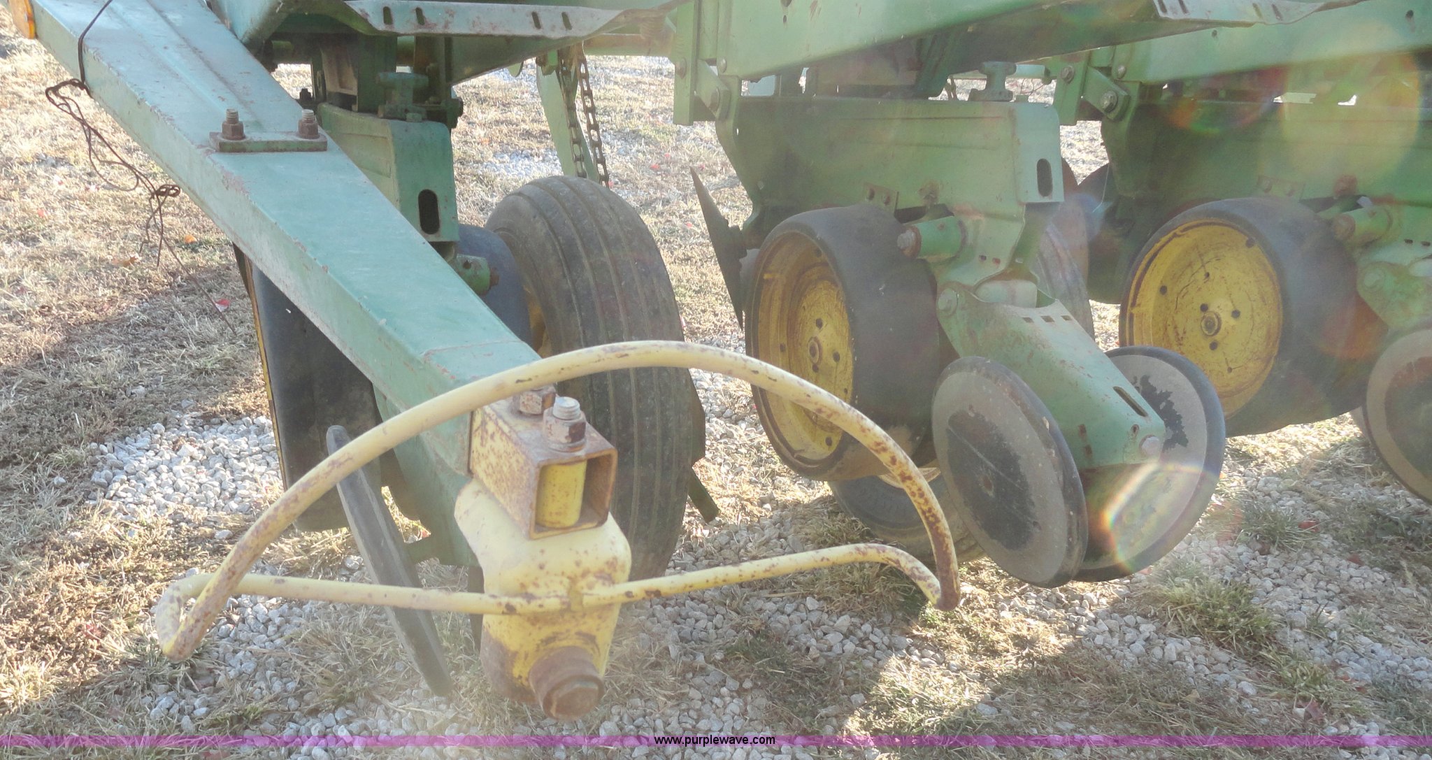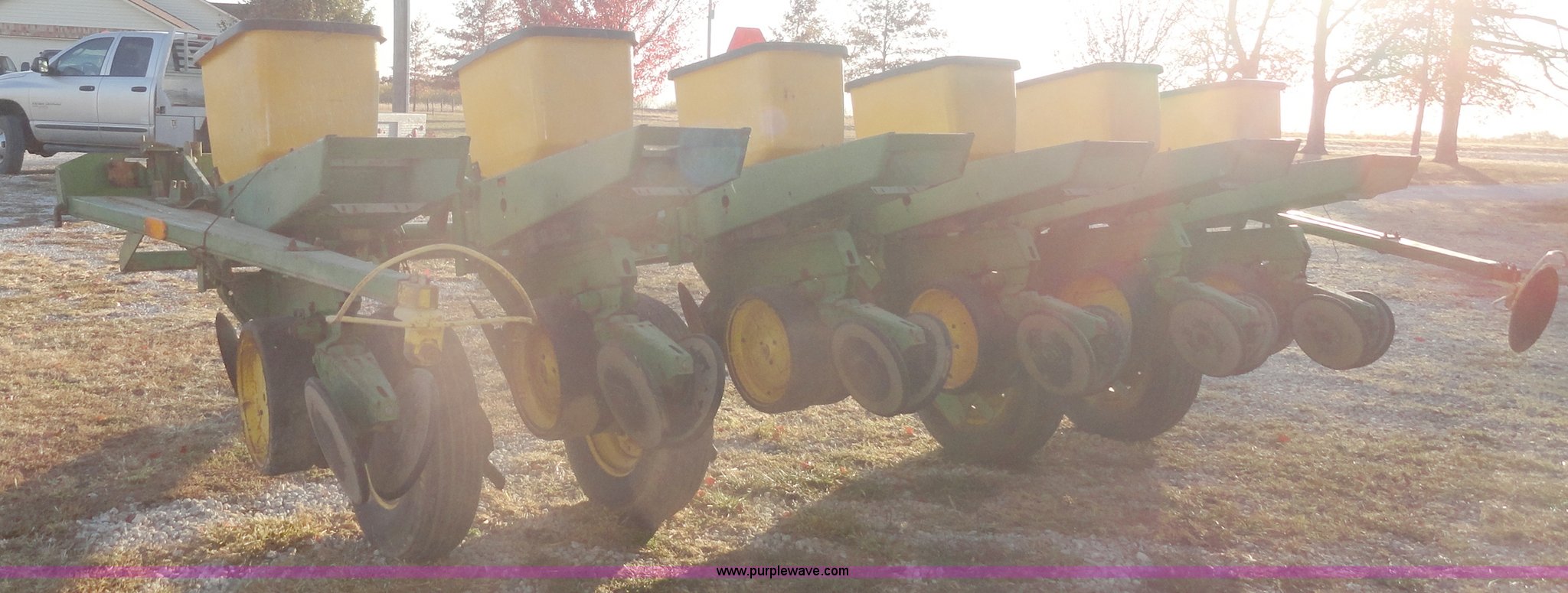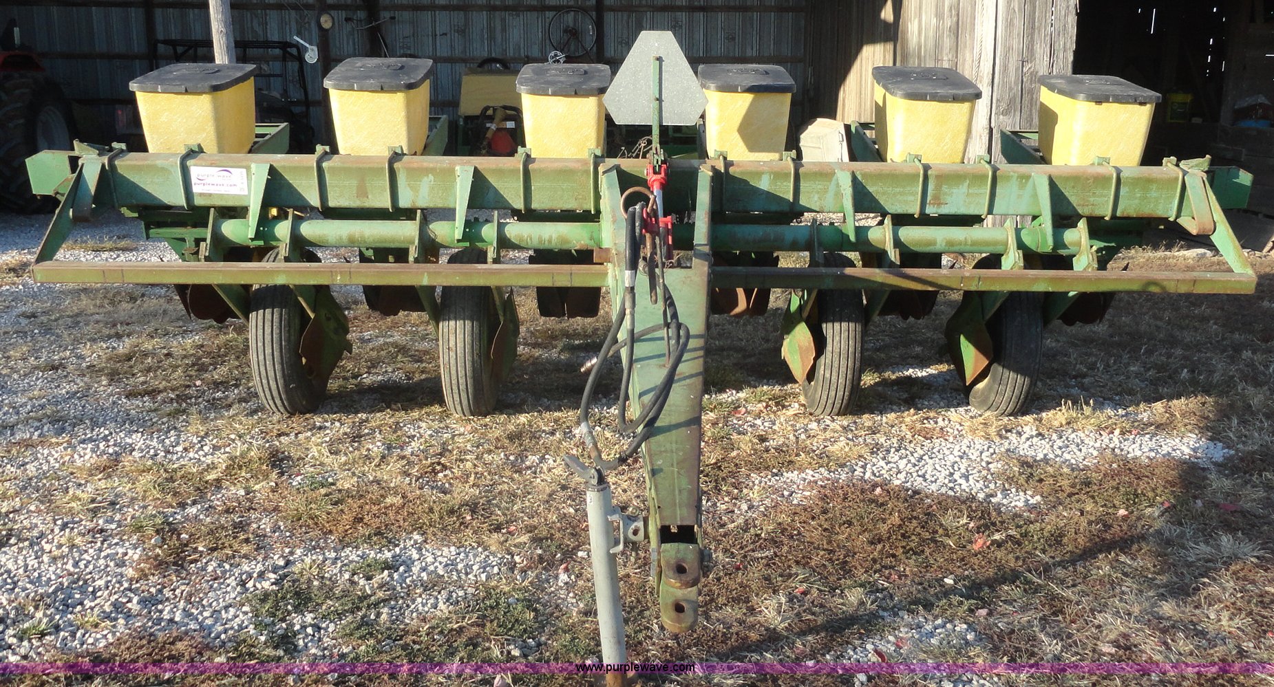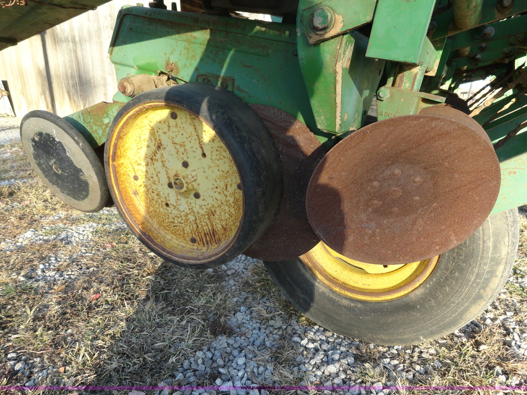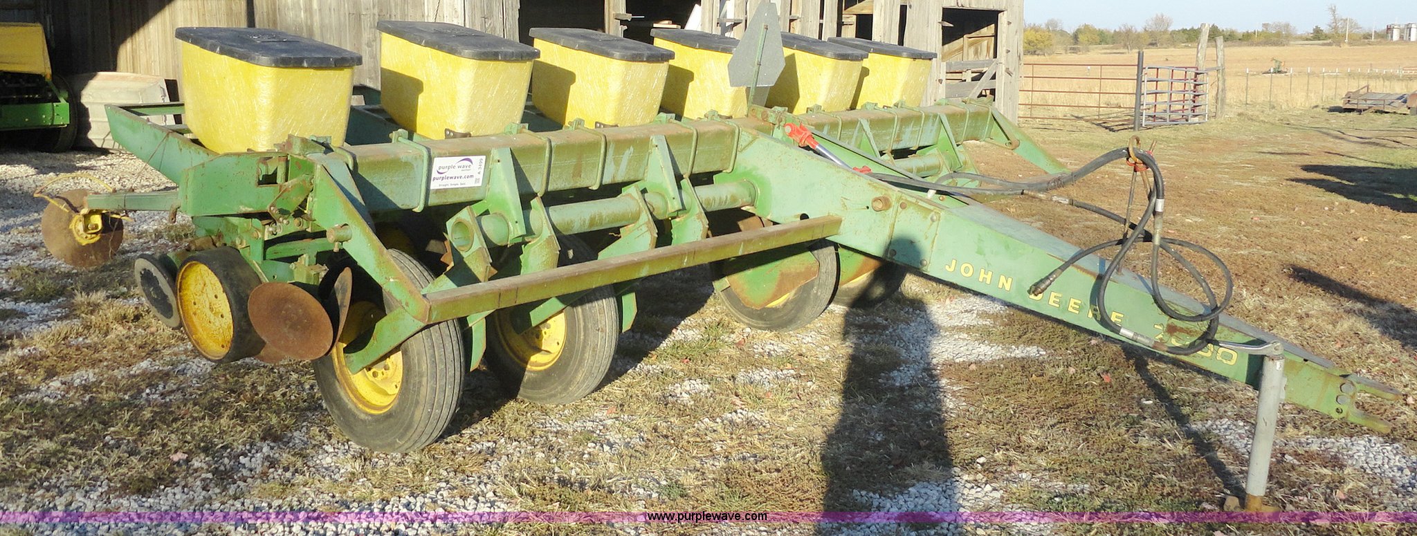 Purple Wave is selling a used Planter in Kansas. This item is a John Deere 7000 six row planter with the following: 30" spacing, 11.5" double disks, Corn, milo, and bean plates included, Hydraulic markers, Missing marker disk bearing, but included, Coulters, Hydraulic hookups, Pin hitch, 7.60-15 tires, Operators manual