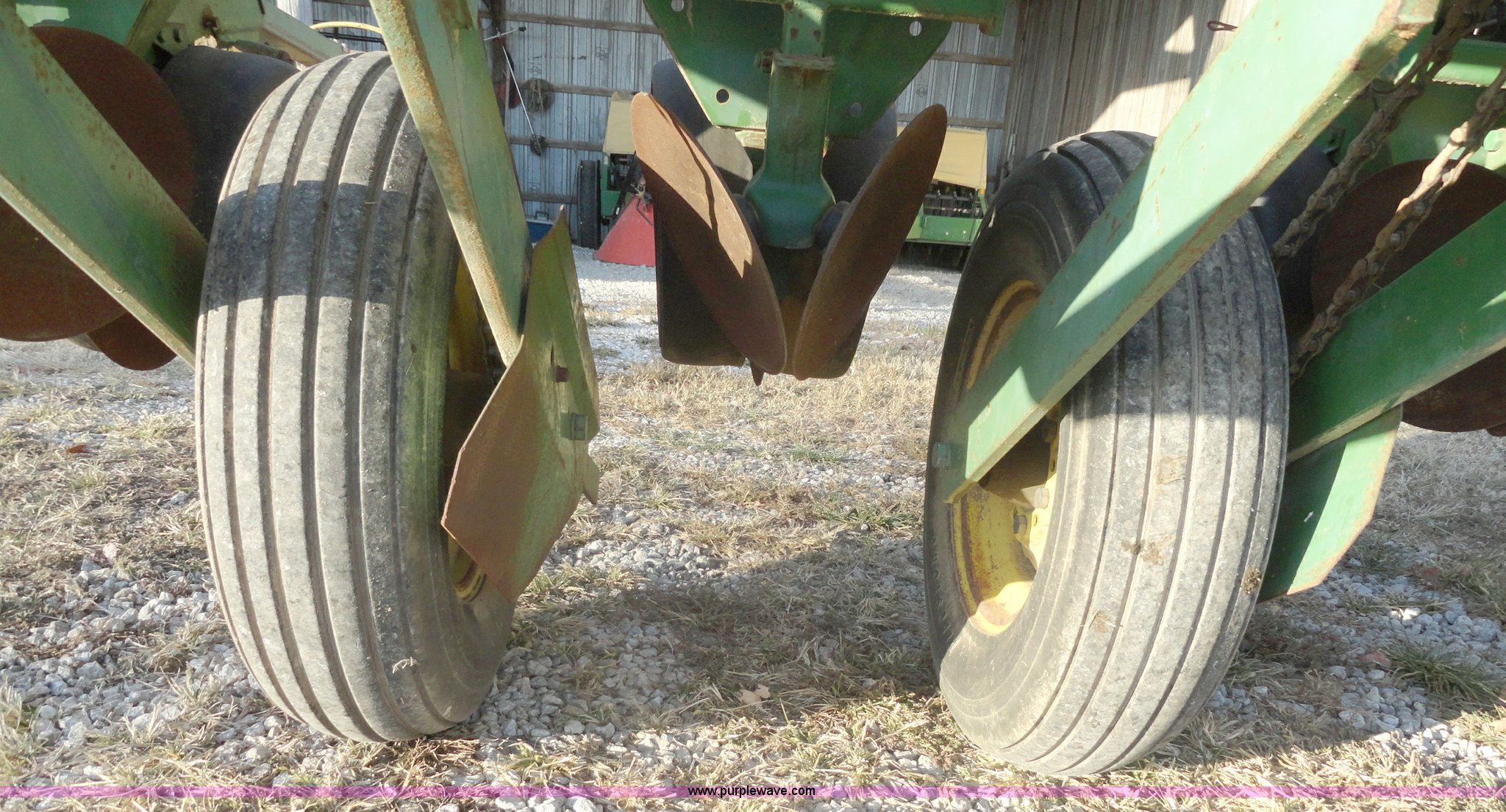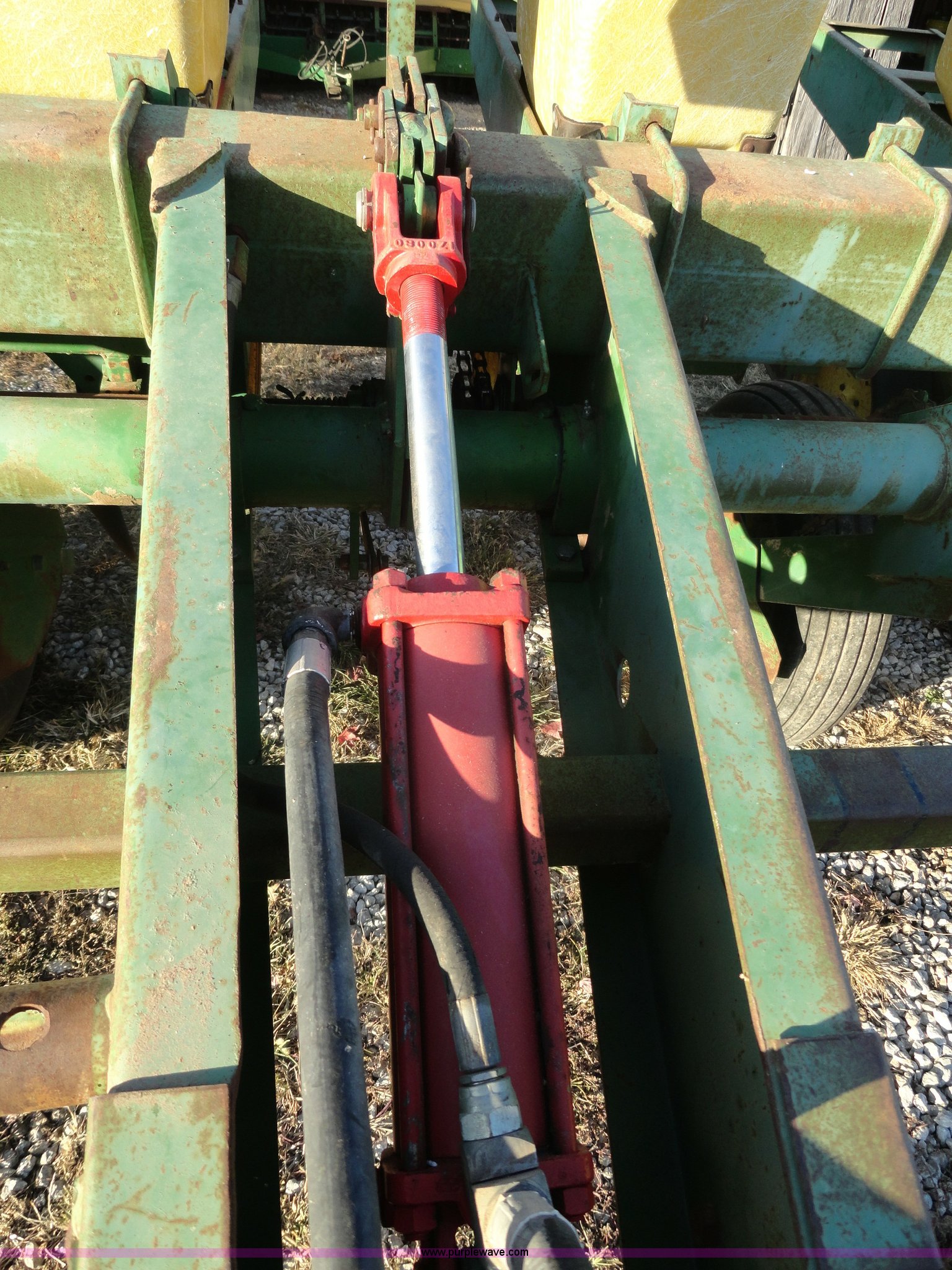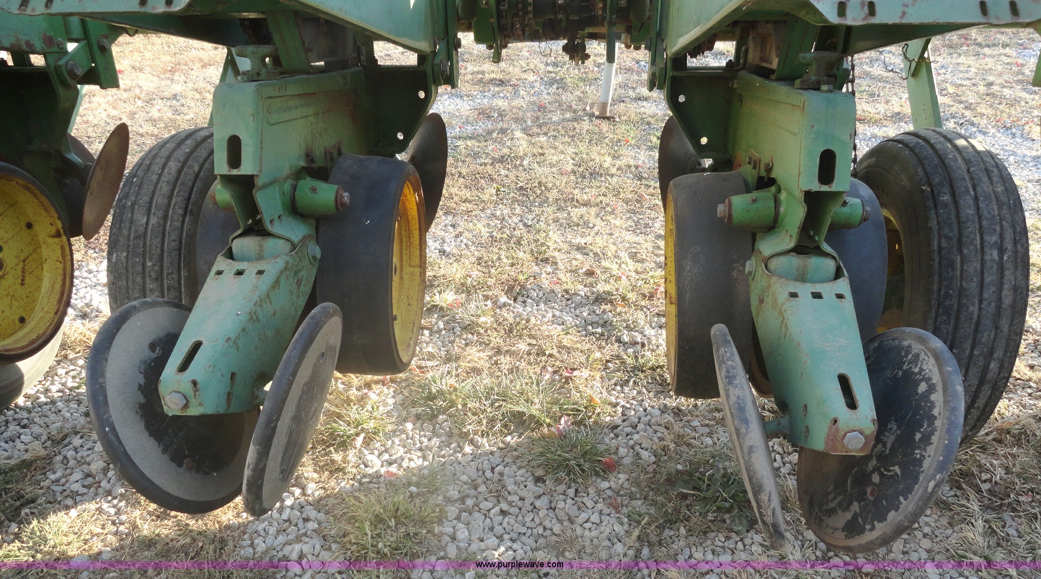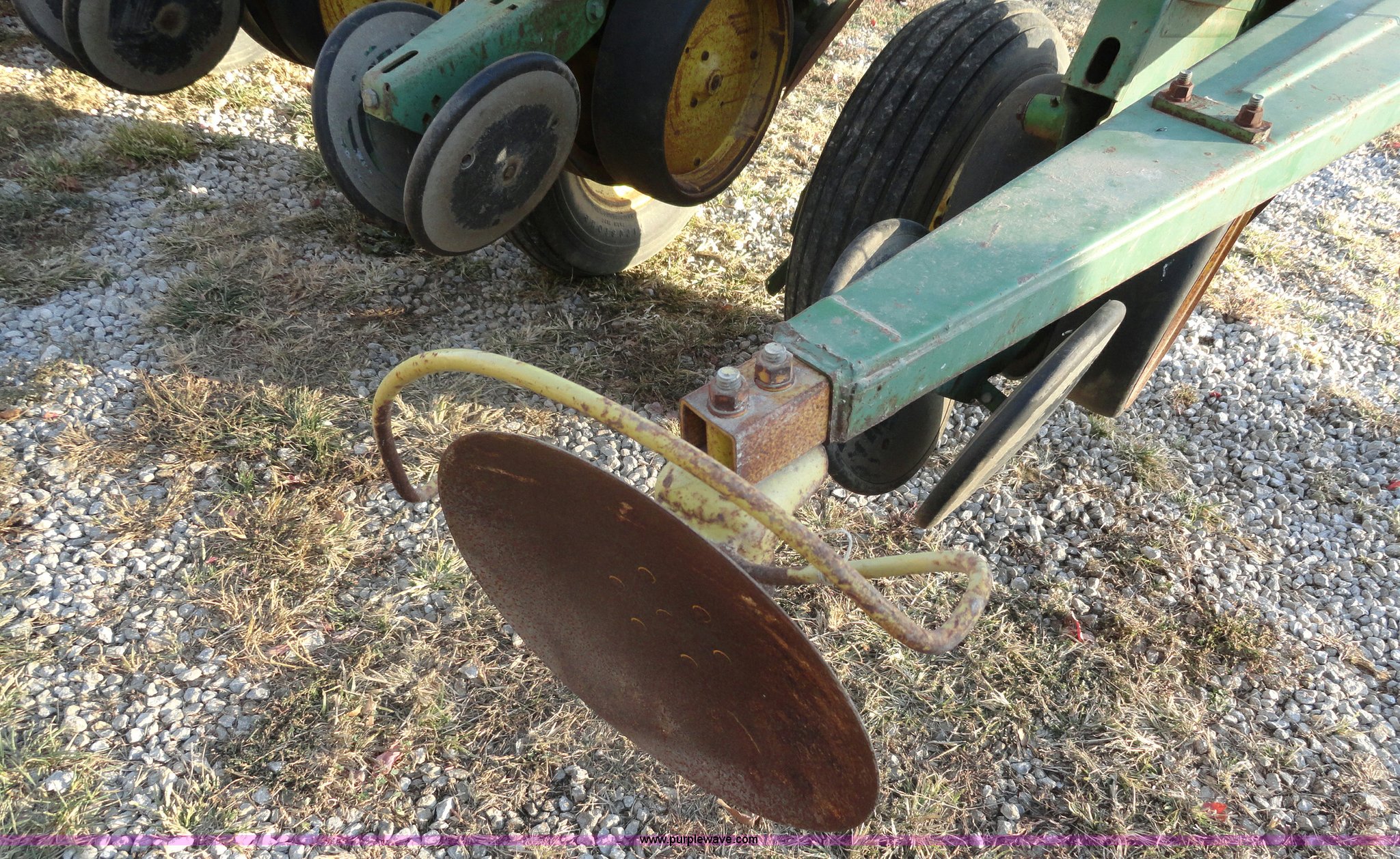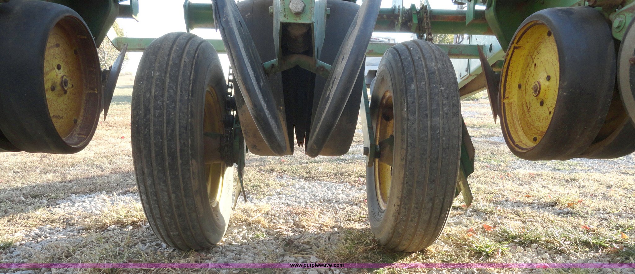 Purple Wave is selling a used Planter in Kansas. This item is a John Deere 7000 six row planter with the following: 30" spacing, 11.5" double disks, Corn, milo, and bean plates included, Hydraulic markers, Missing marker disk bearing, but included, Coulters, Hydraulic hookups, Pin hitch, 7.60-15 tires, Operators manual