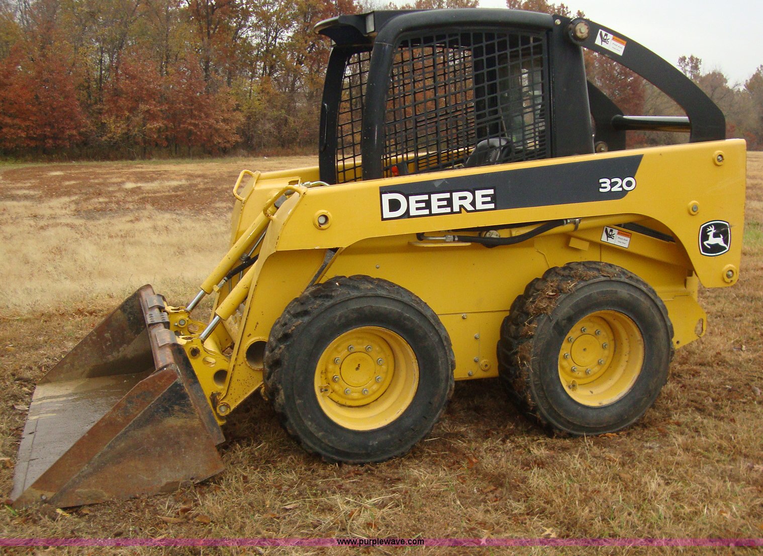 Purple Wave is selling a used Skid Steer Loader in Missouri. This item is a 2005 John Deere 320 skid loader with the following: 630 hours on meter, John Deere 4024T diesel engine, 66 HP, Foot controls, 1,950 lb lift capacity, 72" bucket, 6,435 lbs. base operating weight, Serial T00320A101899