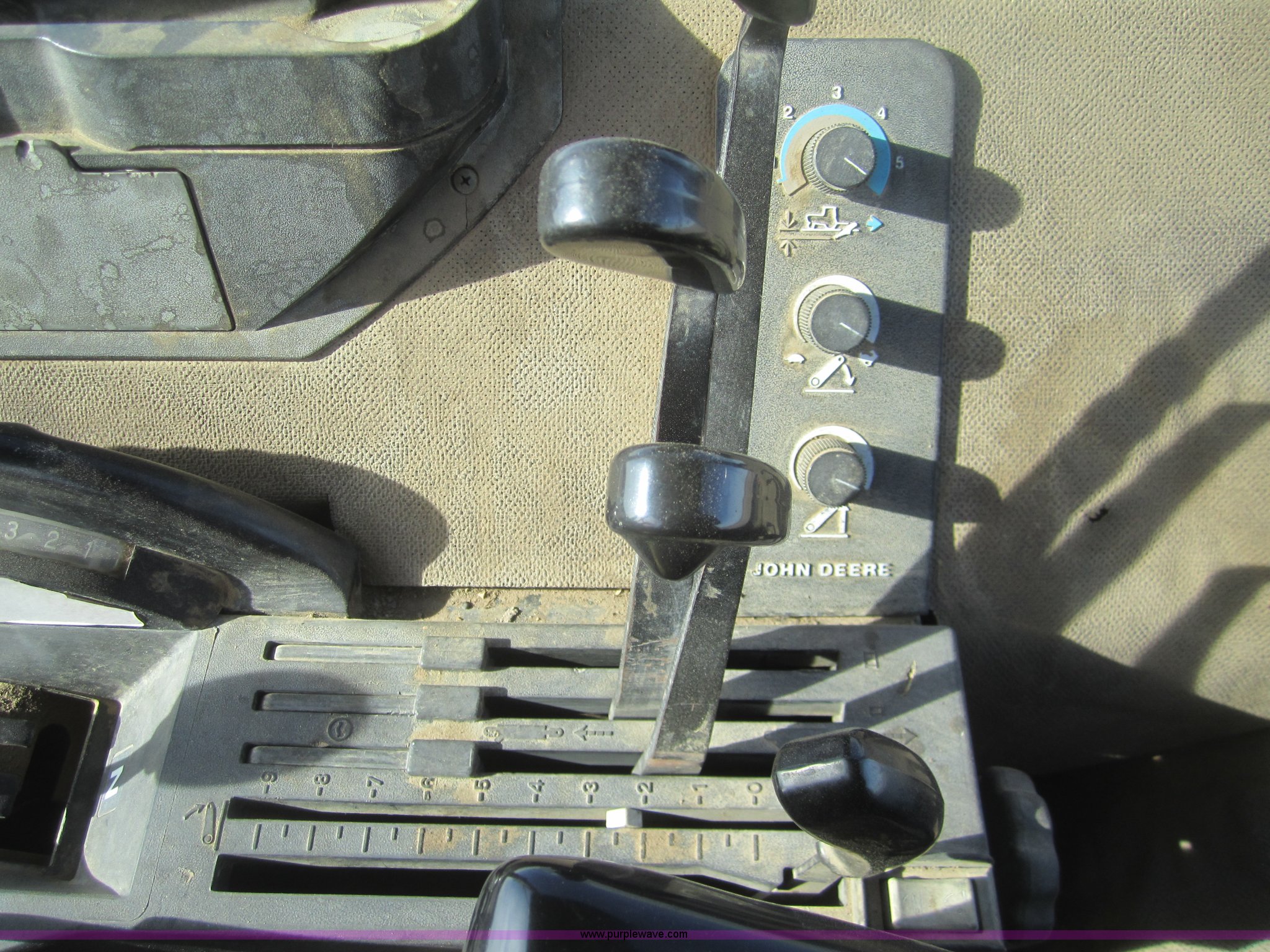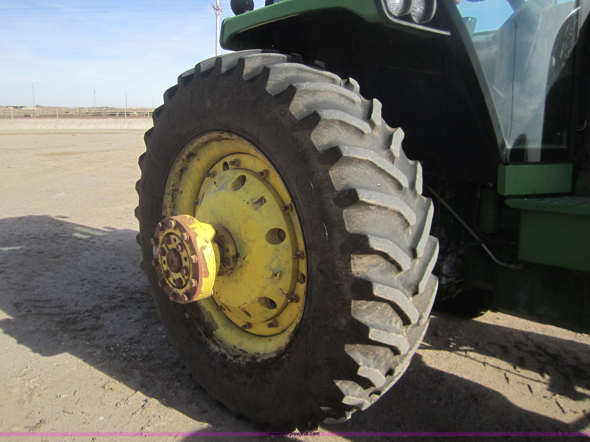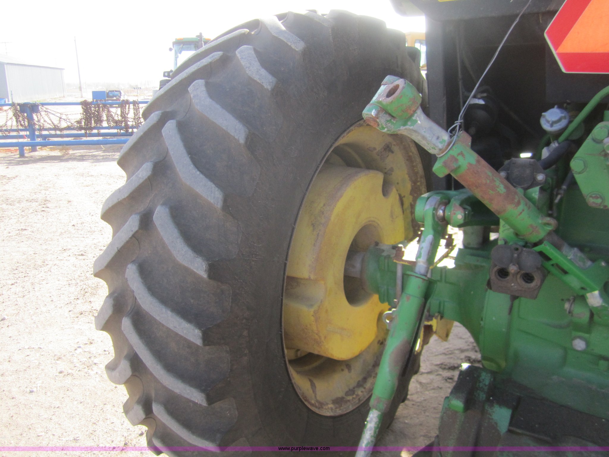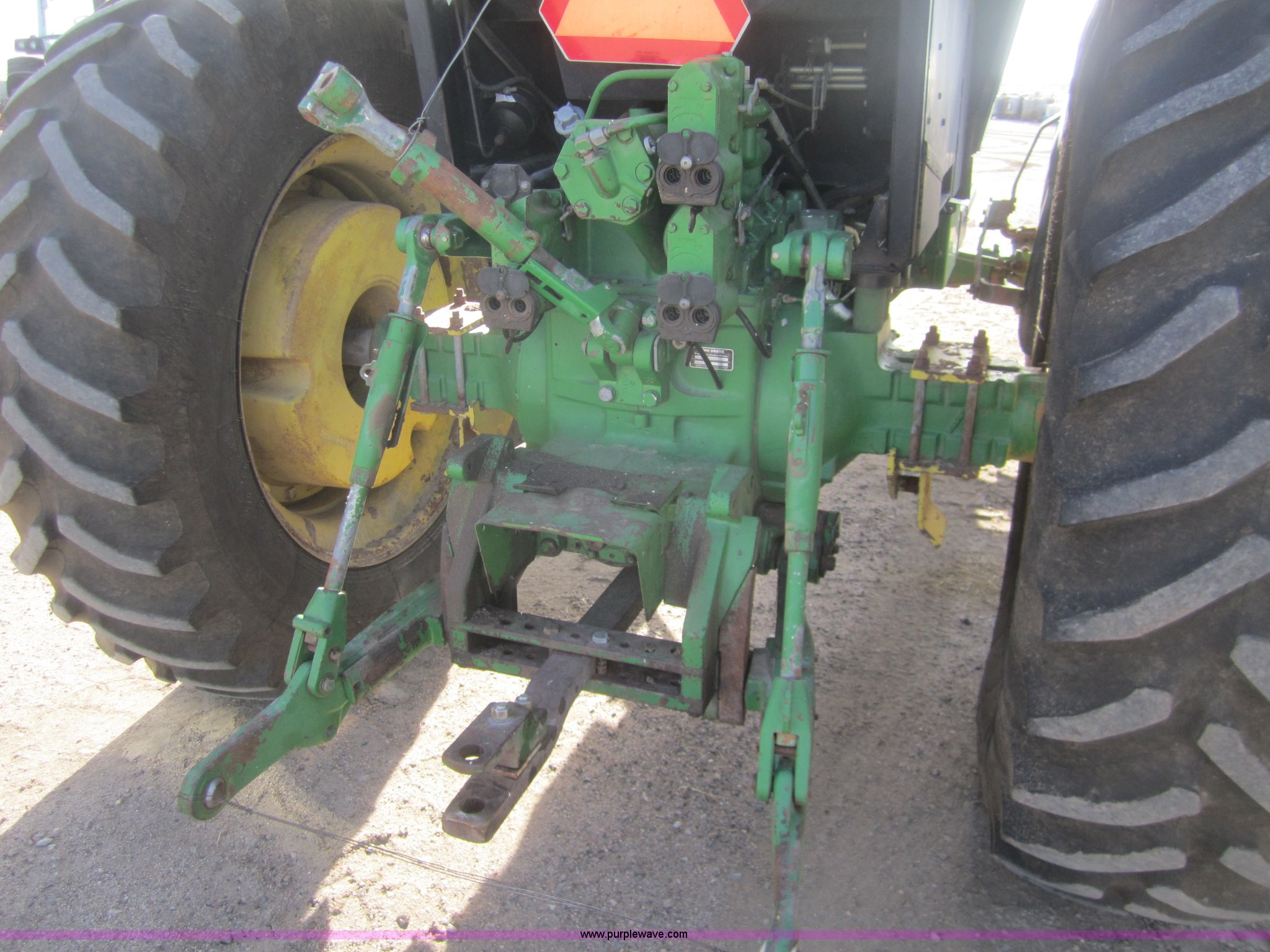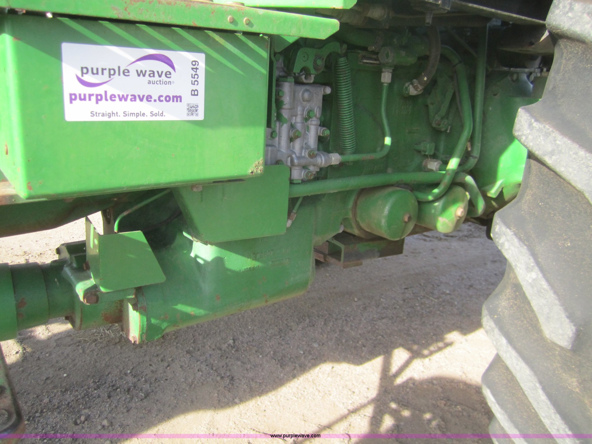 Purple Wave is selling a used Tractor in Kansas. This item is a 1990 John Deere 4555 MFWD tractor with the following: 3,370 hours on meter, Hours not original, John Deere six cylinder diesel engine, Serial SE6076A203157, Re manufactured Engine, Powershift transmission, 15F-4R, AC and heat, Tilt steering, AM/FM/Cassette, Three point, Draw Bar, 1000 PTO, (3) hydraulic remote sets, 16.9R28 front tires, 480/80R42 rear tires, Inner rear tire weights, Serial RW4555P003950